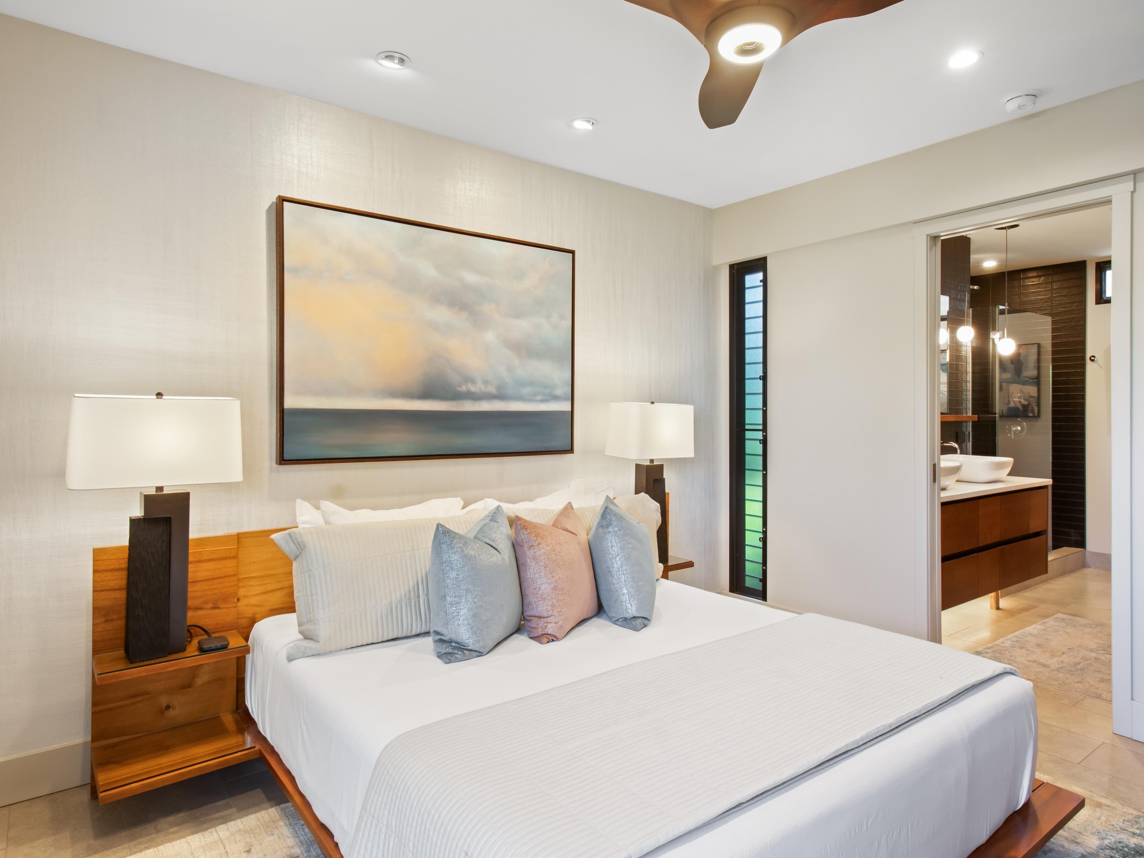 World-class golf courses lie just fifteen minutes away, offering challenging play against dramatic volcanic backdrops and ocean vistas. The charming nearby town center provides excellent dining options featuring fresh island cuisine, from poke bowls to farm-to-table restaurants celebrating local ingredients. Premium shopping boutiques showcase local artisan crafts and designer resort wear, while the area’s renowned beaches offer everything from surfing lessons to snorkeling adventures. Cultural sites including historic temples and botanical gardens provide insight into Hawaii’s rich heritage, explore our full collection of luxury villa rentals in Hawaii.