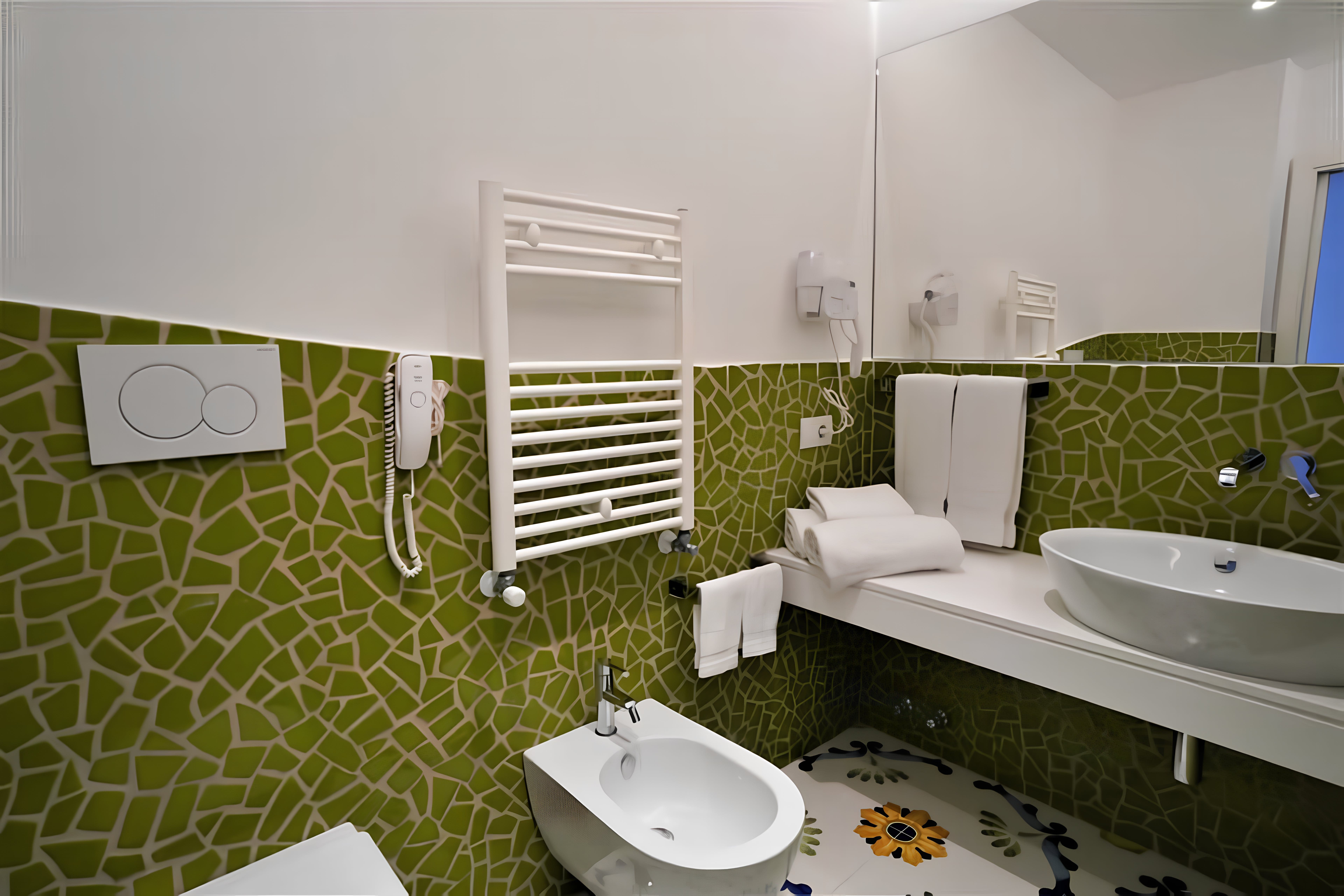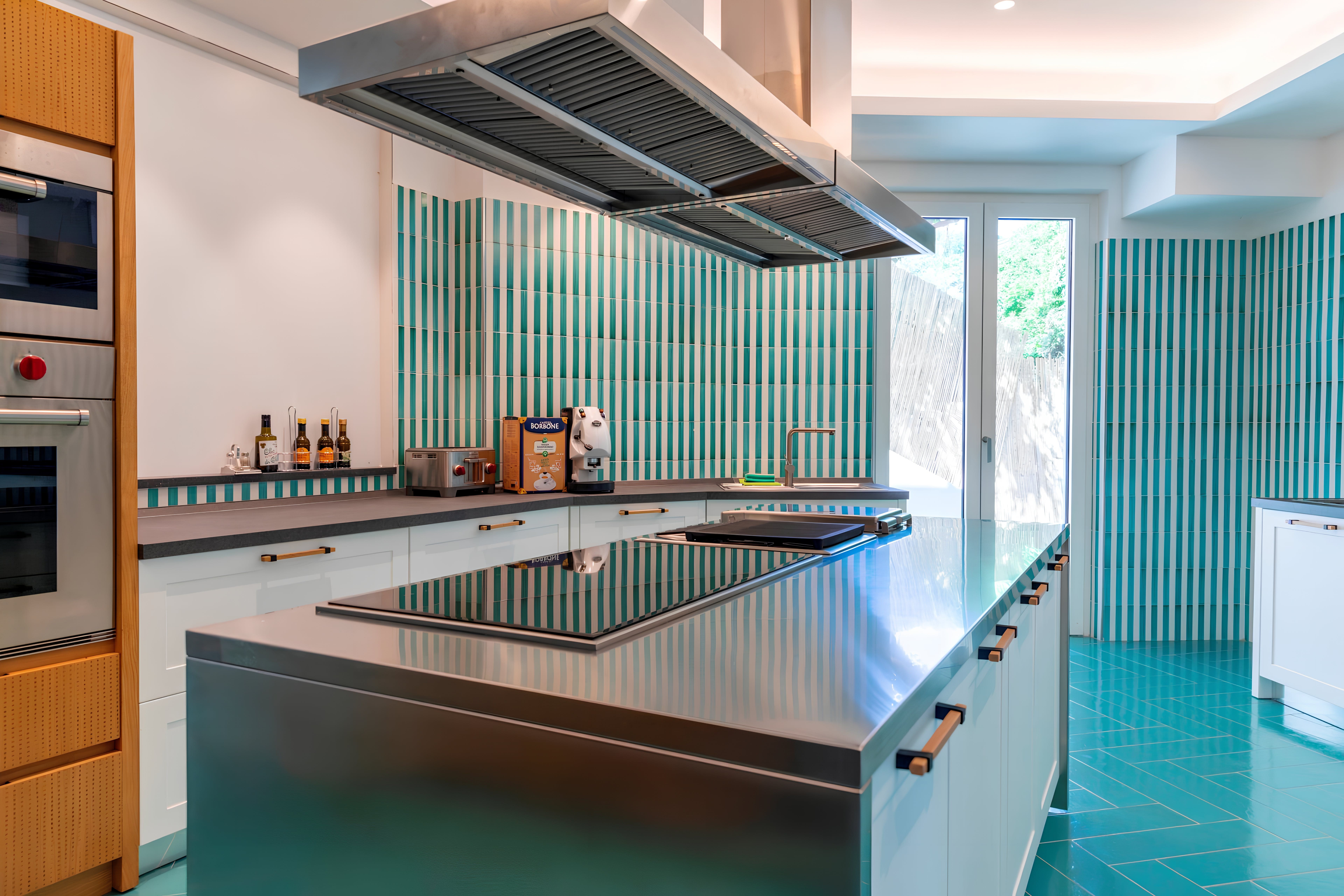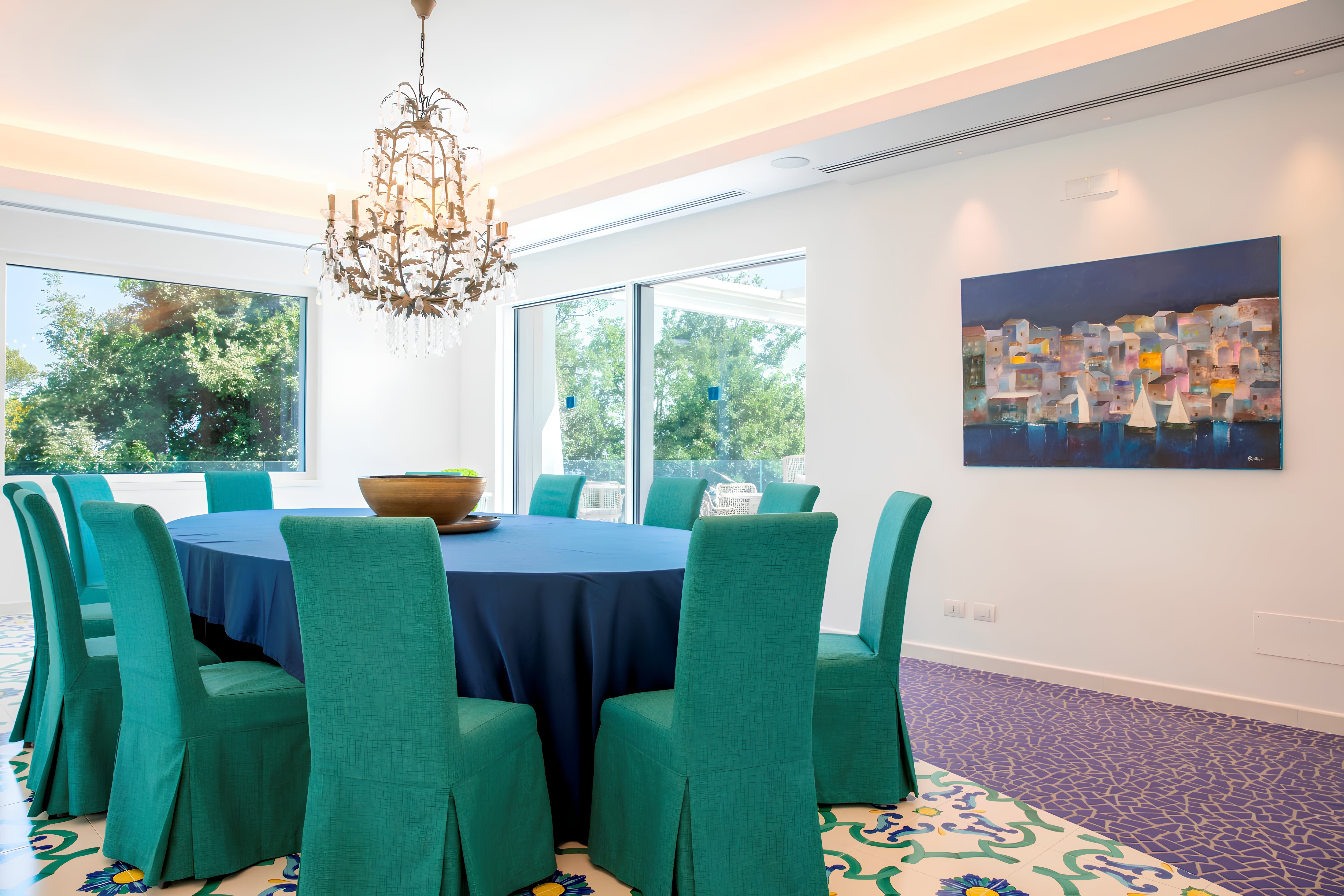 The interior of this luxurious Sorrento apartment is a testament to style and comfort. With 12 beautifully appointed bedrooms, each with its own en-suite bathroom, guests can enjoy privacy and relaxation. The living spaces are bright and airy, featuring stylish furnishings and an inviting ambiance. The fully equipped kitchen is perfect for preparing delightful Italian meals, while the elegant dining area offers a wonderful space for gatherings.