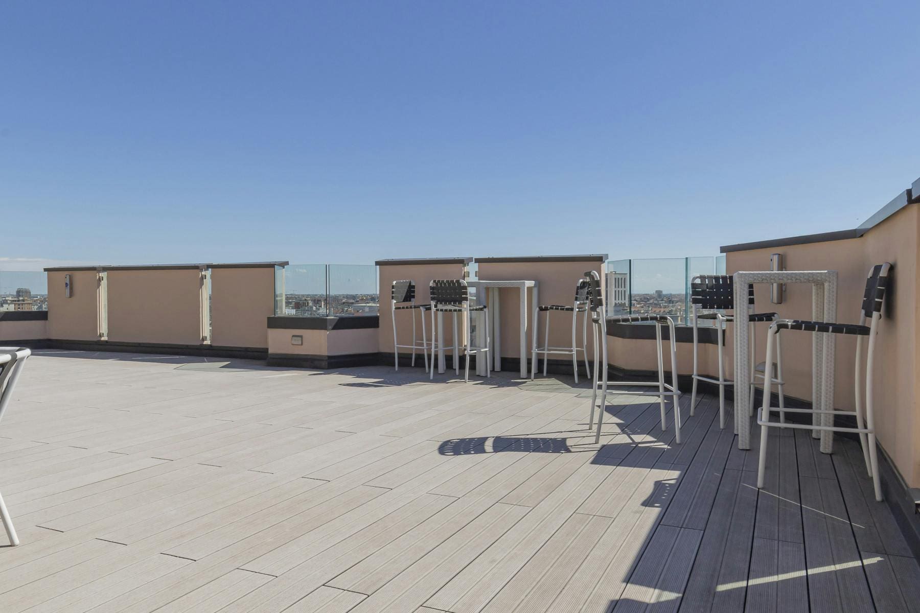The property offers access to a shared rooftop terrace, presenting breathtaking views over Milan’s iconic skyline. This outdoor space is perfect for unwinding with a morning coffee or an evening aperitif. The apartment’s central location allows for easy exploration of Milan’s bustling streets, making it a prime spot for both relaxation and adventure.