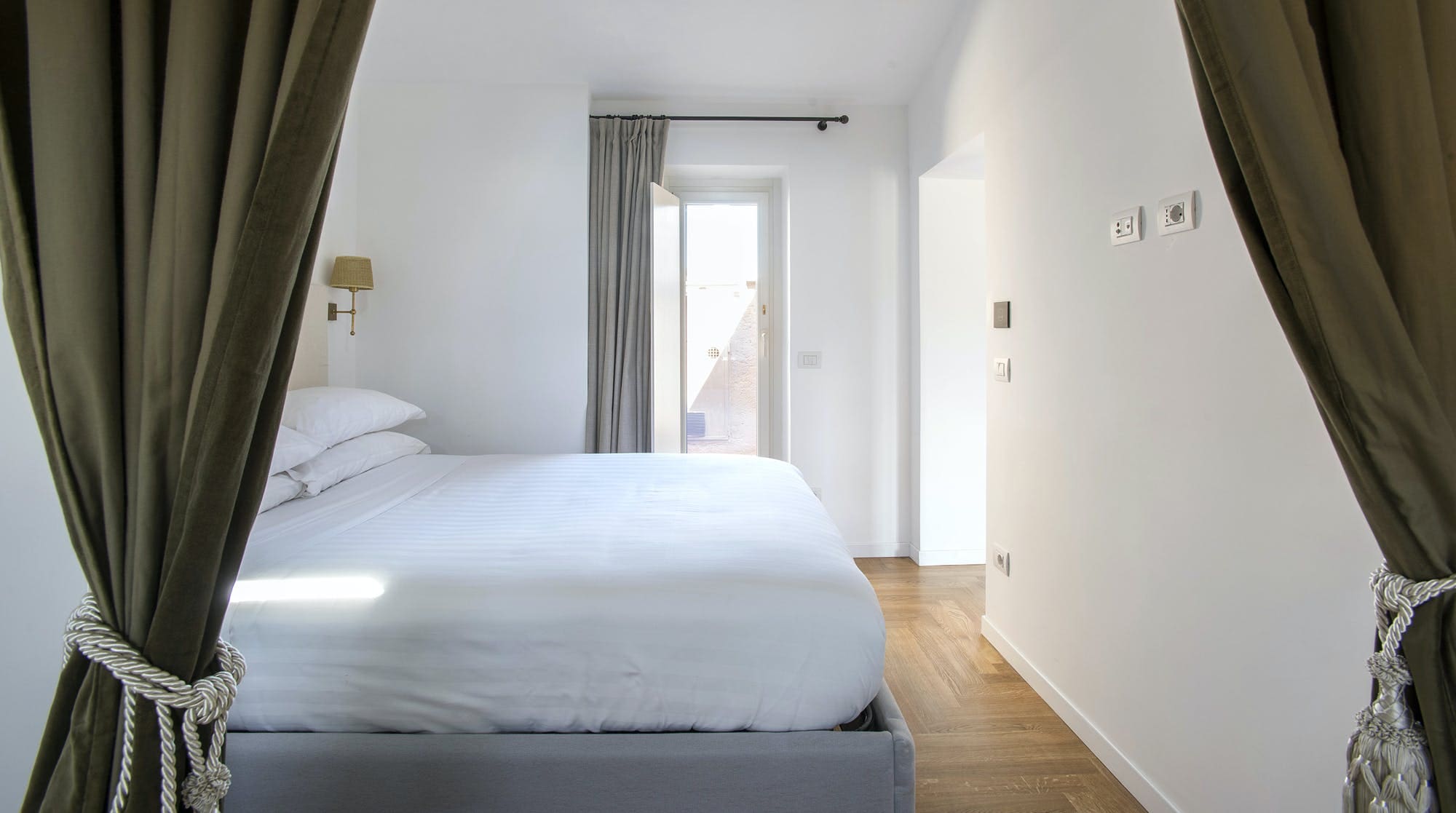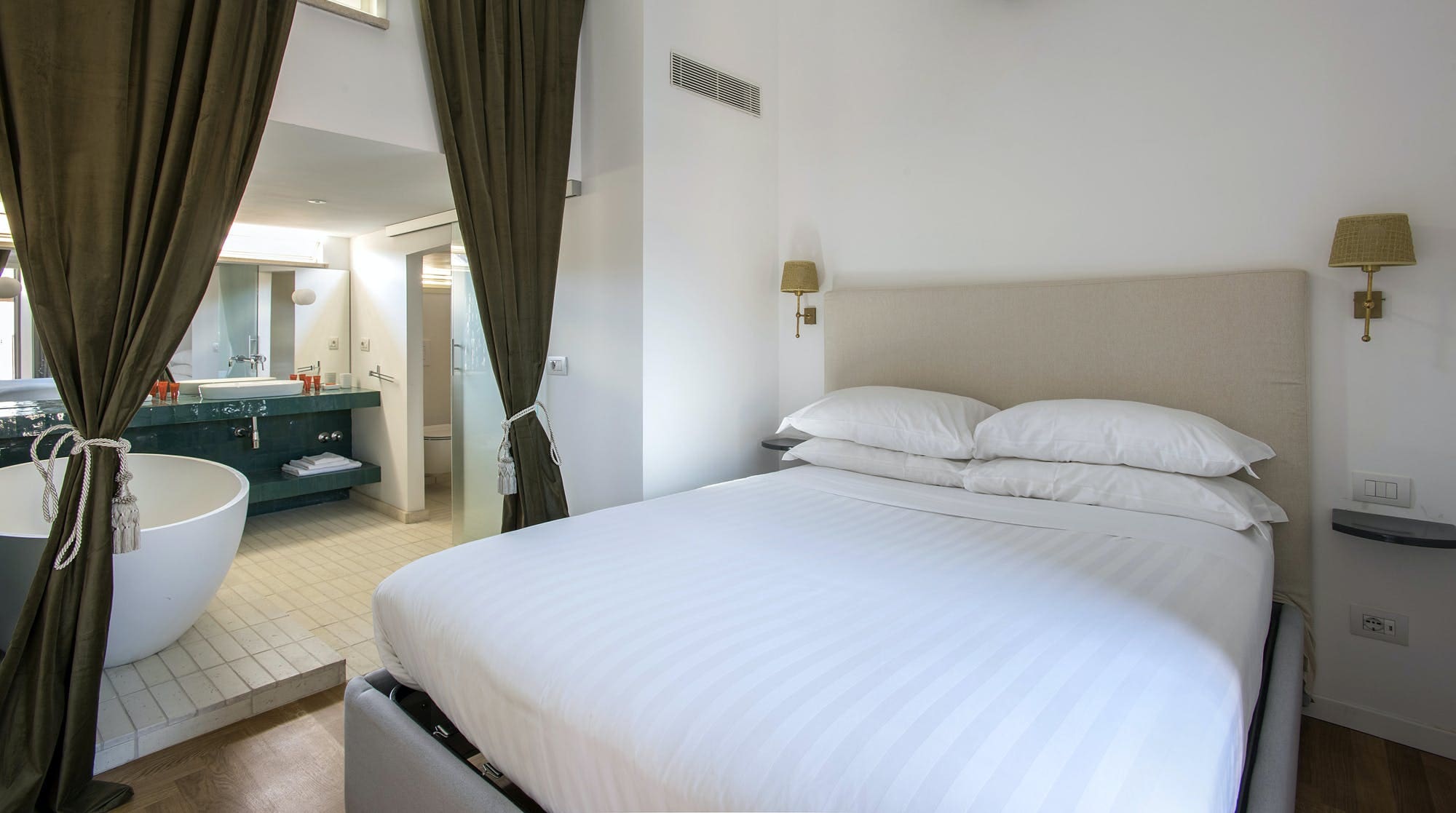 Step into a world where classic elegance meets contemporary style. The penthouse features two beautifully appointed bedrooms and two luxurious bathrooms, accommodating up to four guests. The interiors are a celebration of traditional Roman architecture with whitewashed beams and herringbone wood floors that exude warmth and character. A standout feature is the egg-shaped bath in the ensuite, inviting you to unwind after a day of exploring. The open-plan living area is bathed in natural light, offering a serene space for relaxation or remote working.