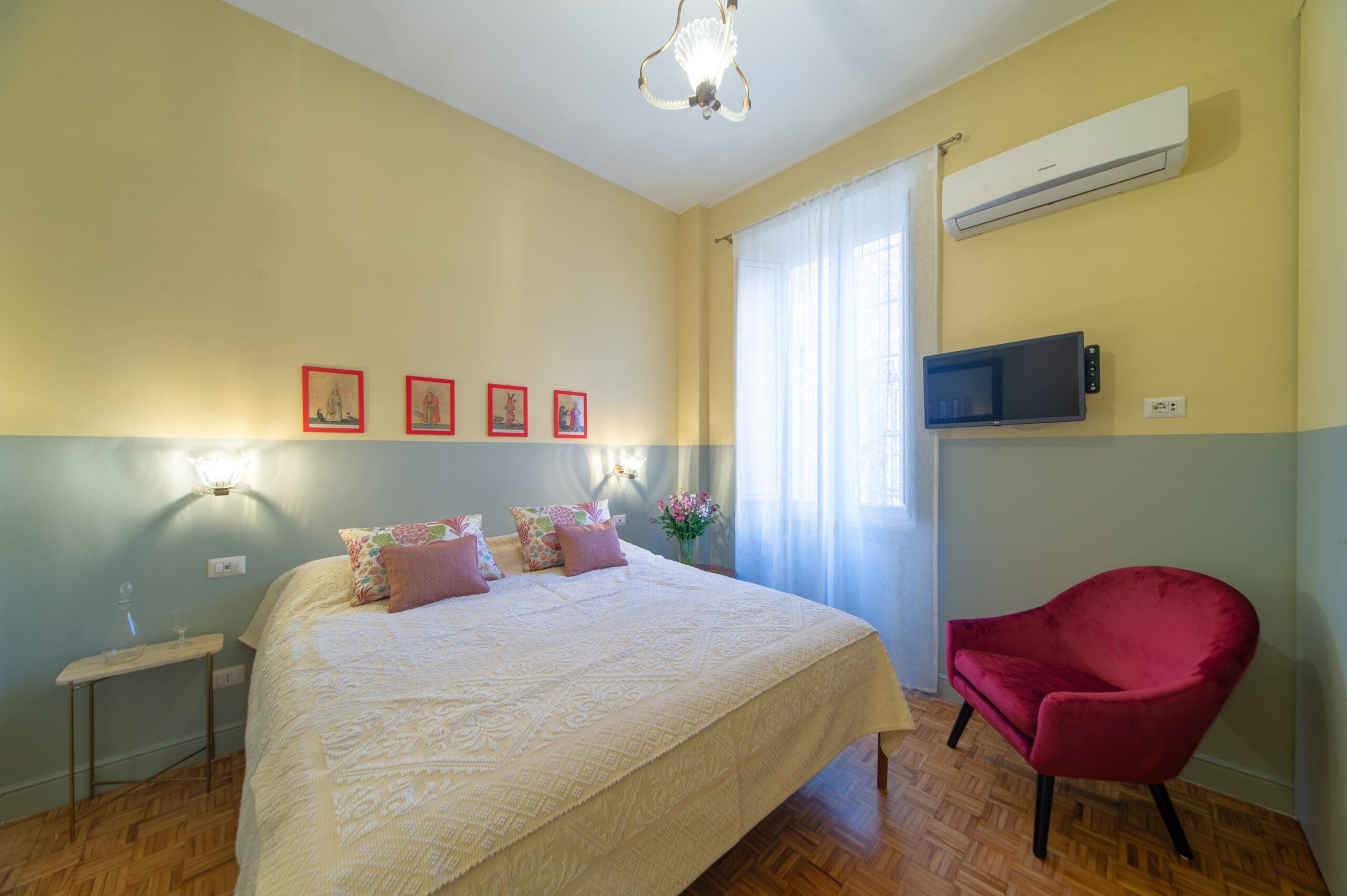 Step inside to find a thoughtfully designed interior where modern elegance meets historical charm. The apartment features two spacious living areas, one of which includes a comfortable sofa bed that extends the sleeping capacity to six guests. The interiors are tastefully decorated with contemporary furnishings, ensuring a comfortable and stylish stay. The fully-equipped kitchen offers everything you need to prepare a delicious Italian meal, while the bedrooms provide a peaceful sanctuary after a day of exploration.