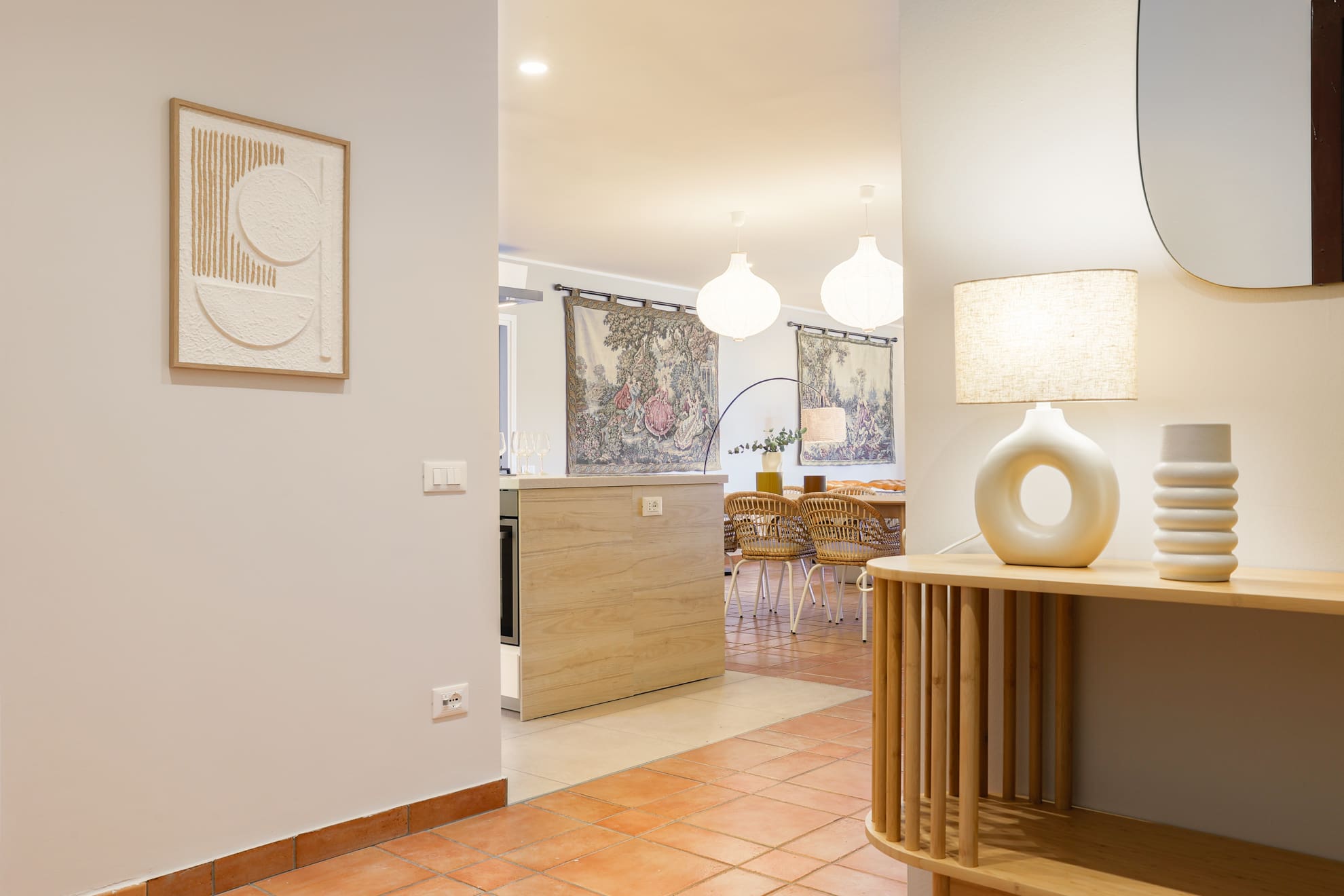 Accommodating up to seven guests, this apartment features three bedrooms and three bathrooms, ensuring comfort and privacy for all visitors. Private, covered parking is available for one car. Please note that access to the apartment is via three flights of stairs, as there is no lift. For more luxury accommodations, browse our luxury villa rentals in Italy.