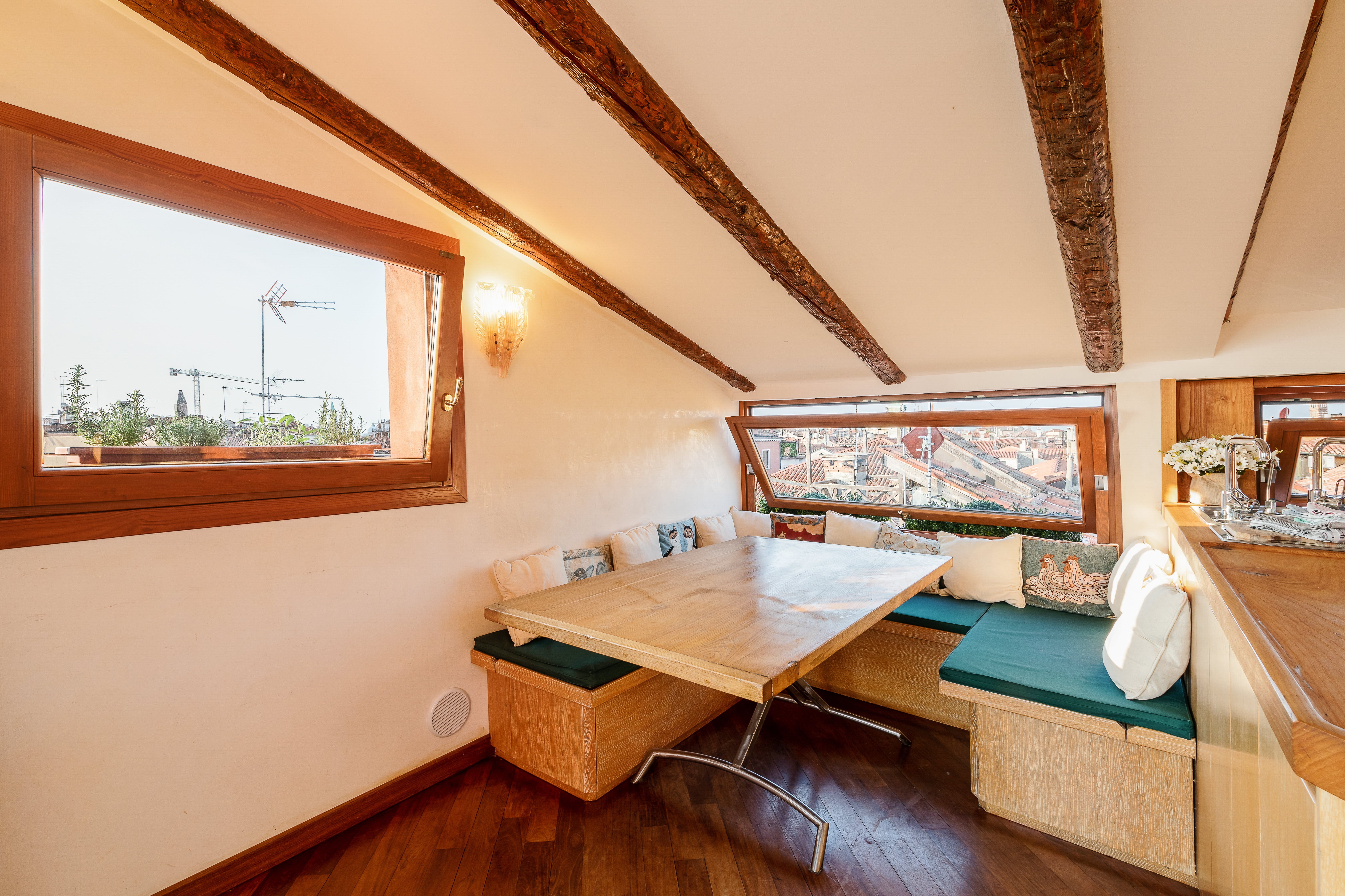 Two expansive terraces provide the perfect setting for al fresco dining or simply soaking up the sun with a glass of Prosecco. The stunning views encompass the iconic Venetian rooftops and the shimmering waters of the lagoon, creating an unforgettable backdrop for your stay.