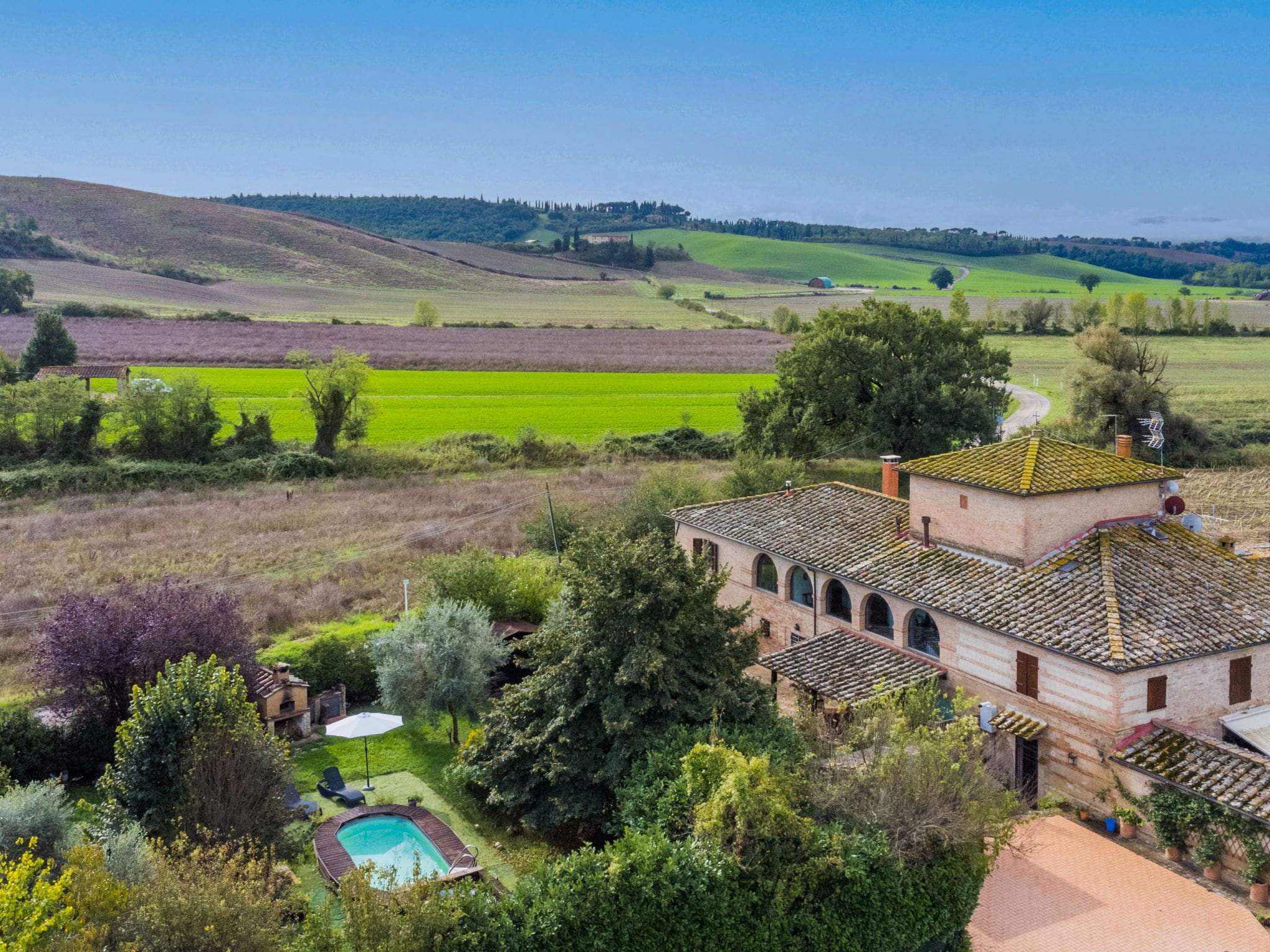 The historic centre of Buonconvento is just 8 kilometres away, with shops, restaurants, and essential services located 4-5 kilometres from the property.