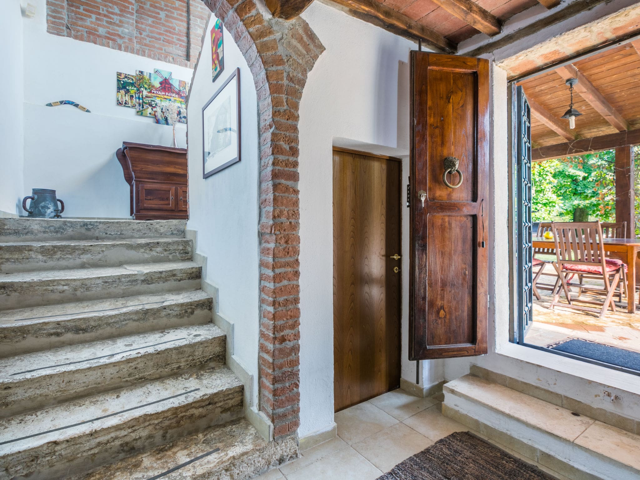 The villa’s outdoor spaces truly distinguish this property from ordinary holiday rentals. The private 3×6 metre swimming pool operates from May to October, surrounded by manicured gardens and mature trees that provide natural privacy and shade. An inviting hot tub offers year-round relaxation, while the outdoor shower adds a touch of luxury to pool days. Multiple terraces and a covered balcony create diverse spaces for dining, lounging, and entertaining. The barbecue area and outdoor dining facilities make al fresco dining effortless, whether you’re enjoying morning coffee with countryside views or evening aperitivos under the Tuscan stars. The fenced property includes wildlife gardens that attract local birds and butterflies, creating a peaceful sanctuary away from everyday life.