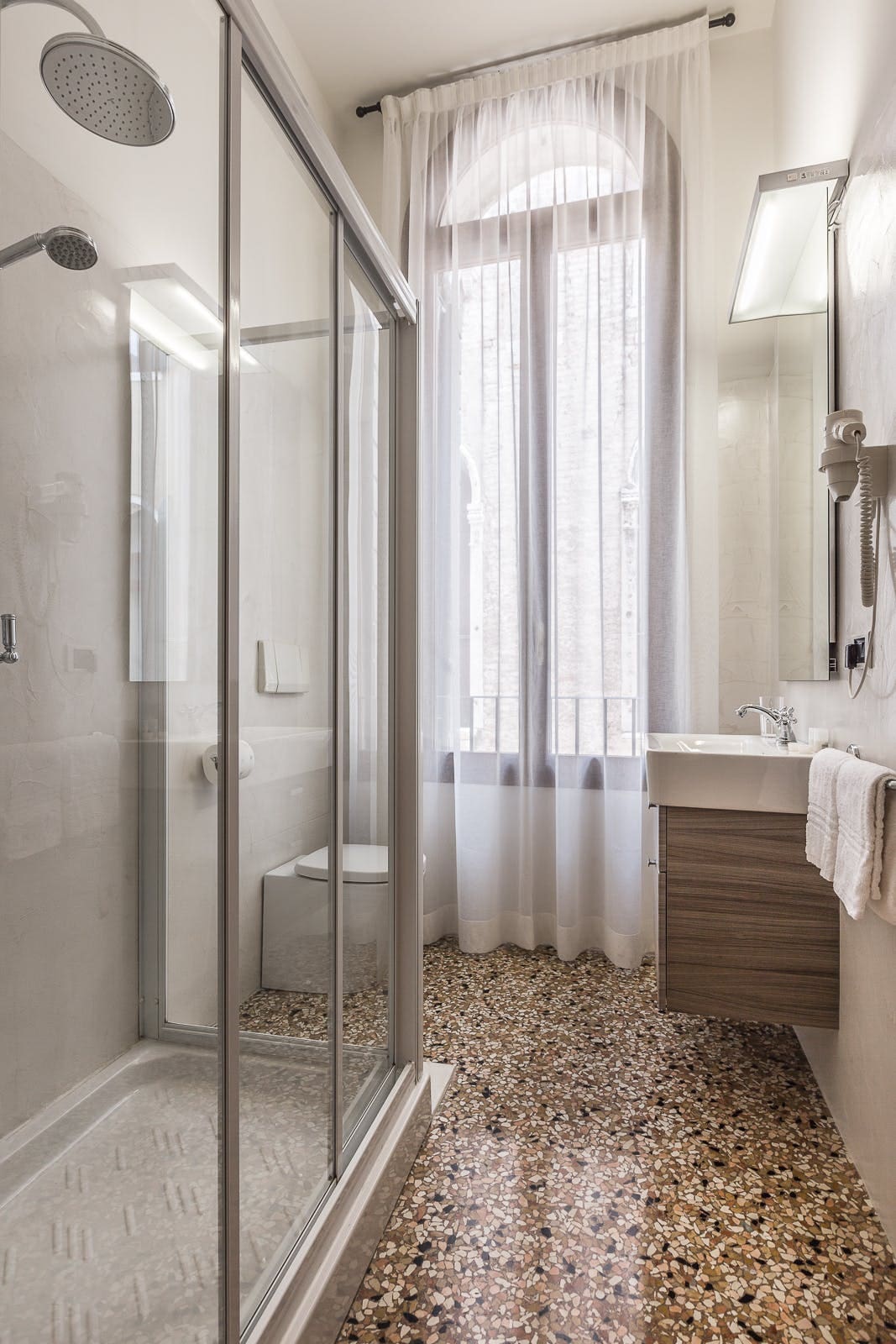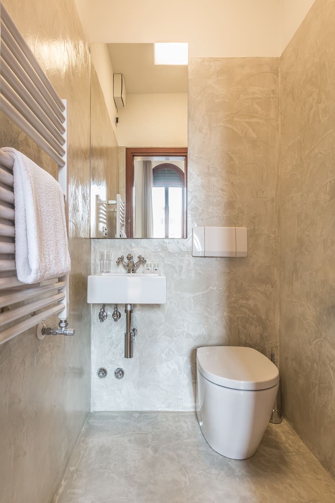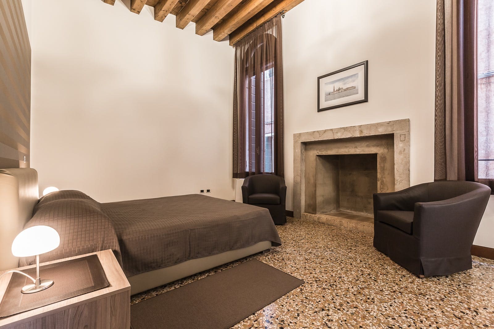 While the apartment itself does not offer extensive outdoor spaces, its location just steps away from Venice’s iconic waterways provides a distinct sense of place. The picturesque views over the Church and Campo of San Degolà offer a glimpse into the city’s rich history, and the central location means guests are never far from the vibrant life of Venice.