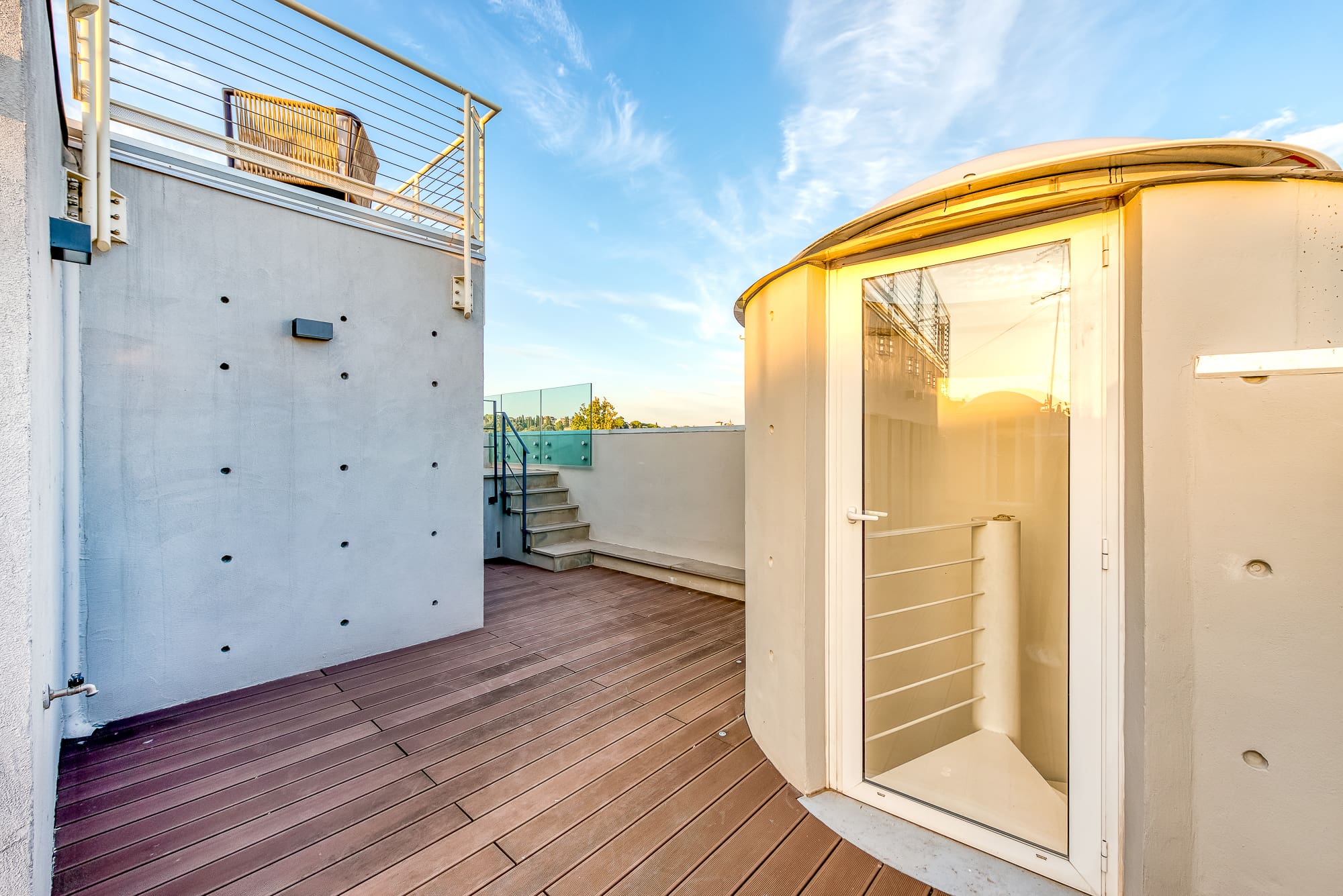 The apartment’s rooftop terrace offers breathtaking 360-degree vistas of Rome, making it an ideal spot for al fresco dining or simply unwinding with a glass of wine. Enjoy sweeping views of the cityscape and the Tiber River, creating an unforgettable backdrop for your stay. The terrace is also perfect for yoga or a morning workout, surrounded by the beauty of Rome.