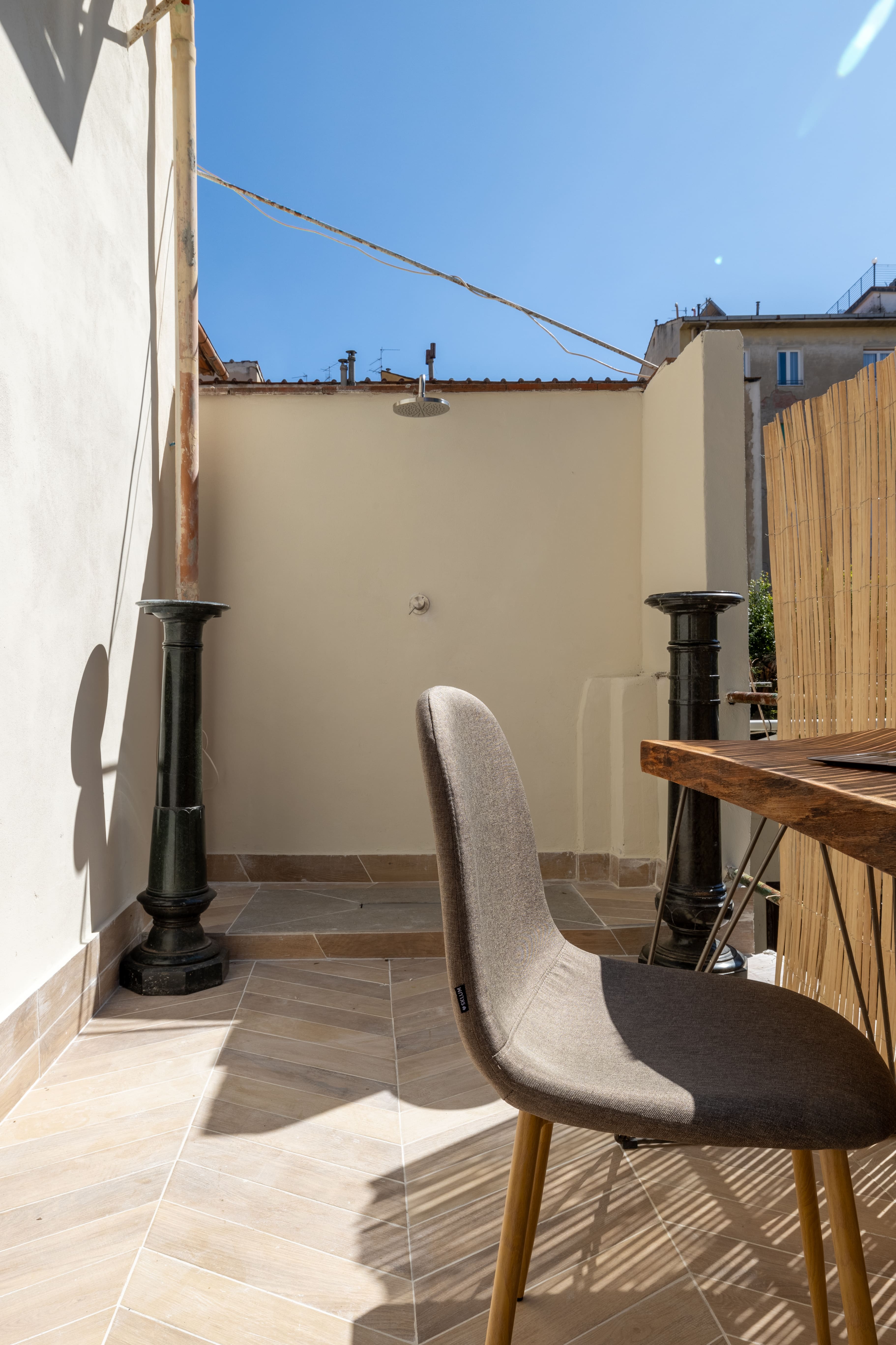 While the apartment itself is a haven of tranquility, its small private terrace provides an intimate outdoor space for enjoying morning coffee or evening aperitifs. Florence’s iconic skyline serves as a breathtaking backdrop, offering a glimpse of the city’s rich history and culture. Though the property is tucked away from the bustling crowds, Florence’s main attractions remain within walking distance, making it an ideal base for exploration.