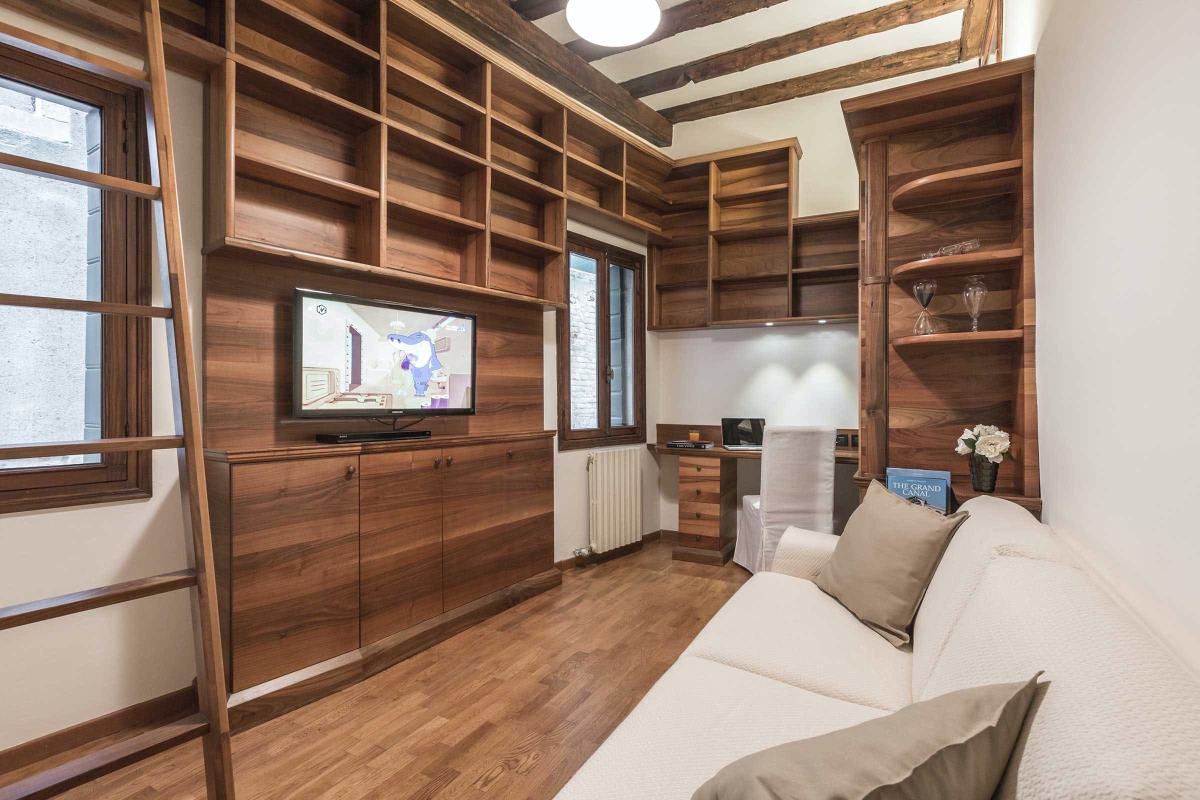 While the penthouse itself lacks outdoor space, its prime location in Venice more than compensates. Just steps away, you can indulge in the vibrant atmosphere of St. Mark’s Square and enjoy leisurely walks along the canals. The surrounding area is replete with charming cafes and boutiques, making it the perfect setting for a quintessential Venetian adventure.