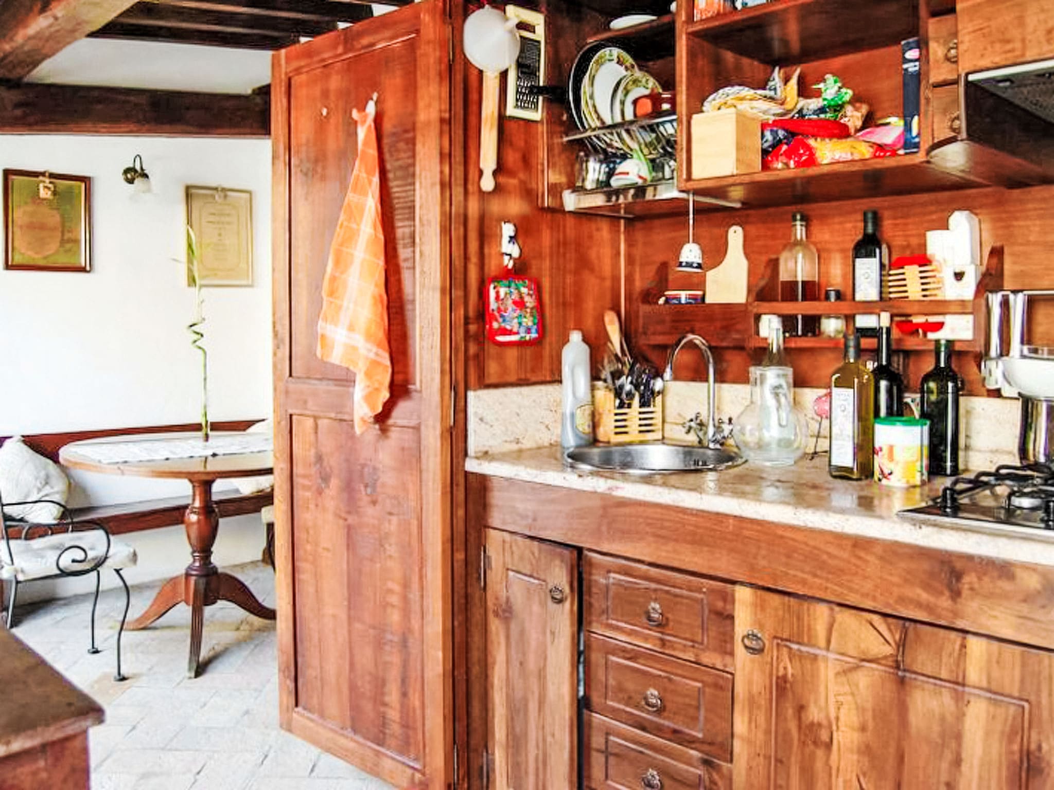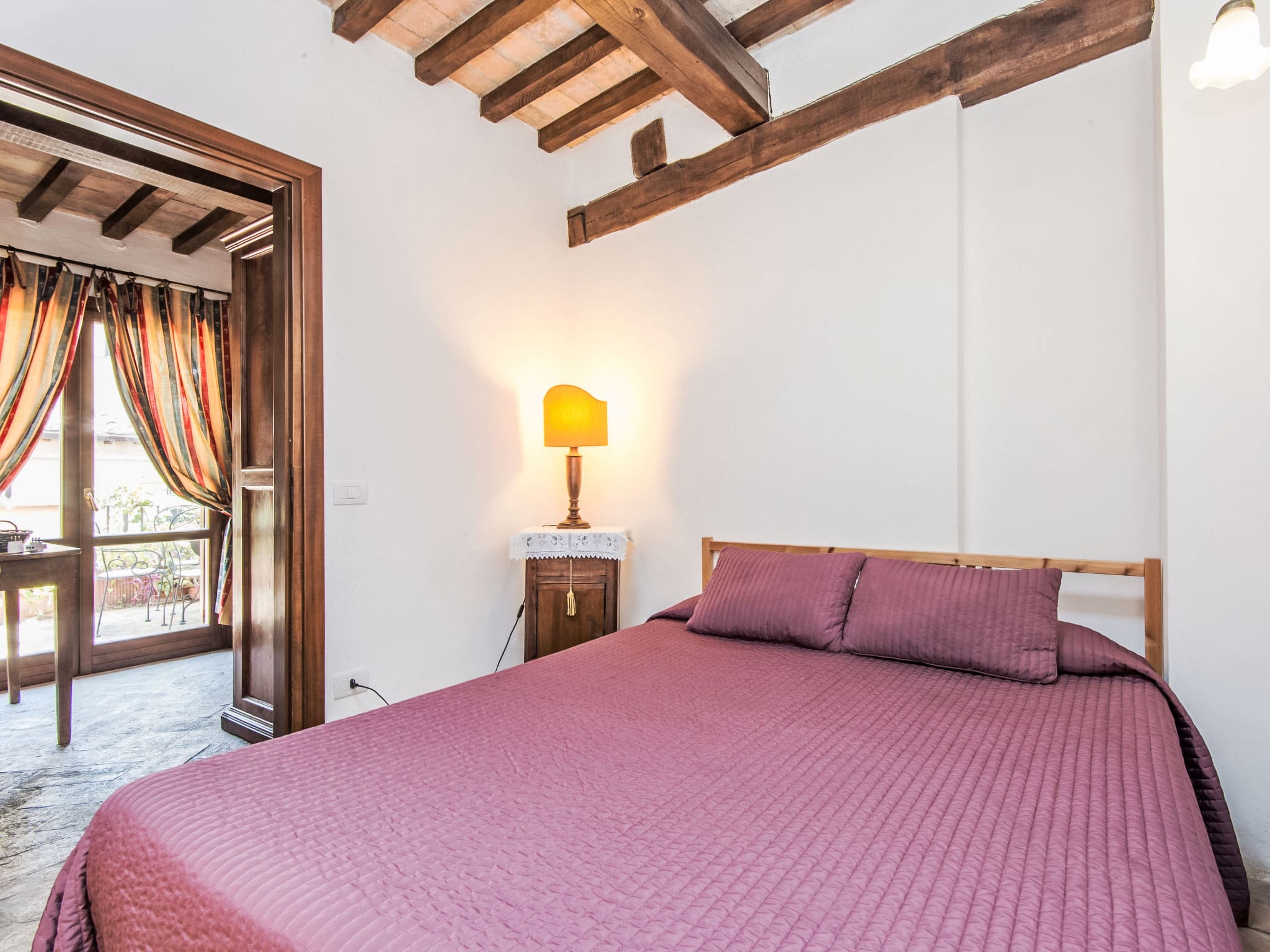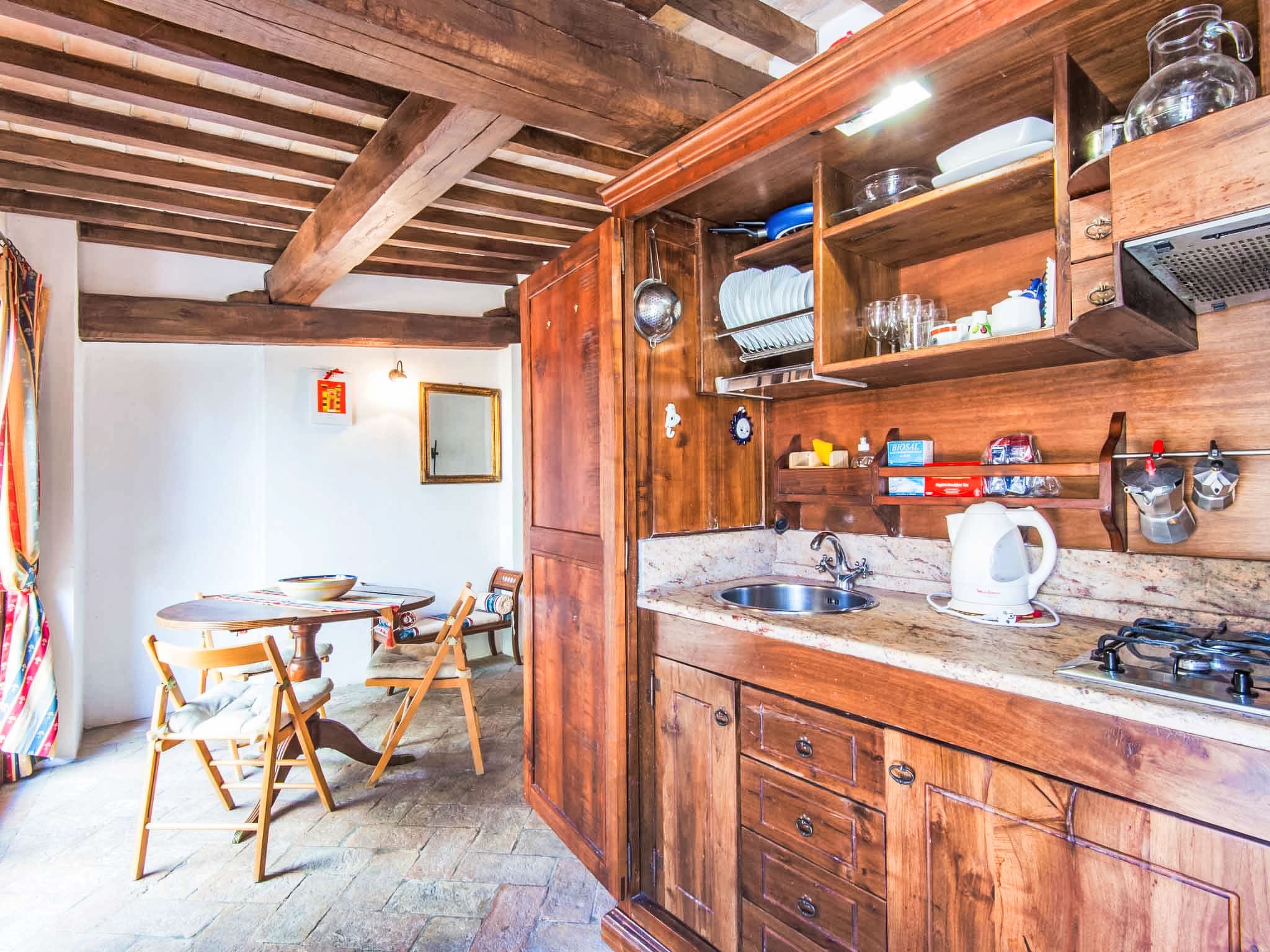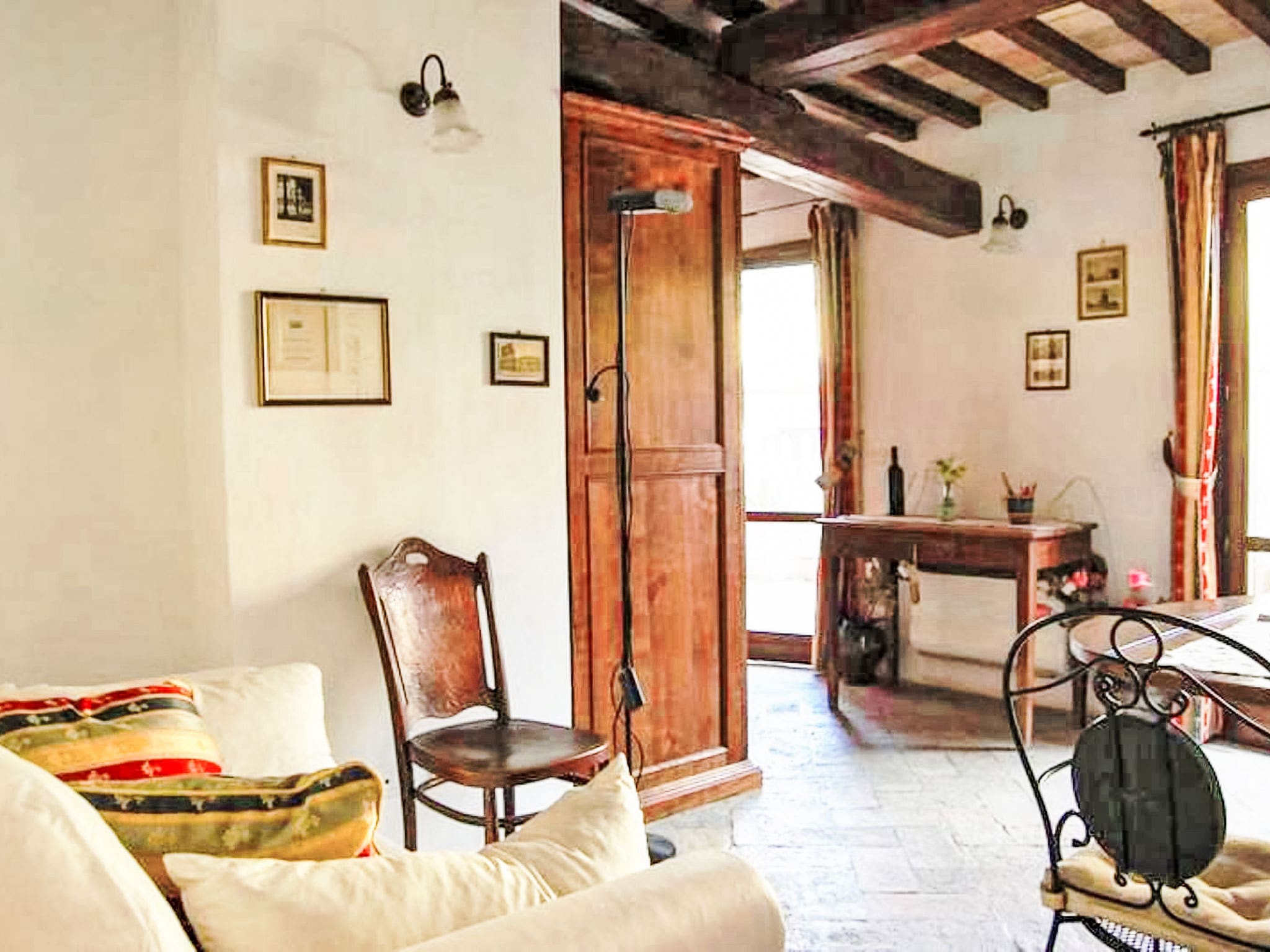 Modern conveniences include air conditioning, heating (available November through April), complimentary WiFi, and a washing machine. The bathroom features a shower, bidet, and WC, while thoughtful touches like a hair dryer and fresh linens add to the overall comfort. Double-glazed windows and LED lighting demonstrate the property’s commitment to both tranquility and sustainability.