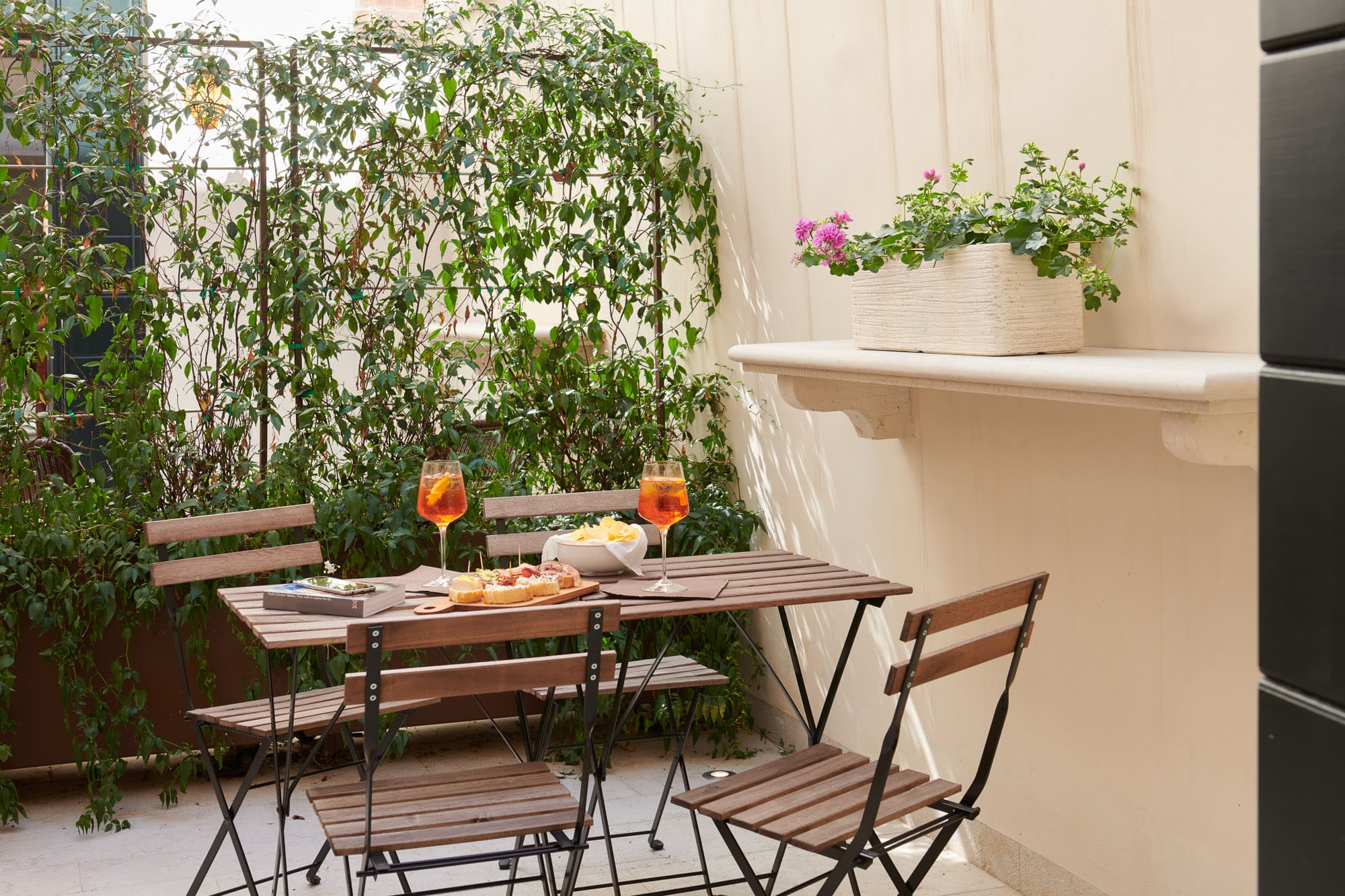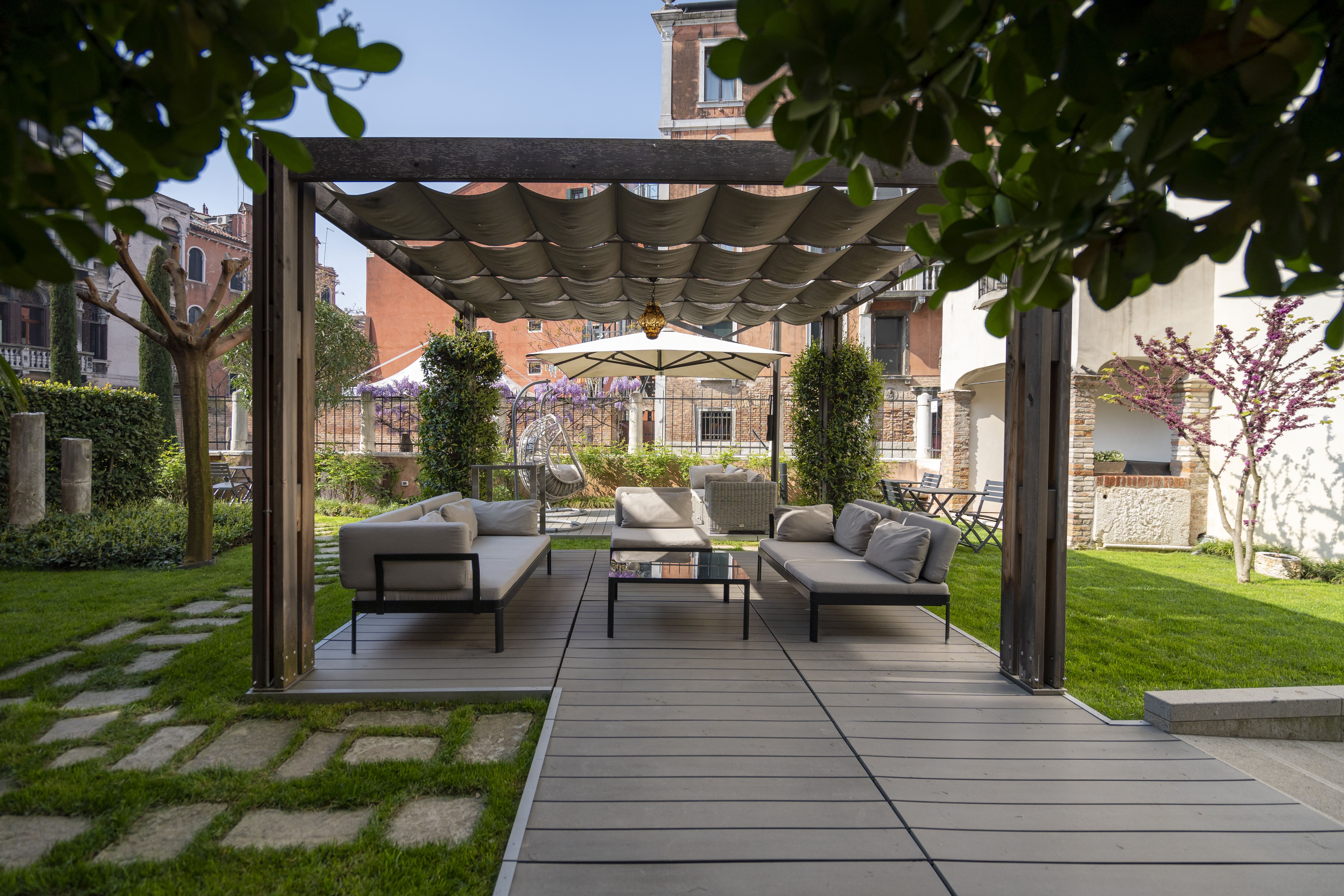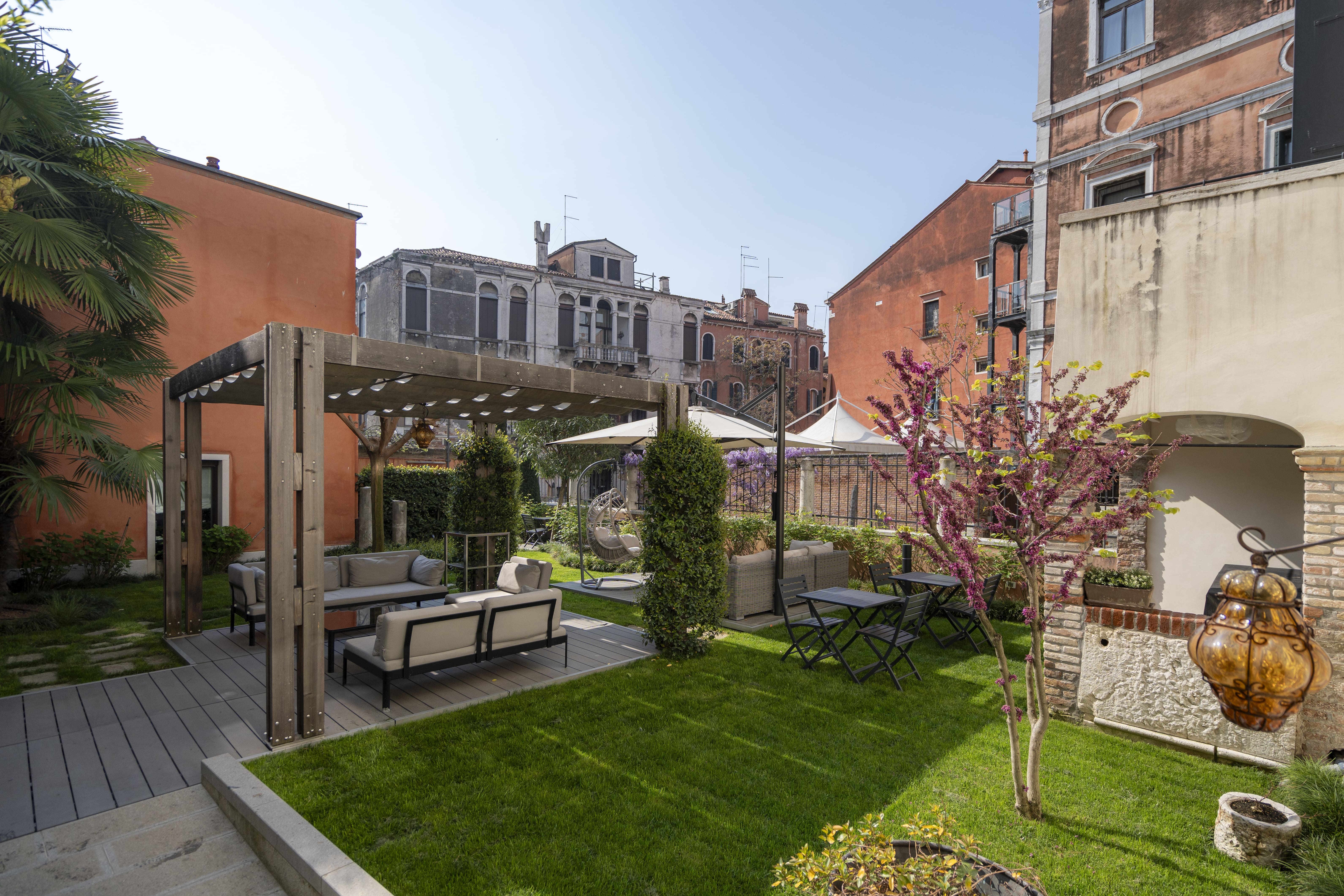 Step out onto one of the private terraces to soak in the mesmerizing views of the canals, or enjoy a leisurely afternoon in the shared garden by the waterside. The garden, shared with other guests, is a serene retreat perfect for sipping an aperitivo under the Venetian sun. With no lift access, the first-floor location offers a unique vantage point for appreciating the enchanting surroundings.