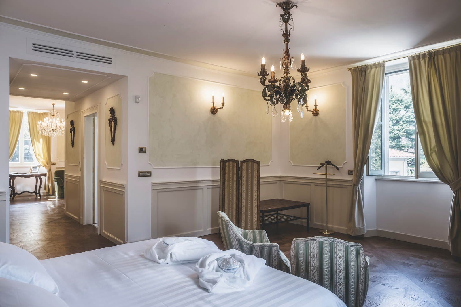 The apartment accommodates up to 16 guests, featuring 8 bedrooms and 9 bathrooms. There is a private driveway with parking for five cars, and a lift provides easy access across the three floors. The owner’s residence is on the far side of the park, ensuring your privacy. Browse our luxury villa rentals in Italy for more properties.