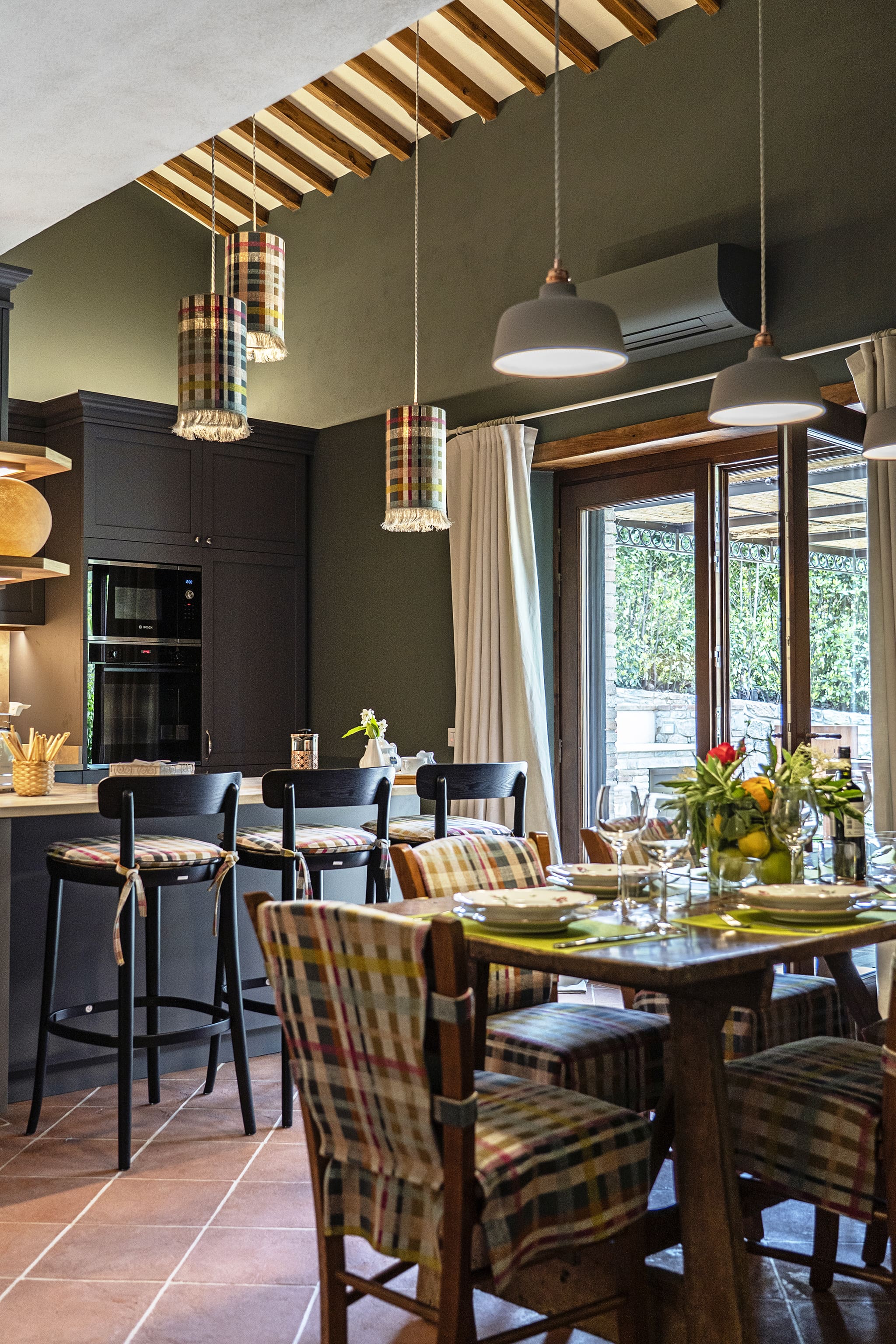 Step inside Poggio dei Vigneti, where traditional Tuscan design meets modern comfort. The spacious living area features exposed wooden beams and terracotta tiles, creating a warm and inviting atmosphere. The open-plan layout seamlessly connects the living room, dining area, and kitchen, making it ideal for socializing. Each of the three bedrooms is tastefully decorated, with one room featuring a curtain instead of a solid door, providing a unique but slightly less private experience. The well-equipped kitchen invites you to prepare local delicacies, while the dining area offers a perfect setting for family meals.