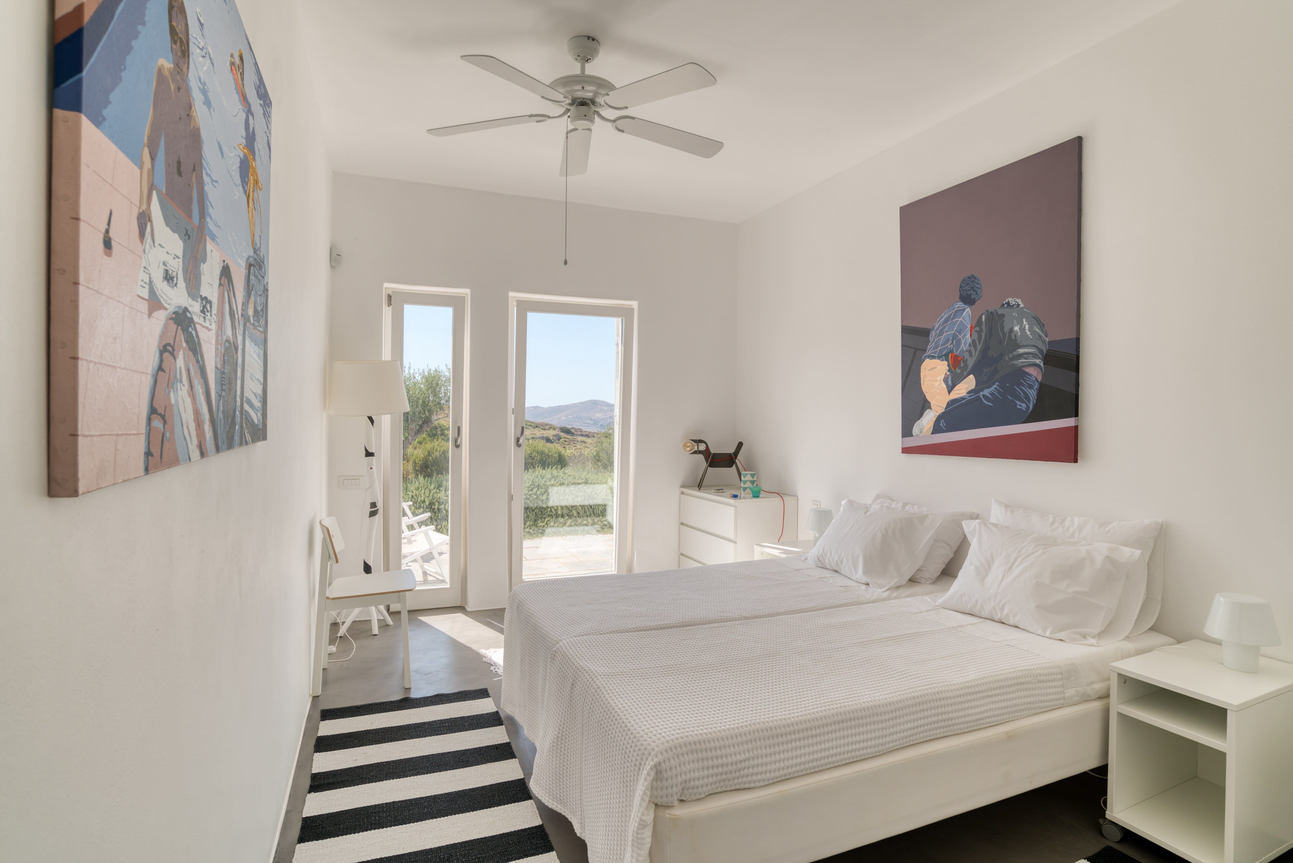 This luxury villa rental in Paros accommodates up to 10 guests with five spacious bedrooms and four beautifully appointed bathrooms. The villa is split over two levels, making it less suitable for those with limited mobility. Private parking is available, and having a car is recommended to explore the stunning surroundings. Two of the bedrooms feature twin beds that can be pushed together for flexibility. The property is pet-friendly, allowing your furry friends to join in on the holiday fun. Browse our luxury villa rentals in Greece for more properties.