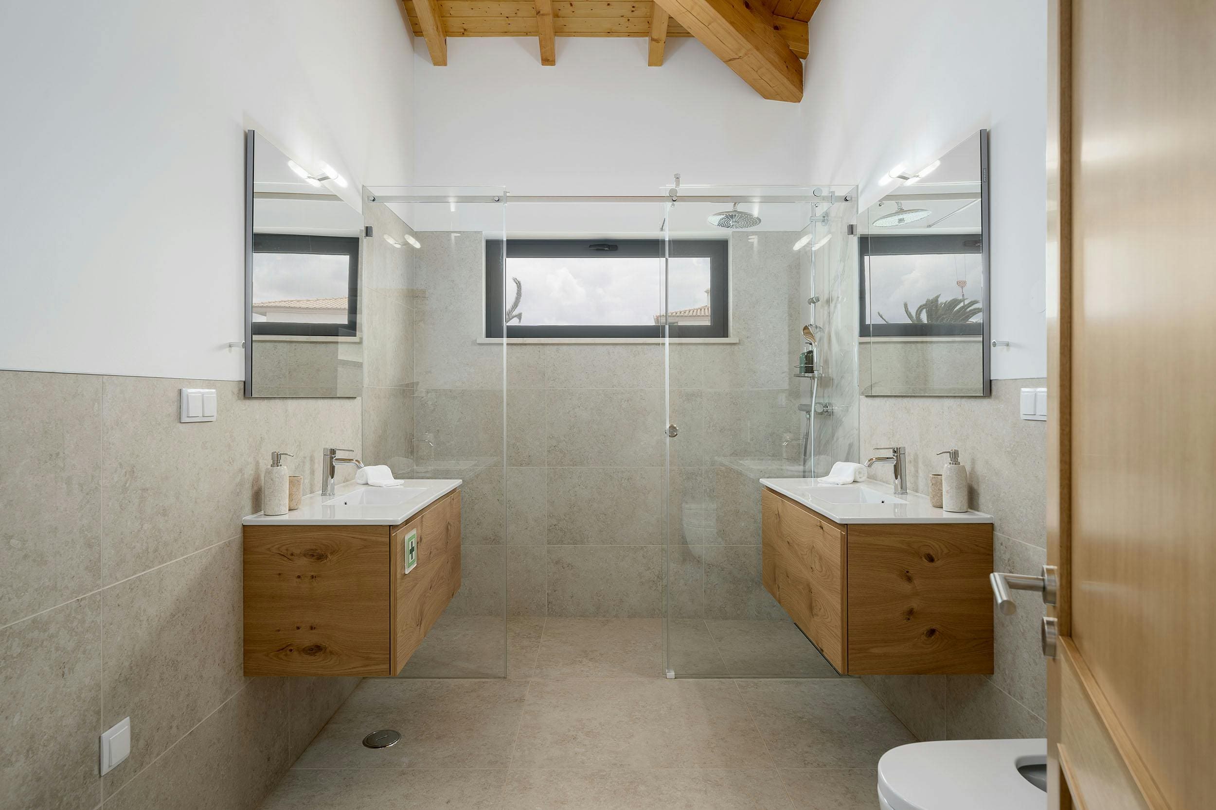 Accommodating up to 8 guests, the villa has four bedrooms and five bathrooms, ensuring comfort for all. Covered parking is available for two cars. Note: the pool is not fenced, and one bathroom is not photographed but maintains the same high standard. Browse our luxury villa rentals in Portugal for more properties.