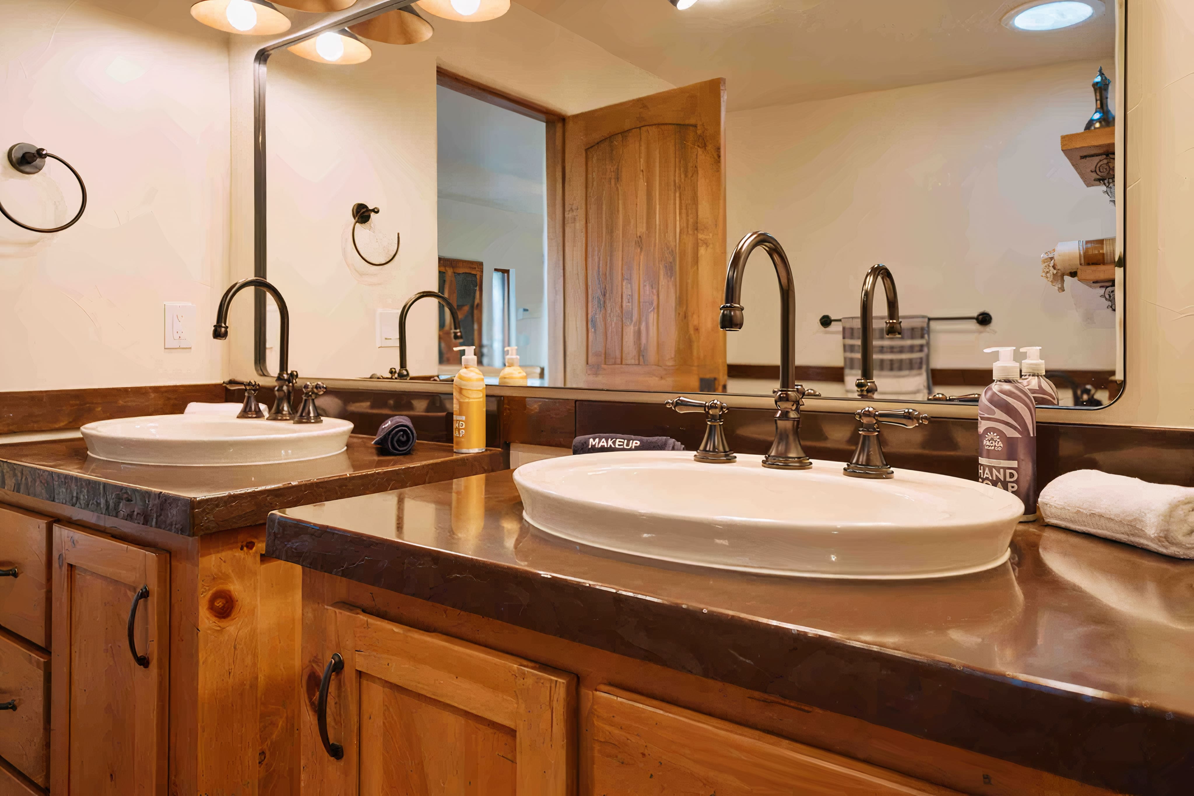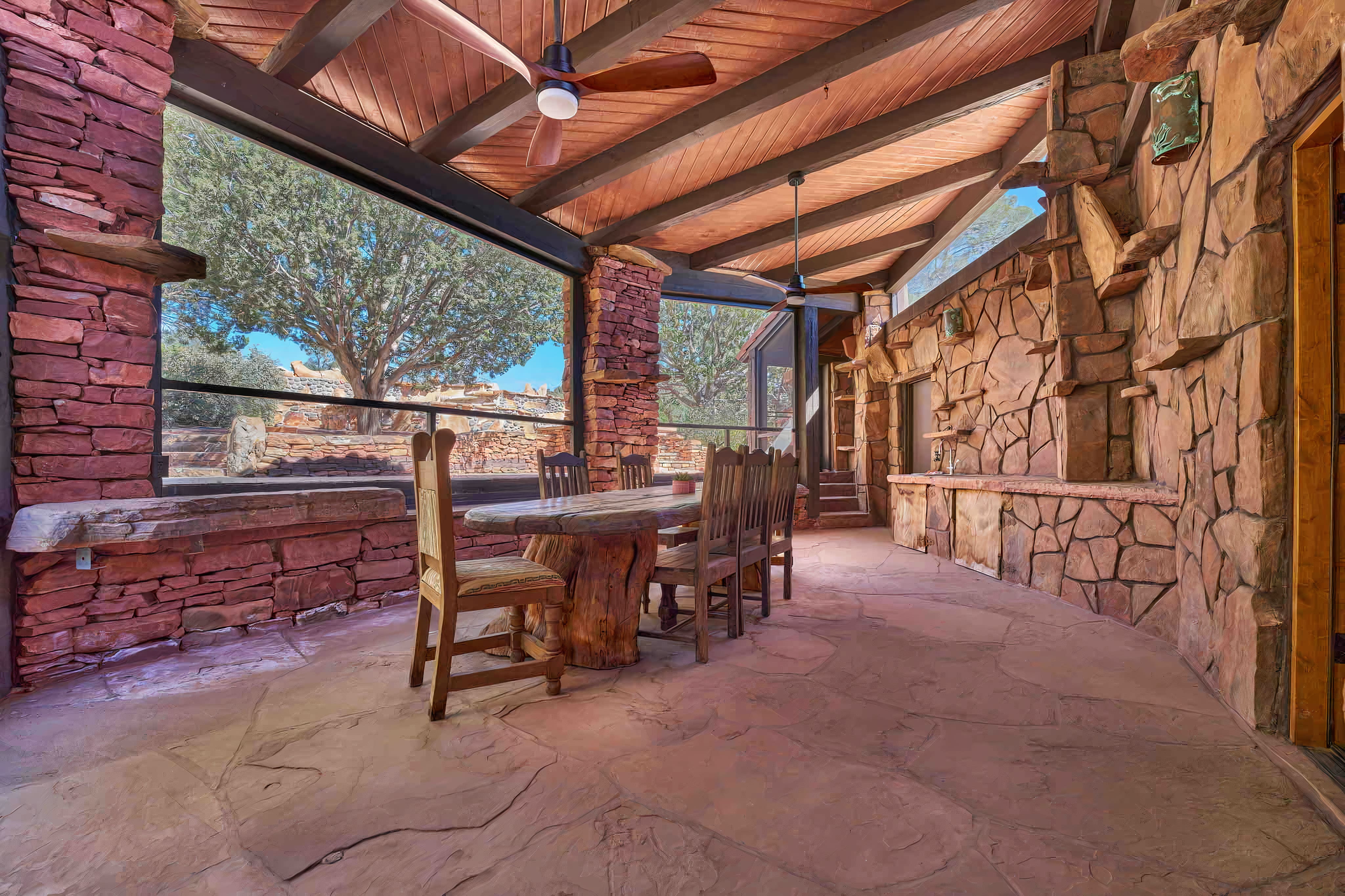 The outdoor areas transform this luxury villa rental Sedona into an al fresco paradise, headlined by a bubbling hot tub positioned to capture panoramic red rock vistas. A dramatic rooftop terrace provides elevated views across the high desert landscape, perfect for sunrise yoga or evening stargazing. The fire pit area creates magical gathering spaces under Arizona’s famous clear skies, while multiple terraces offer quiet corners for meditation or simply absorbing the powerful energy of this sacred landscape.