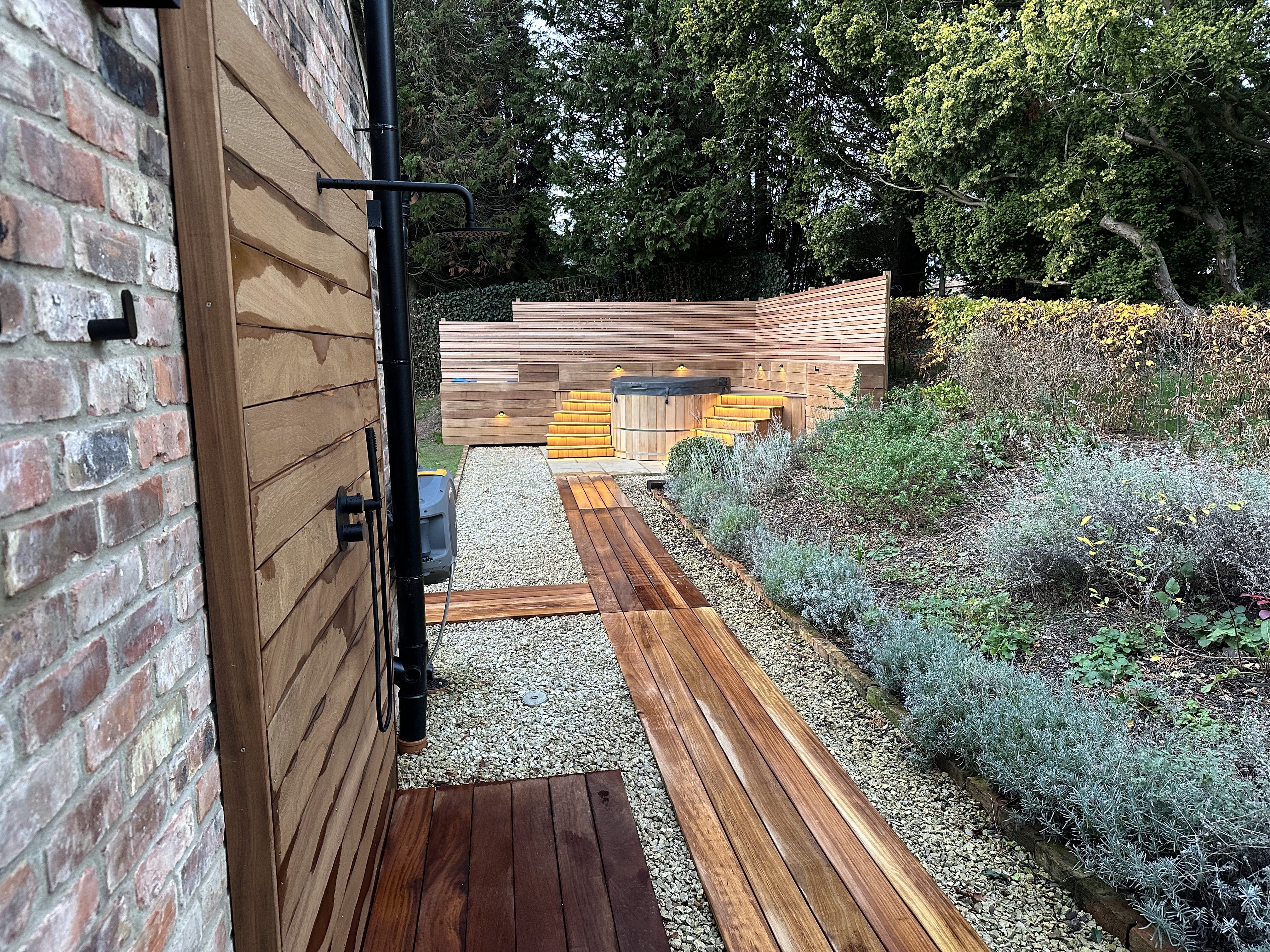 A: The rental includes full use of the property, private gardens, hot tub access, parking, and electric vehicle charging. Linens and towels are provided.