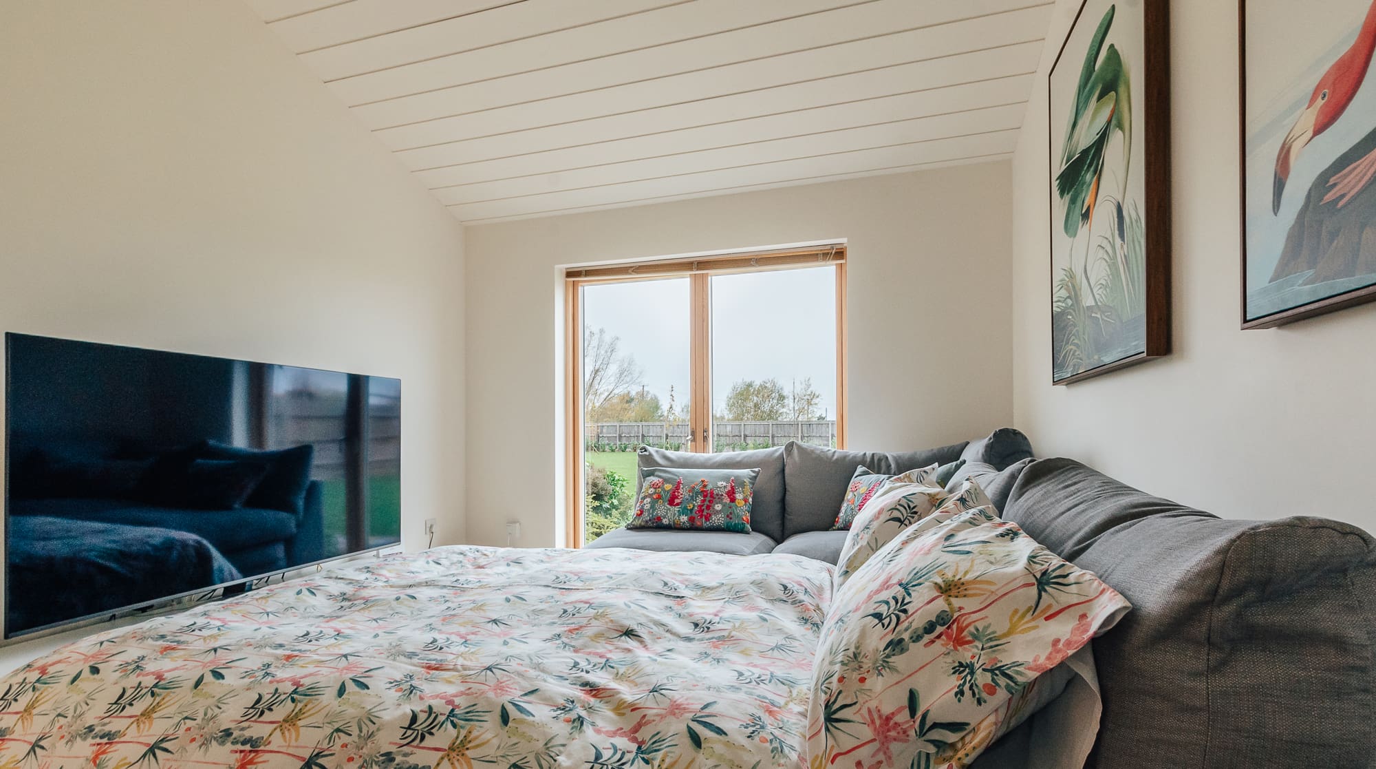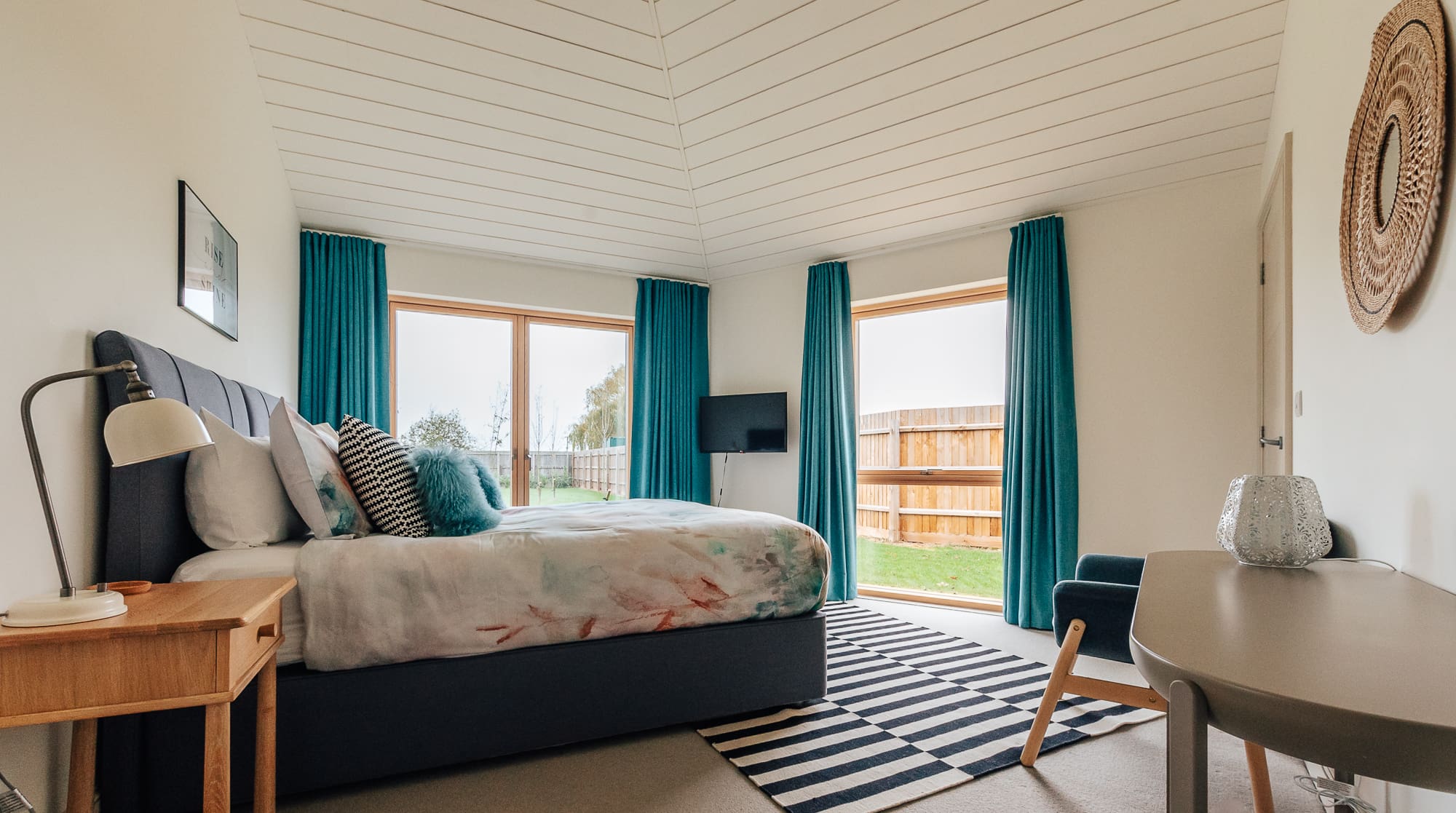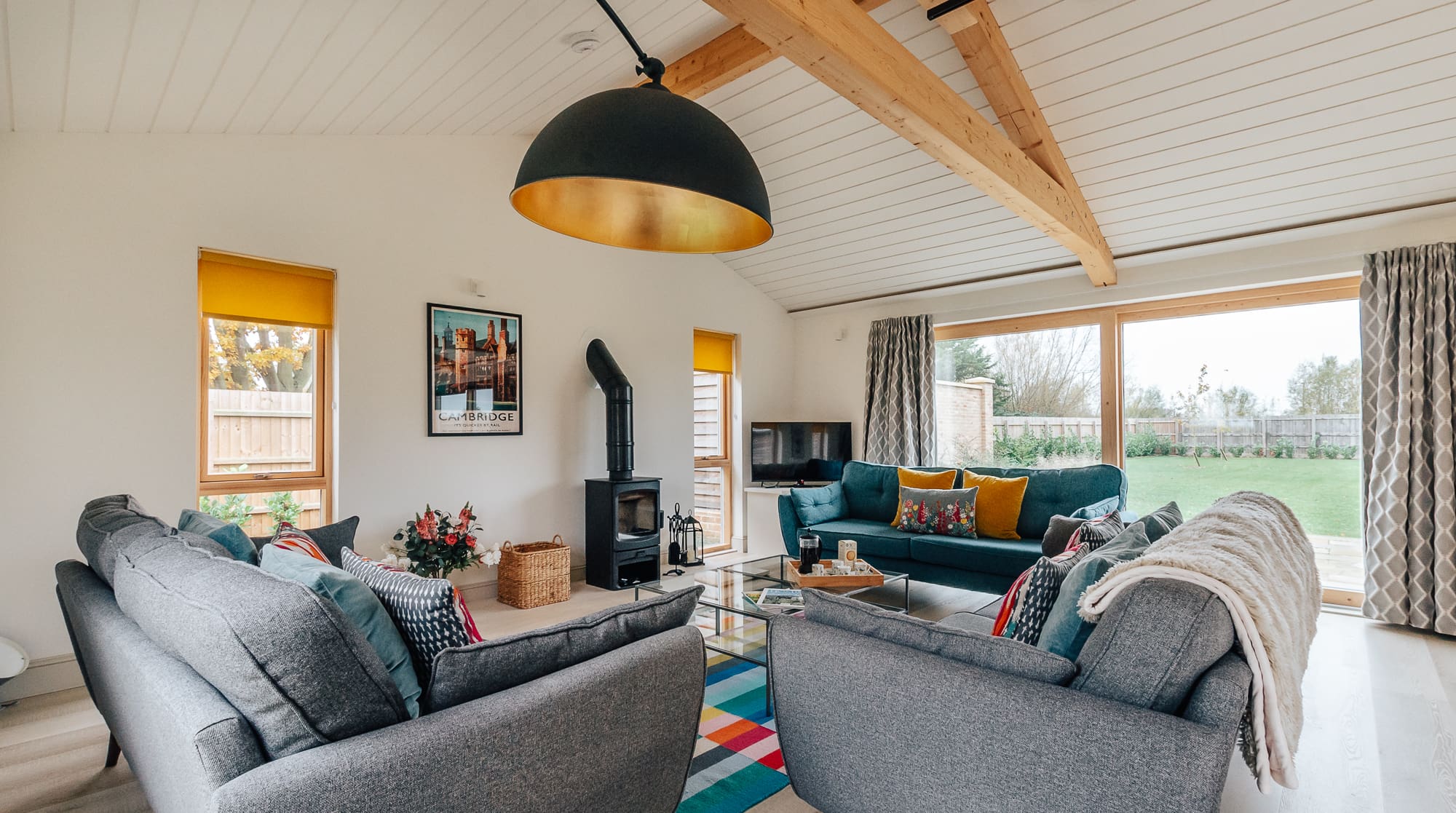 The interior showcases a sophisticated Nordic palette complemented by bright decorative touches and carefully curated furnishings. The open-plan kitchen, living and dining area forms the heart of the home, featuring premium appliances and a cosy log burner perfect for gathering after days exploring the Fenland countryside. Four beautifully appointed bedrooms accommodate up to ten guests, with super king beds offering zip-and-link flexibility to create twin arrangements when needed. Three elegant bathrooms include accessibility features, with level access throughout the property ensuring comfort for all guests.