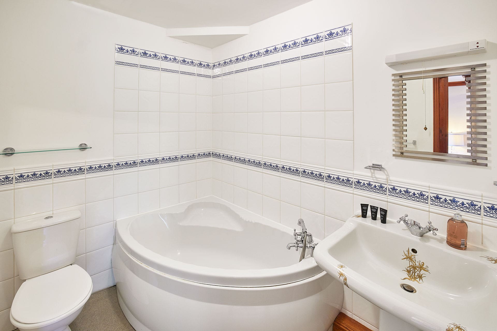A: The property includes full kitchen facilities, hot tub, games room with pool table, bar area, extensive gardens, parking for 30 vehicles, and complimentary cots and high chairs upon request.