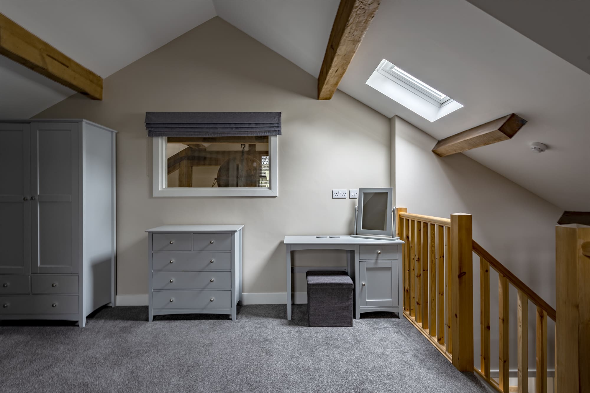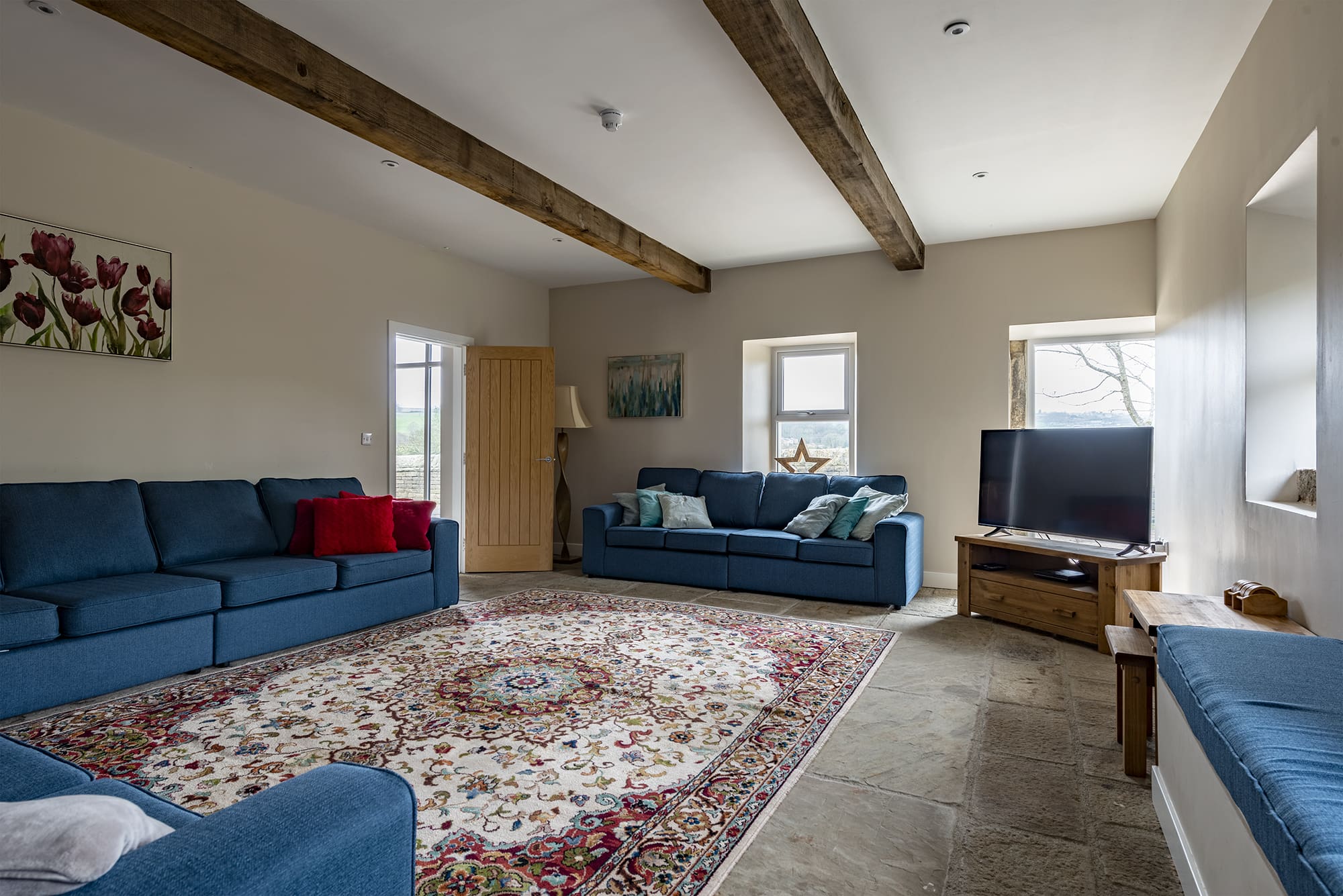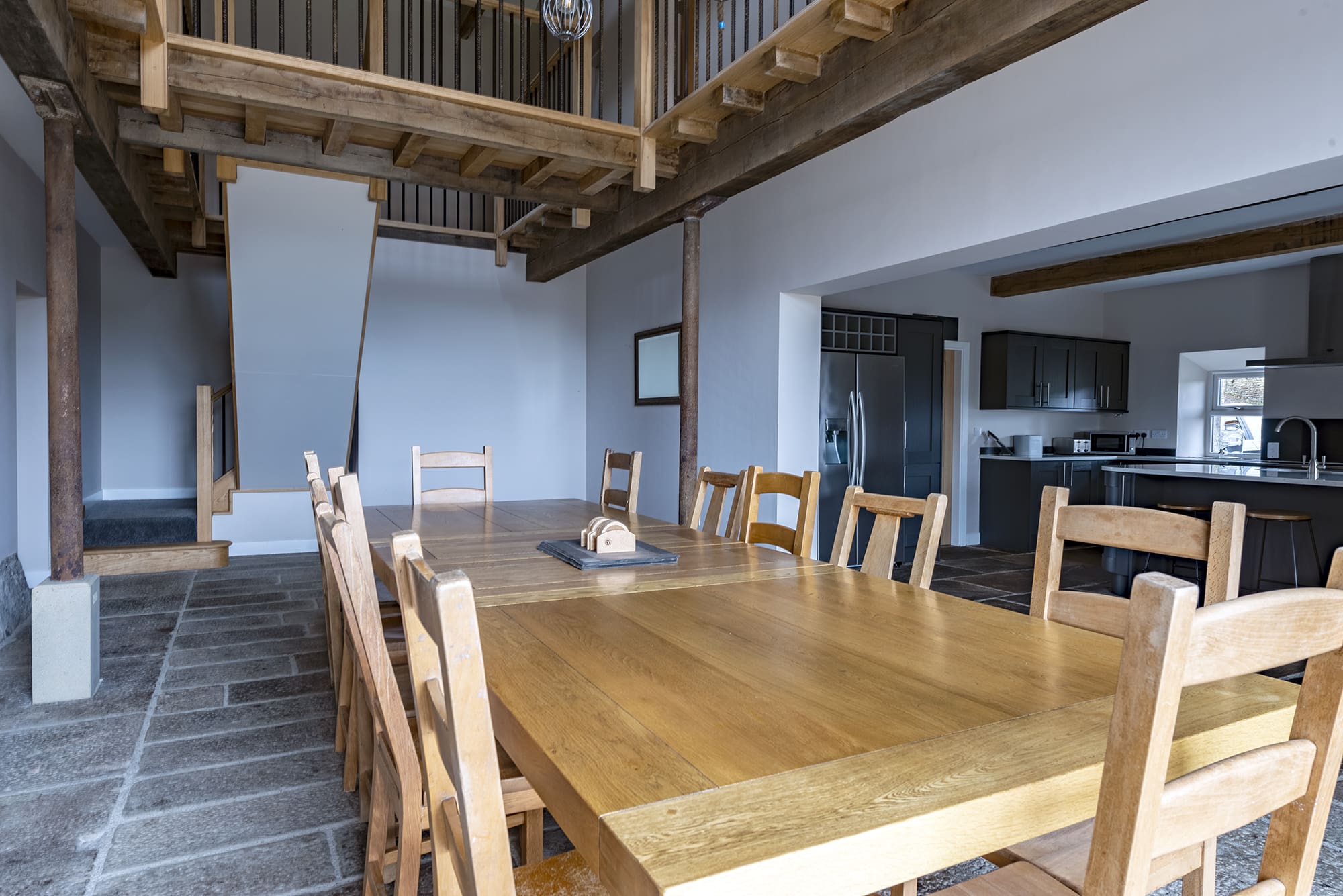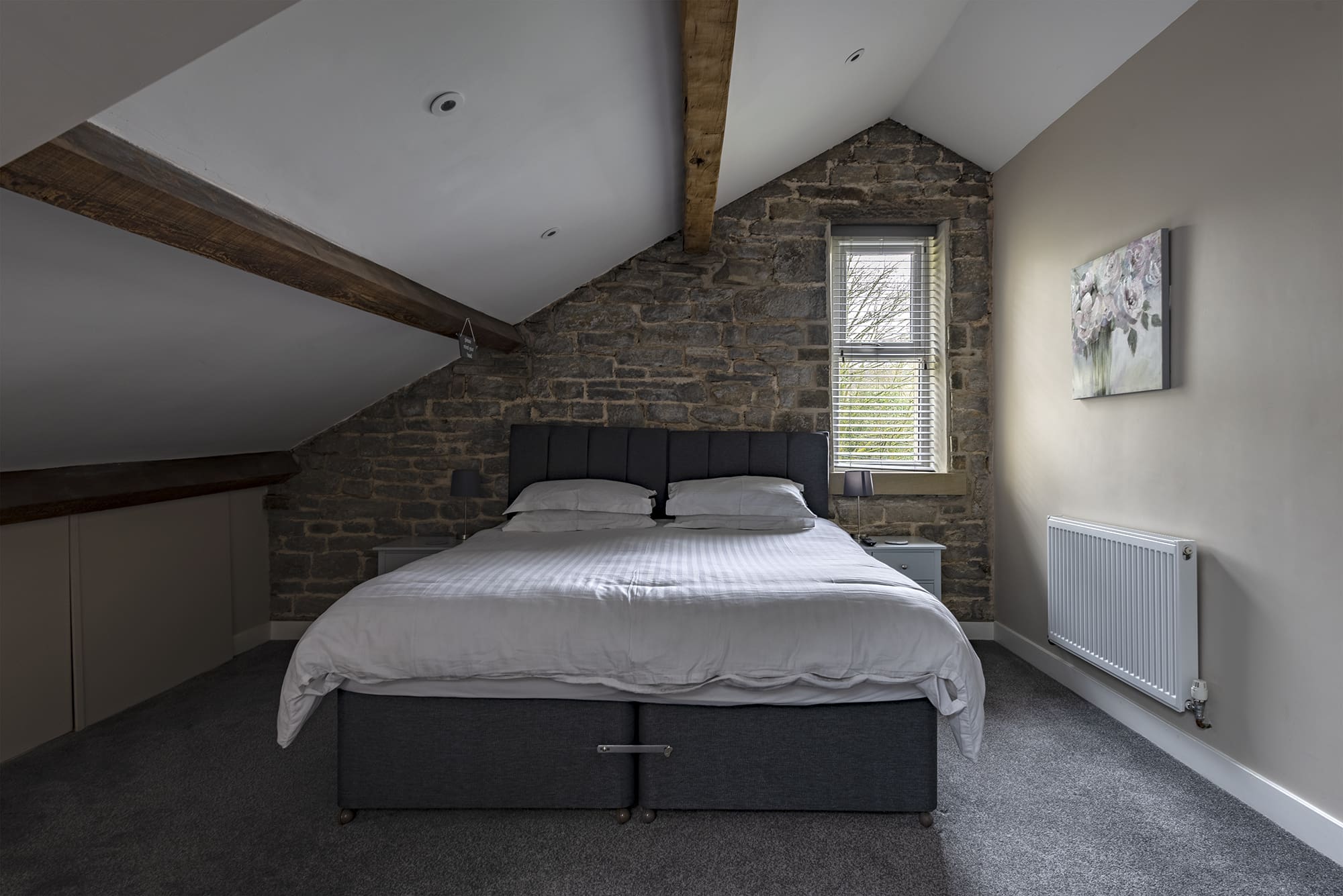 Step inside this beautifully designed apartment, where rustic elegance meets contemporary comfort. The expansive living area features high ceilings adorned with wooden beams, creating a warm and inviting atmosphere. Exposed stone walls add character, while large picture windows frame breathtaking views of the Calder Valley. The modern kitchen, equipped with state-of-the-art appliances and a sleek island, invites culinary creativity. Gather around the long dining table for memorable meals, or relax in the plush seating area, perfect for unwinding after a day of exploration. Each of the six bedrooms offers luxurious accommodations, and upon request, beds can be arranged as twins, providing flexibility for your group.