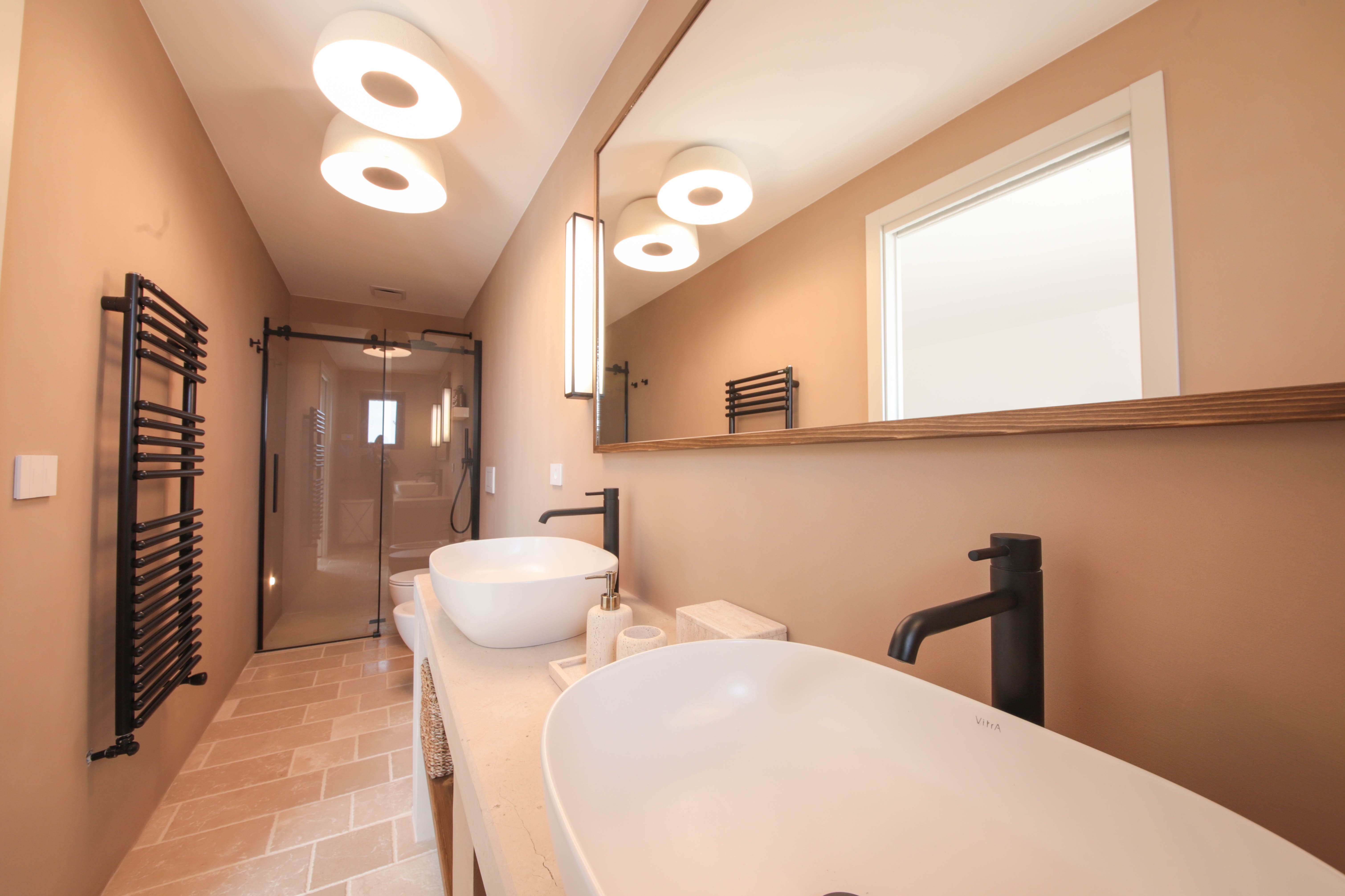 Step inside to discover a world of comfort and style. The apartment boasts seven spacious bedrooms, each with its own en-suite bathroom, ensuring privacy and convenience for all guests. The interior design is a sophisticated mix of rustic charm and contemporary elegance, featuring exposed stone walls and sleek modern furnishings. The fully-equipped kitchen invites culinary exploration, while the expansive living area provides a perfect gathering space for family and friends.