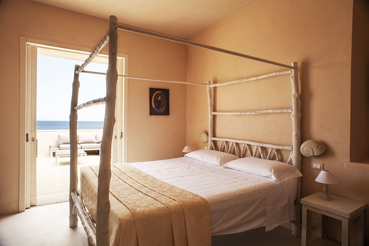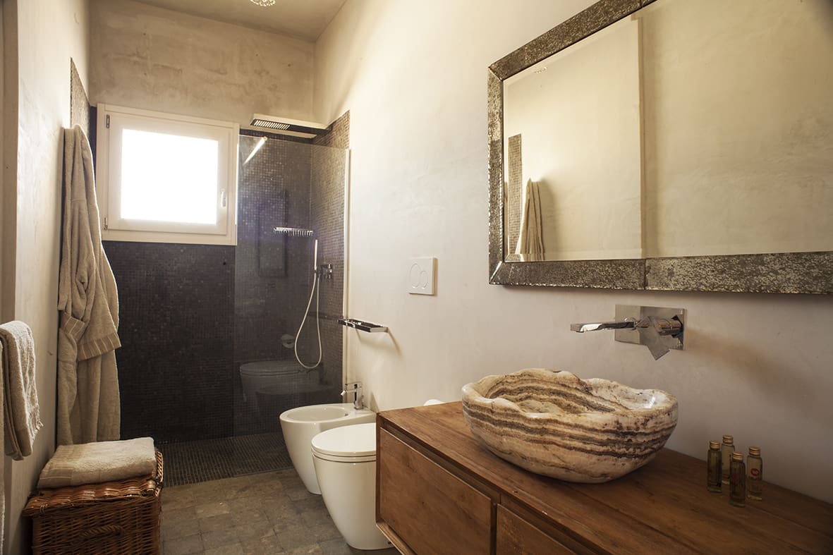 The interior of this luxury apartment rental in Tricase is a testament to minimalist design, ensuring a breezy and cool atmosphere amidst the Puglian heat. The living spaces are thoughtfully arranged, with an emphasis on comfort and relaxation. Each of the five bedrooms offers a sanctuary of tranquility, complete with sea views that invite the natural beauty indoors. The rustic kitchen adds a touch of traditional charm, equipped with everything needed for culinary adventures.