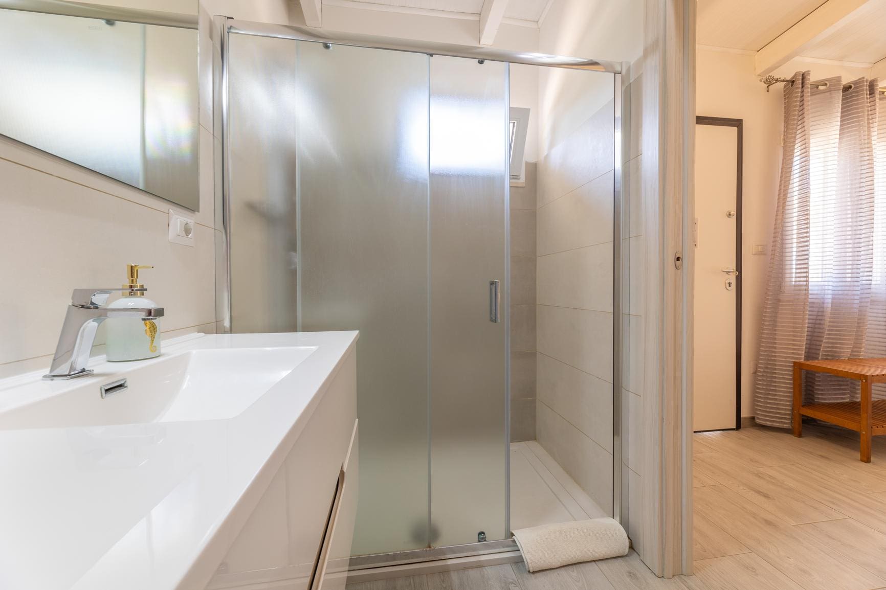 Step inside and discover a spacious interior designed to accommodate up to 16 guests comfortably. The villa boasts six beautifully appointed bedrooms, each with its own en-suite bathroom, ensuring privacy and convenience for all. Two of the bedrooms are thoughtfully designed with a double bed and bunk beds, making them ideal for families traveling with children. The open-plan living area, featuring a modern kitchen and dining space, invites you to gather and create lasting memories. With air-conditioning throughout, you’ll stay cool and comfortable even on the warmest days.