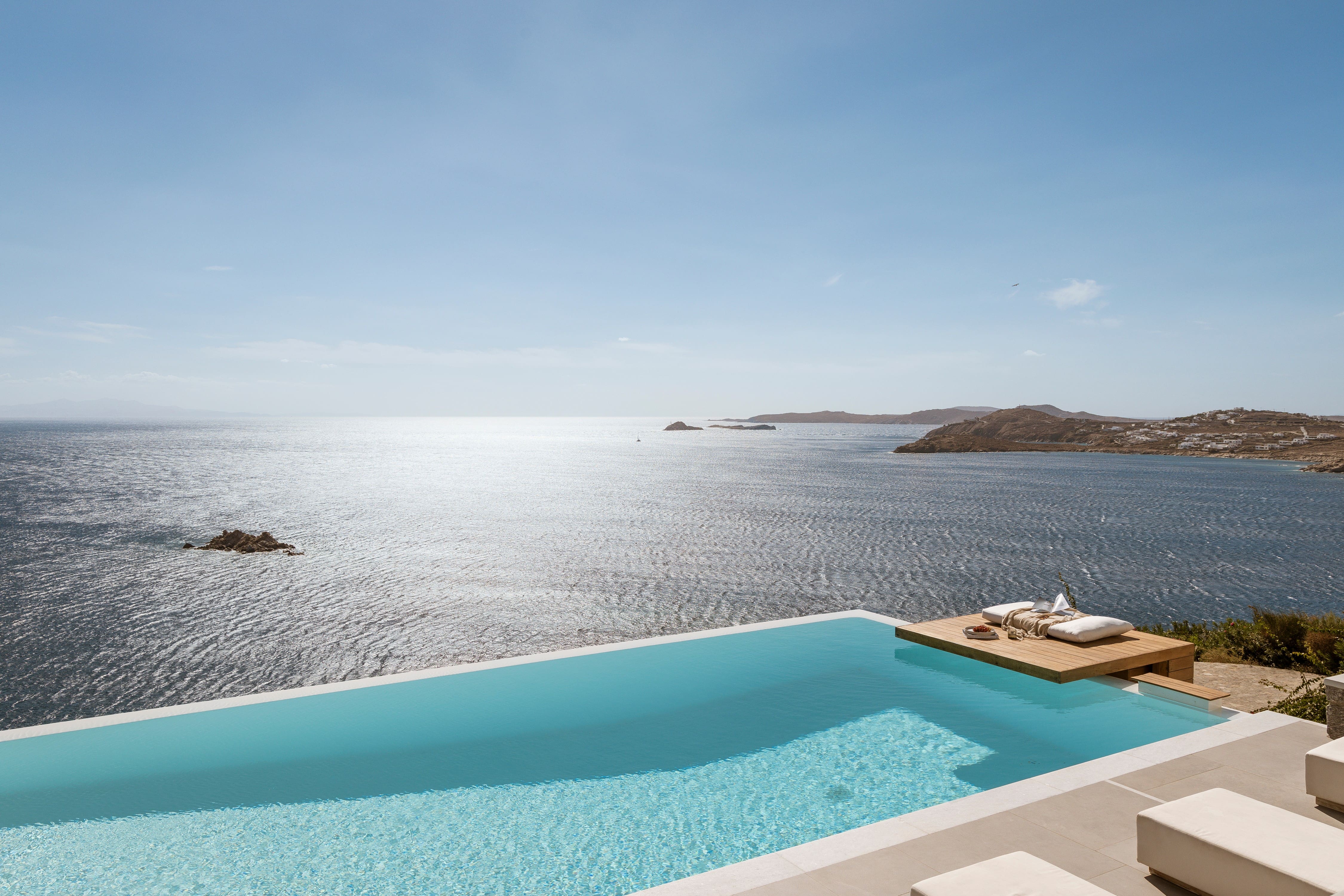 The infinity pool creates a stunning focal point, appearing to spill directly into the Aegean beyond while providing the perfect spot for afternoon relaxation. Multiple terraces offer various settings for al fresco dining, morning coffee or evening cocktails, each capturing different perspectives of the dramatic coastline. The clifftop position ensures complete privacy while delivering panoramic views across the azure waters towards neighbouring Cycladic islands.