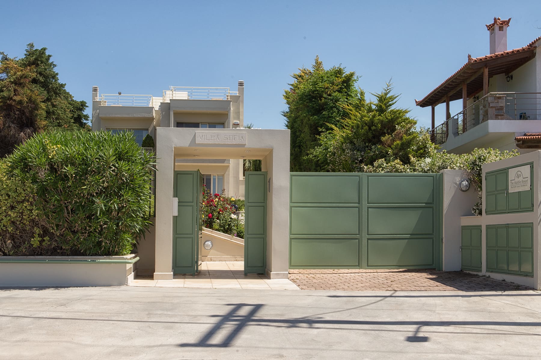 A: The nearest airport is Athens International Airport, approximately a 1.5-hour drive from the villa.