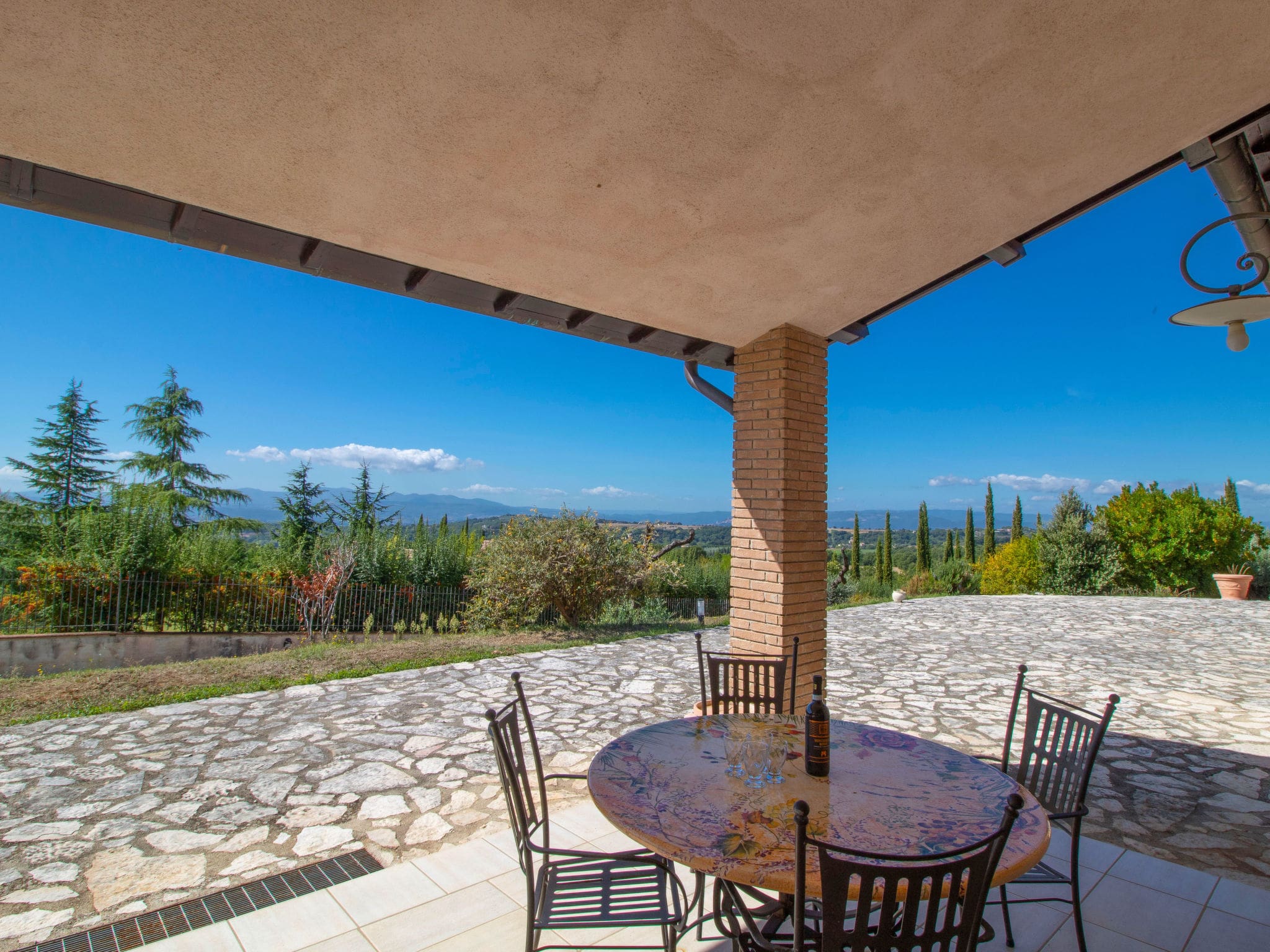 The mature gardens surrounding the villa invite exploration and relaxation. Ancient trees provide natural shade while meticulously maintained lawns offer space for outdoor games and activities. A barbecue area encourages al fresco dining, allowing guests to savour local produce while taking in views across the Umbrian hills. The property’s elevated position at 350 metres above sea level ensures cooling breezes even on the warmest days.