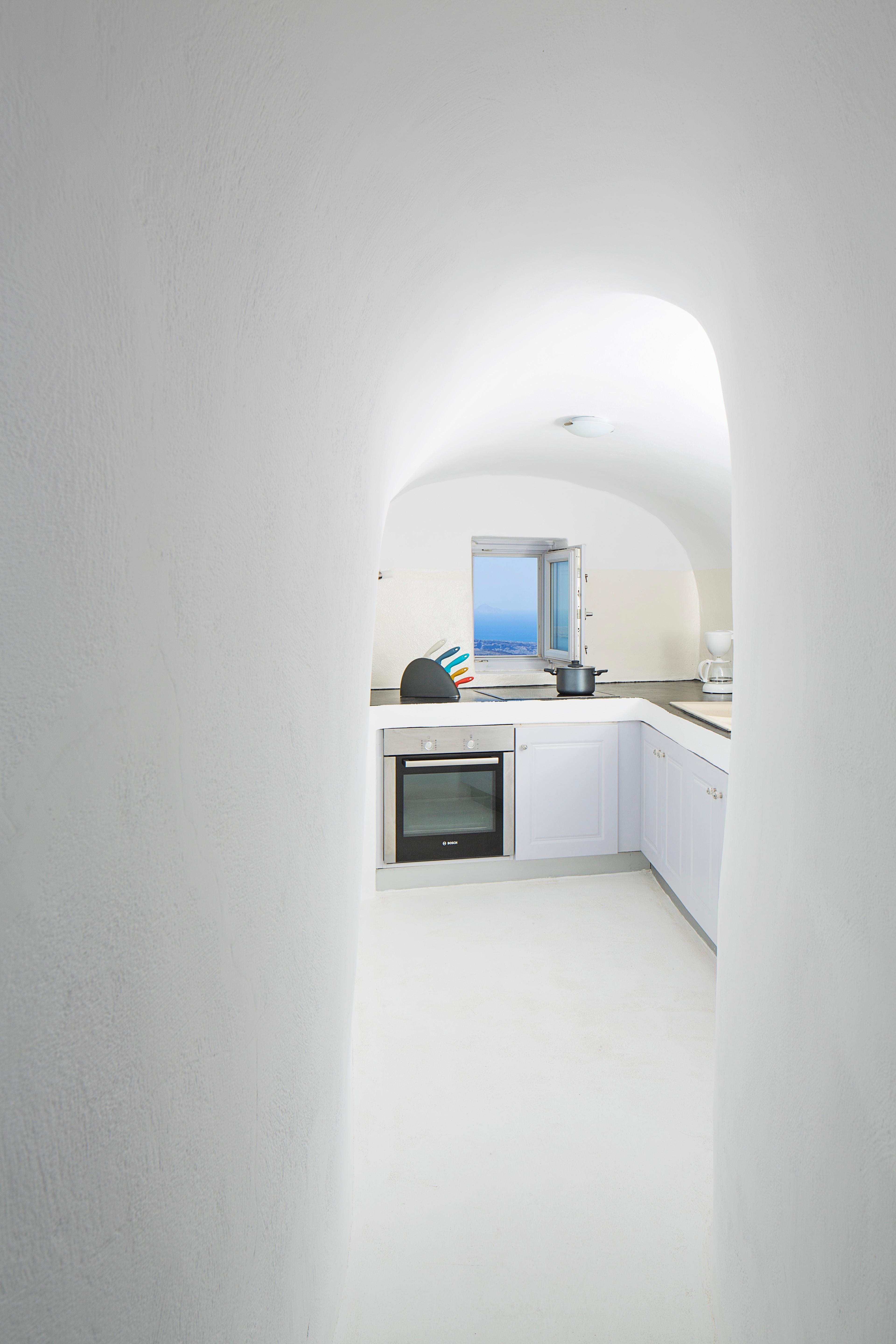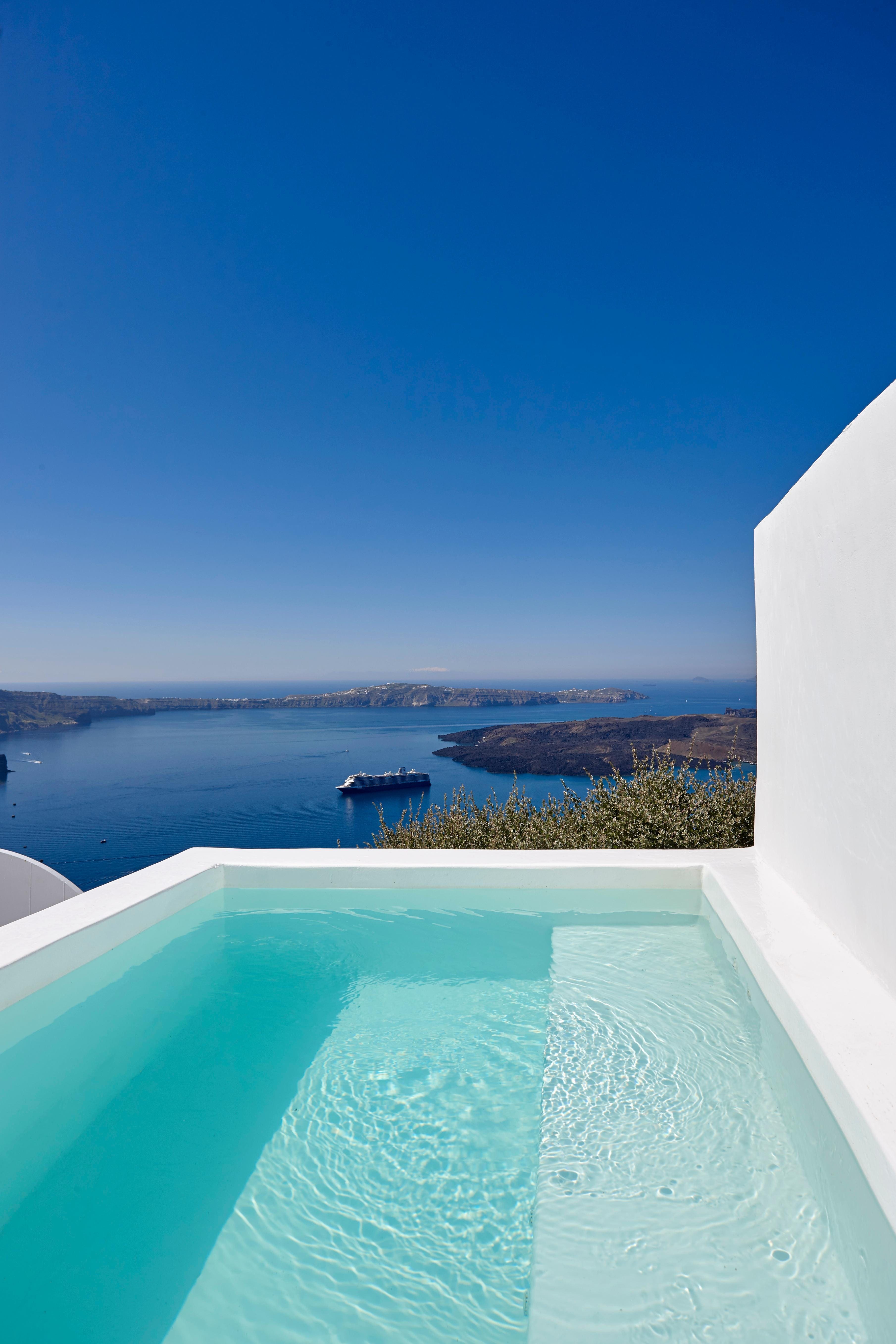 Outside, the allure of Santorini’s landscape is ever-present. Lounge by the pristine swimming pool or relax in the hot tub, both offering mesmerizing views of the Aegean Sea. The expansive terrace is perfect for alfresco dining, surrounded by the fragrant aroma of local flora. Here, the beauty of Santorini unfolds with every sunrise and sunset, offering a truly unforgettable experience.