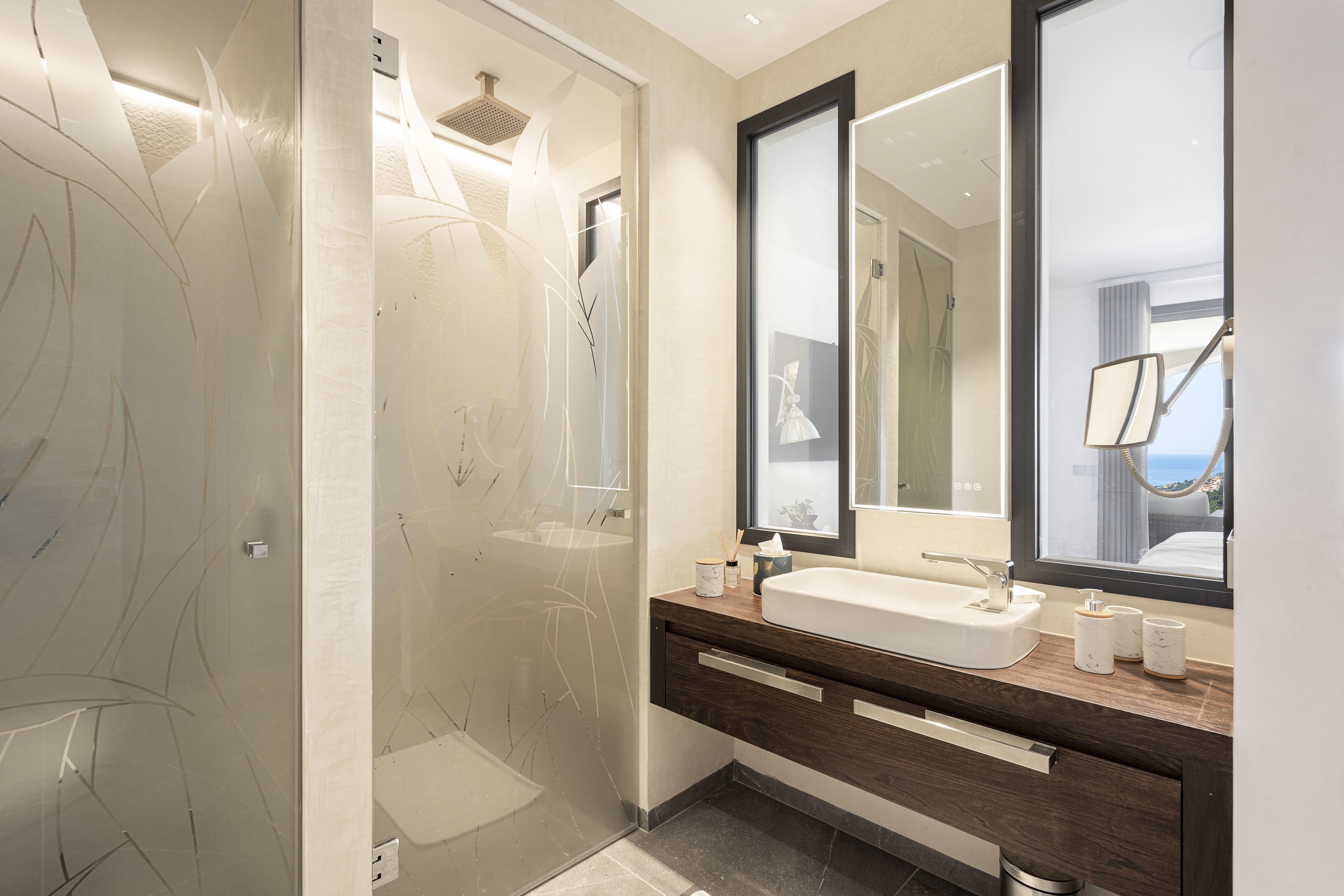The infinity swimming pool appears to merge with the Mediterranean horizon, creating the property’s most spectacular vantage point for sunset viewing. Multiple terraces provide diverse outdoor living options, from the fully equipped outdoor kitchen perfect for al fresco dining to intimate seating areas ideal for morning coffee. Retractable pool covers help maintain optimal water temperature while optional safety fencing ensures peace of mind for families with young children.