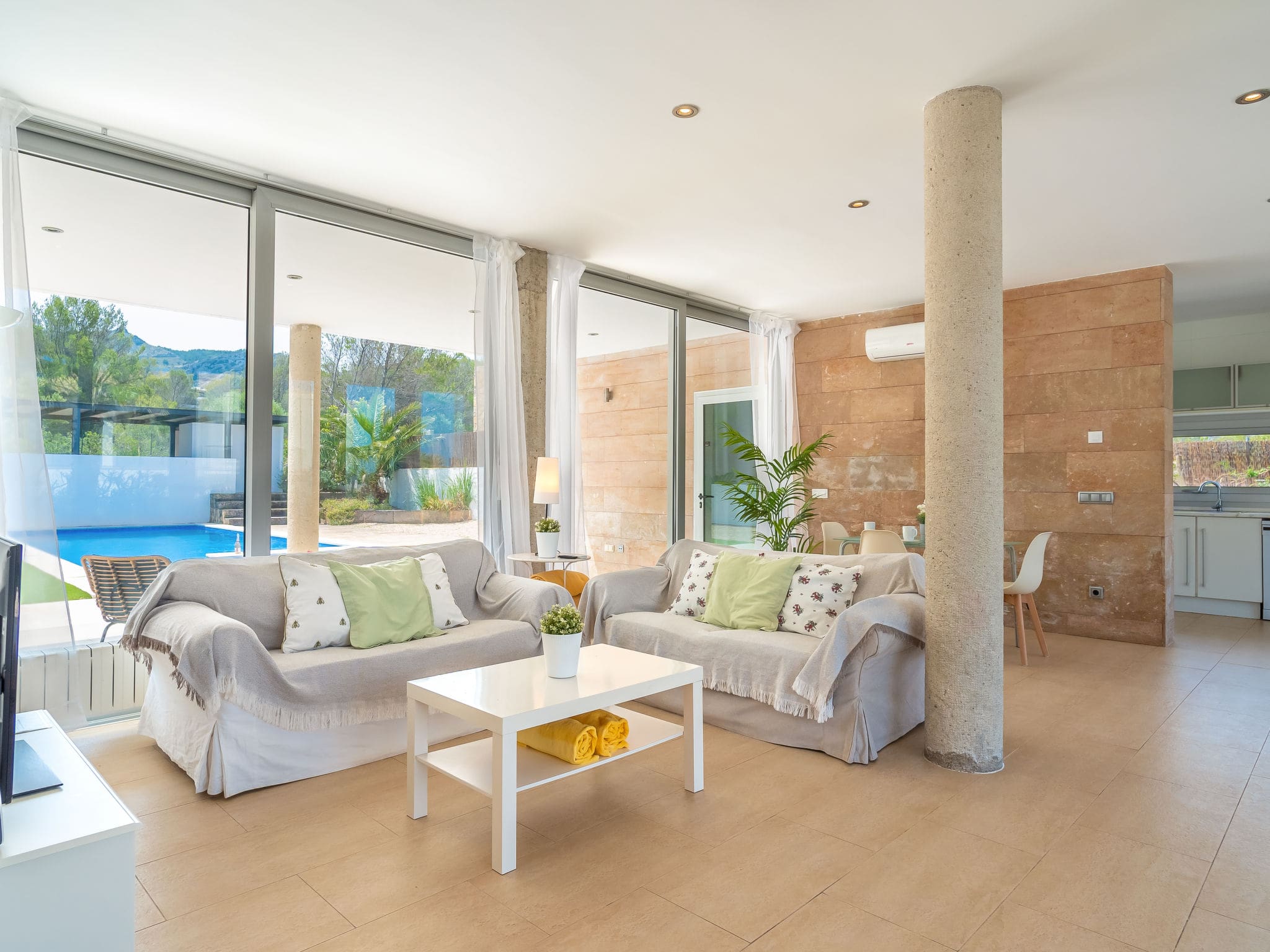 Evening entertainment flows naturally from pool area to covered terraces, where families can gather for al fresco dining while adults enjoy those magnificent sunset views over the Balearic landscape.