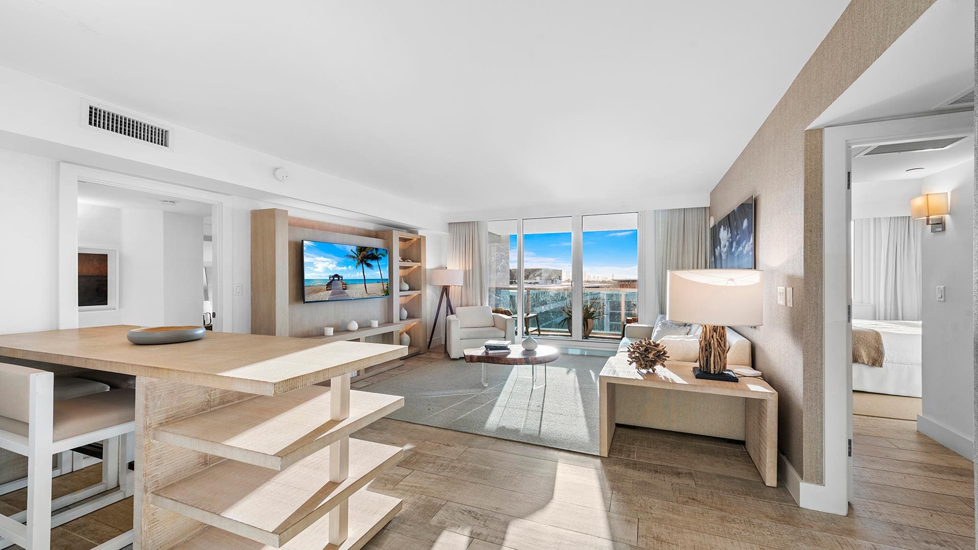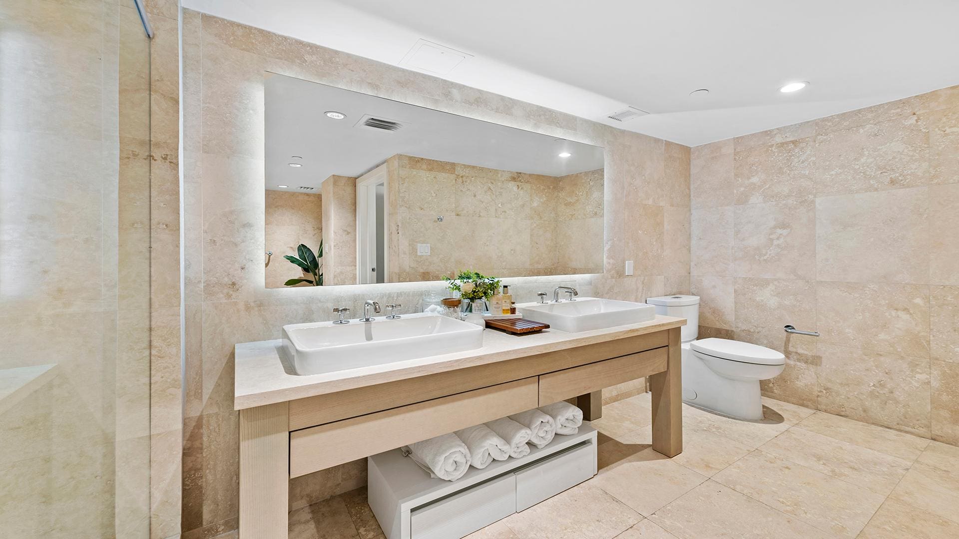 Upon entering the villa, you’ll be greeted by an elegantly designed interior that perfectly captures Miami’s chic style. The open-plan living area features plush seating, contemporary decor, and large windows that flood the space with natural light. The gourmet kitchen is equipped with top-of-the-line appliances, ideal for culinary enthusiasts. Each of the two bedrooms offers a private sanctuary with its own en-suite bathroom, ensuring ultimate comfort and privacy for all guests. The master suite, with its luxurious bedding and stunning sea views, promises restful nights.