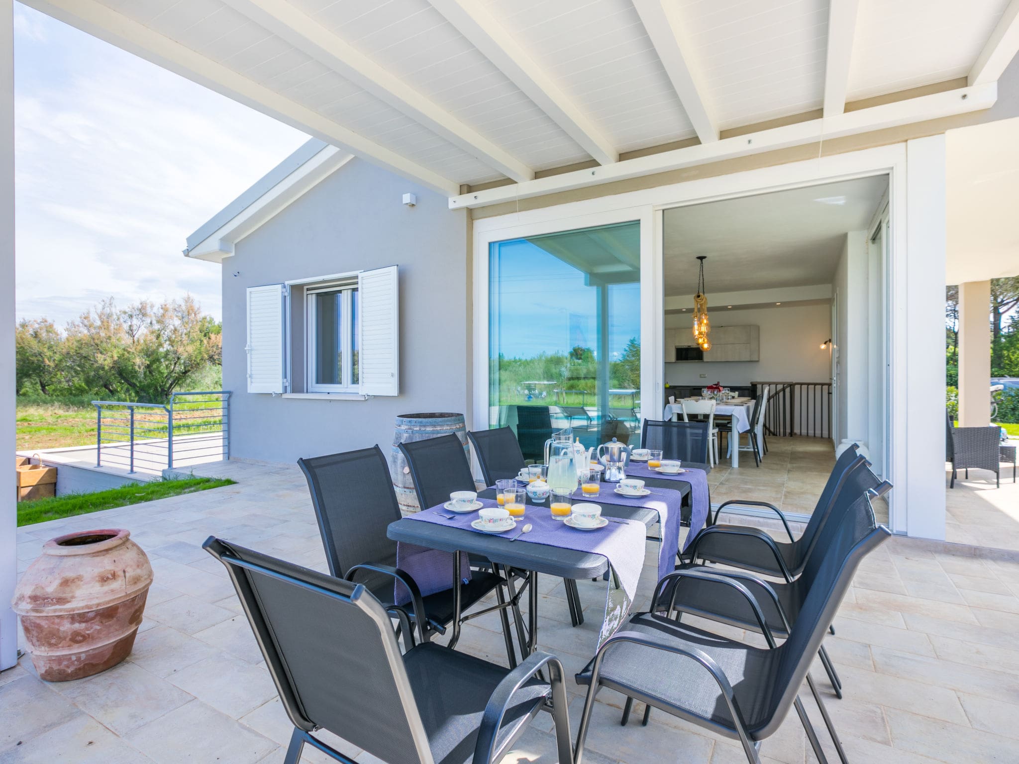 The villa’s outdoor spaces rival its interior appointments. The centrepiece is a magnificent 10 by 5 metre swimming pool with varying depths from 90 to 150 centimetres, available from April through October with professional maintenance included. Expansive terraces provide multiple zones for relaxation and entertainment, furnished with ten deck chairs for poolside lounging and equipped with a barbecue for al fresco dining.