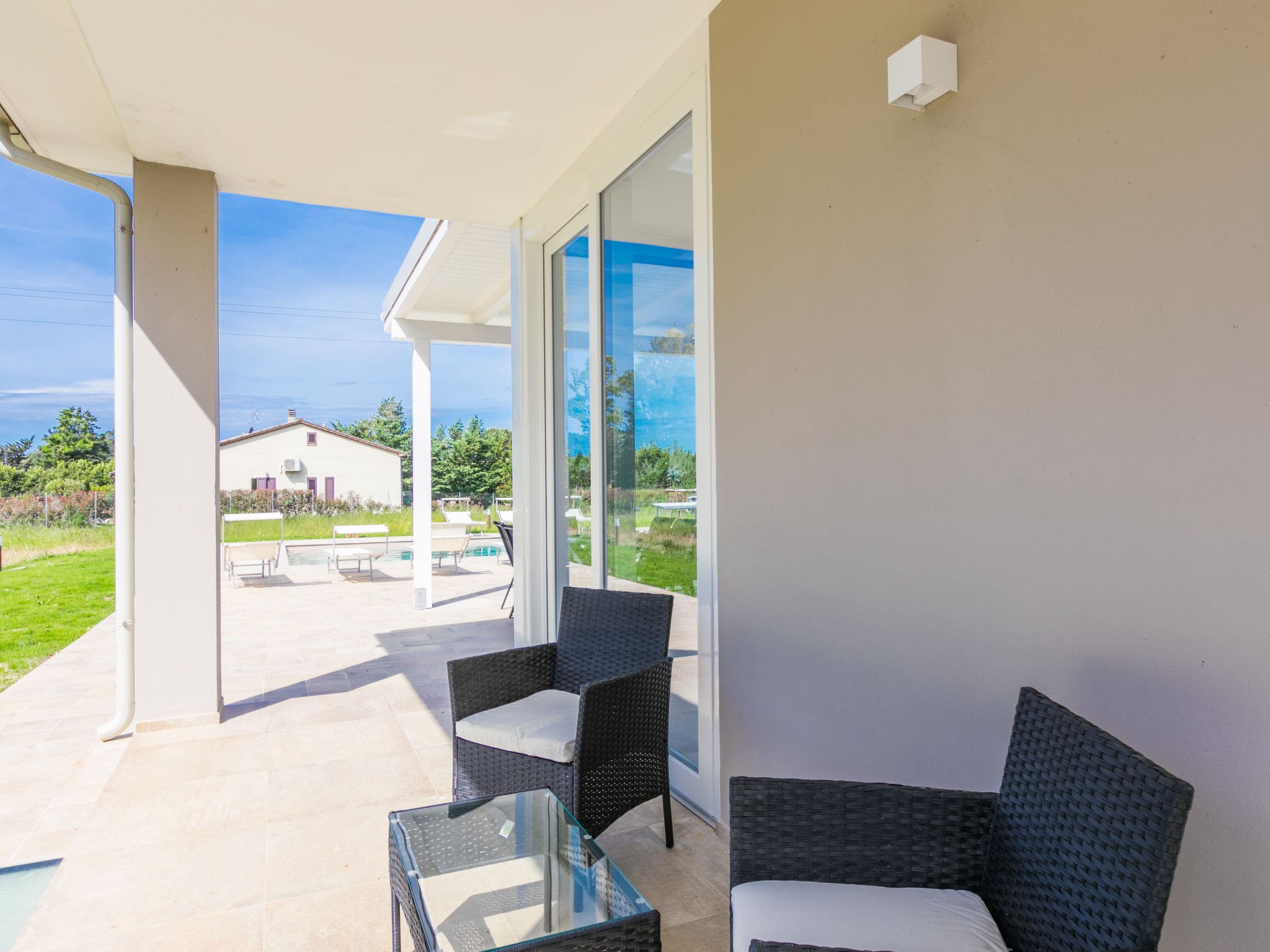 Daily essentials are easily accessible, with shops, groceries, restaurants, and bakeries all within 1.2 kilometres. The property’s sustainable features align with modern luxury villa standards in Italy, incorporating renewable energy and eco-friendly practices without compromising comfort.