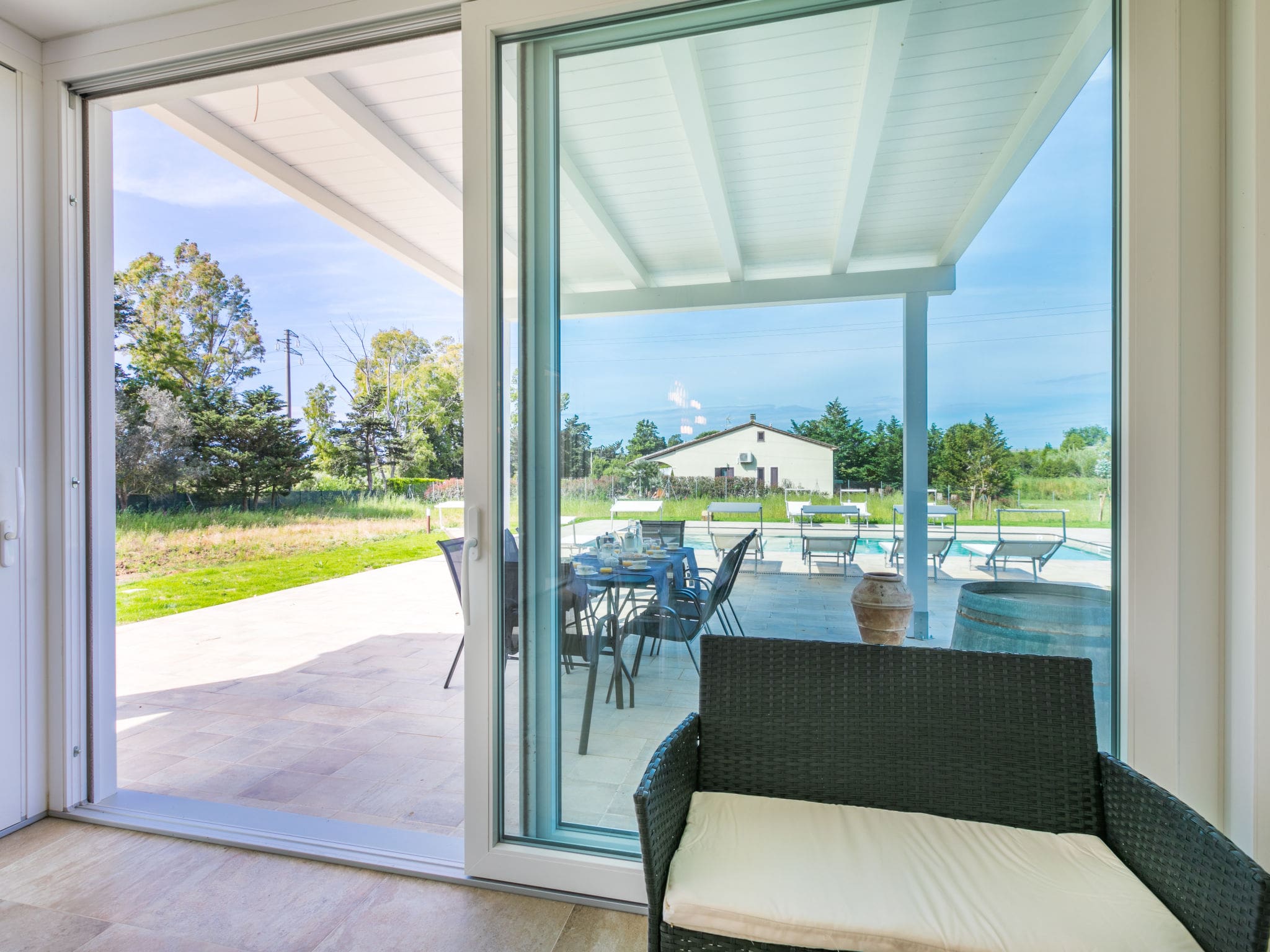 This outstanding luxury villa rental in Cecina, Tuscany combines contemporary design with the timeless appeal of the Italian countryside. Built in 2023 and set on a private hectare of fenced grounds surrounded by trees and rolling fields, this modern three-bedroom property offers an exceptional base for exploring the renowned wine region of Bolgheri and the pristine beaches of the Etruscan Coast.