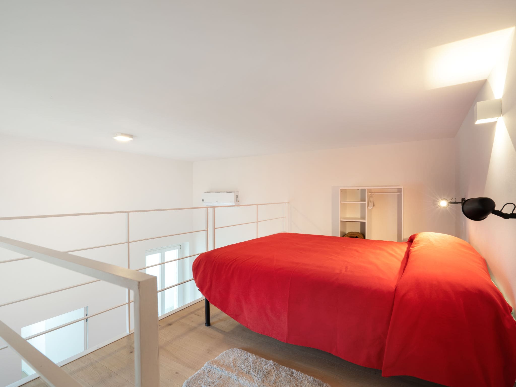 This magnificent 5-room apartment spans the second floor of a historic building, featuring sophisticated interiors that blend contemporary comfort with timeless Italian elegance. The spacious living and dining area serves as the heart of the home, complete with modern amenities and air conditioning, while French doors open onto a private balcony showcasing breathtaking sea vistas. Three beautifully appointed bedrooms accommodate up to eight guests, with two double bedrooms featuring air conditioning and balcony access, plus an additional upper-level gallery space with two comfortable single beds accessed via charming steep stairs that add character to the property.