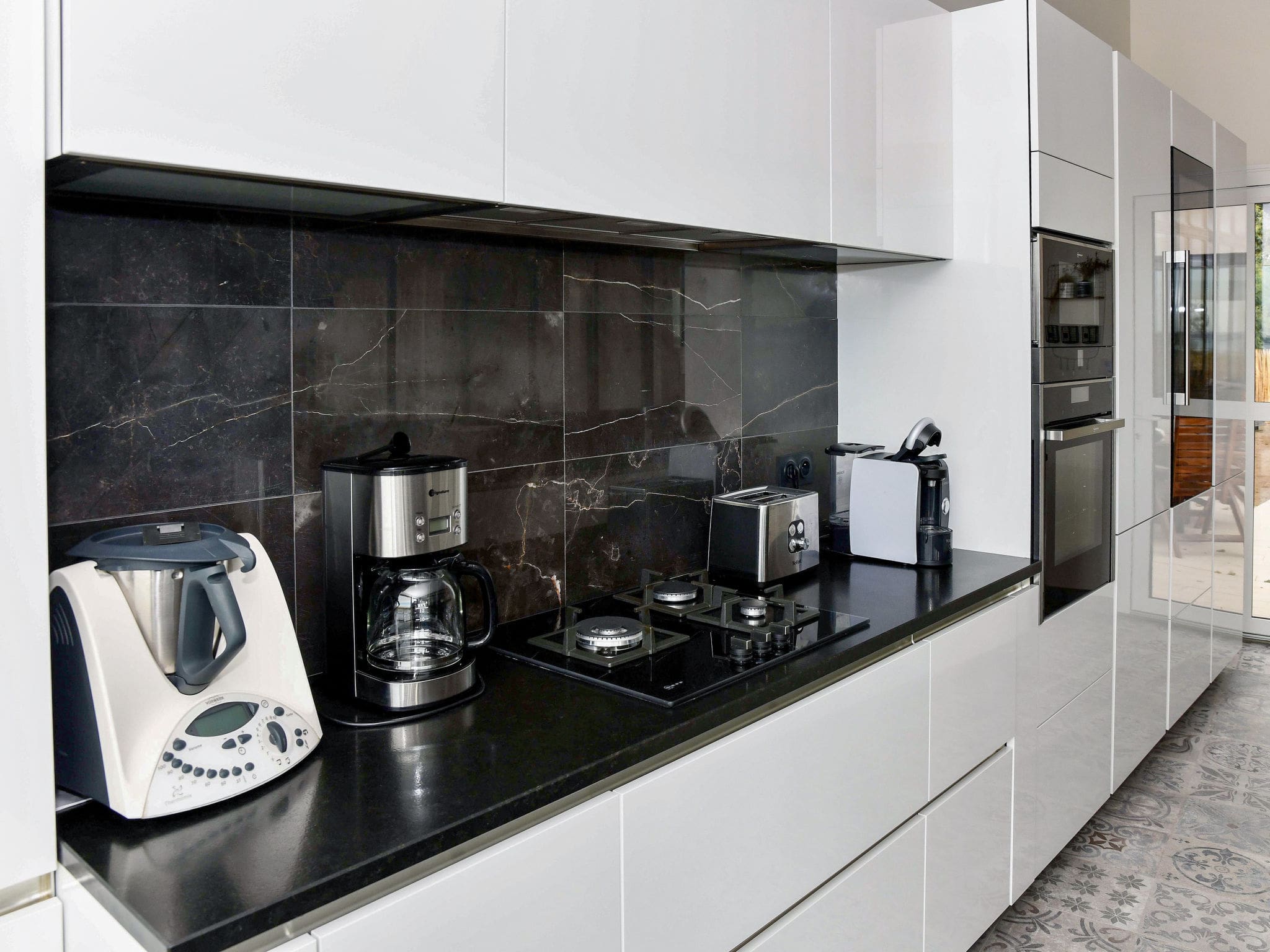 This magnificent 136m² single-level residence showcases impeccable design throughout its four beautifully appointed rooms. The heart of the home features an expansive living and dining area centred around a striking open-hearth fireplace, perfect for cozy evenings while satellite television provides international entertainment options. Each of the three elegantly furnished bedrooms opens directly onto outdoor spaces, with the master suite featuring a luxurious French bed, sophisticated bath and shower combination, and dual hand-basins. The second bedroom offers comfort with its own ensuite bathroom, while the third bedroom with twin beds includes a refreshing shower room. The fully equipped kitchen combines functionality with style, featuring premium appliances including a dishwasher, microwave, and electric coffee machine, alongside a charming breakfast table for intimate morning meals.