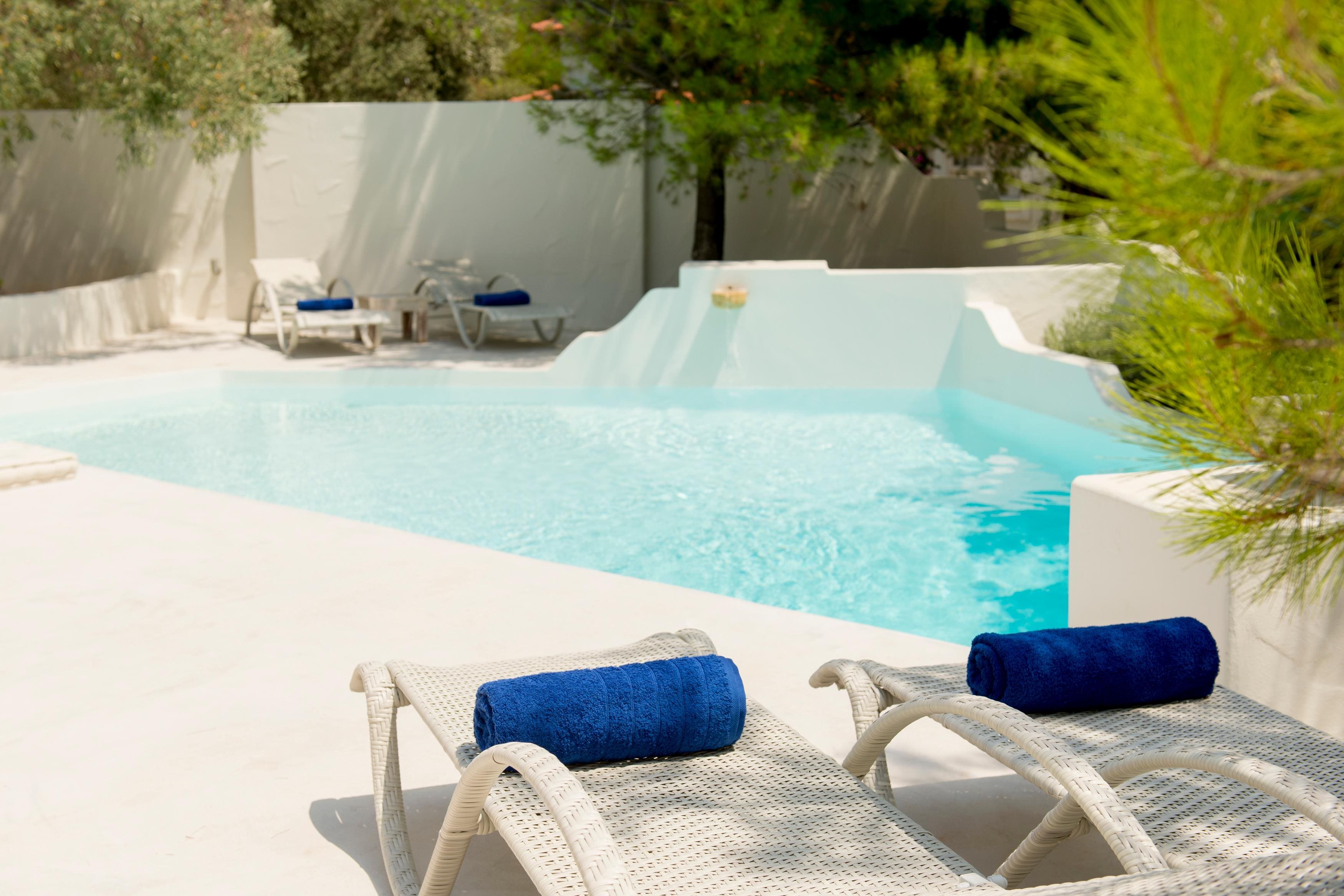 The apartment accommodates up to eight guests, with three bedrooms and three bathrooms. Parking is available for two cars, and a car is recommended for exploring the area. Enjoy twice-weekly linen and towel changes, daily pool and garden cleaning, and a welcome basket of local wine and fresh fruits. For more options, browse our luxury villa rentals in Greece.