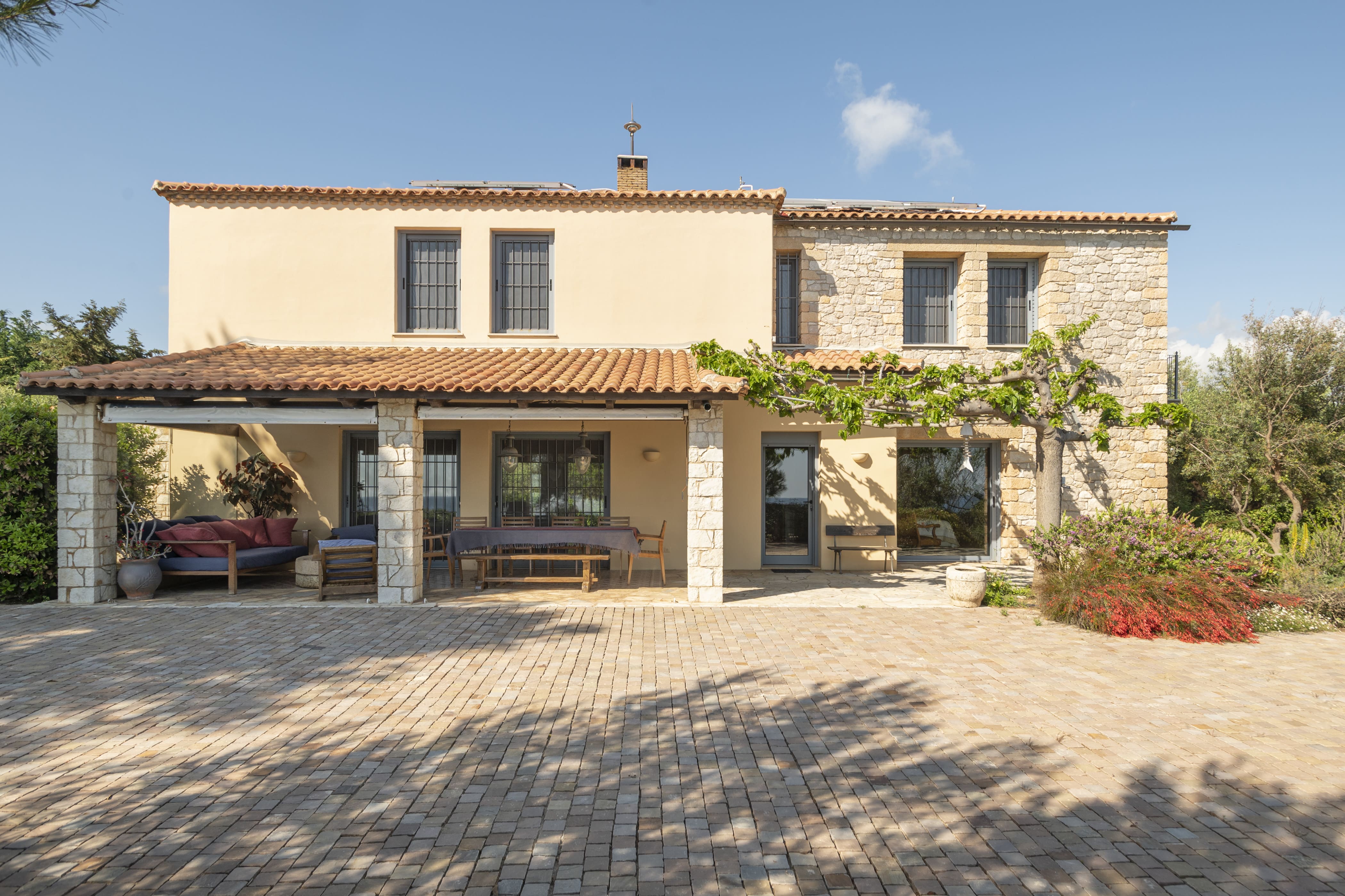 The villa comfortably accommodates up to 8 guests with its 4 bedrooms and 5 bathrooms. Free parking is available on the premises, and we recommend renting a car to explore the surrounding villages. Pets are welcome, making it an ideal choice for pet owners. For more properties, browse our luxury villa rentals in Greece.