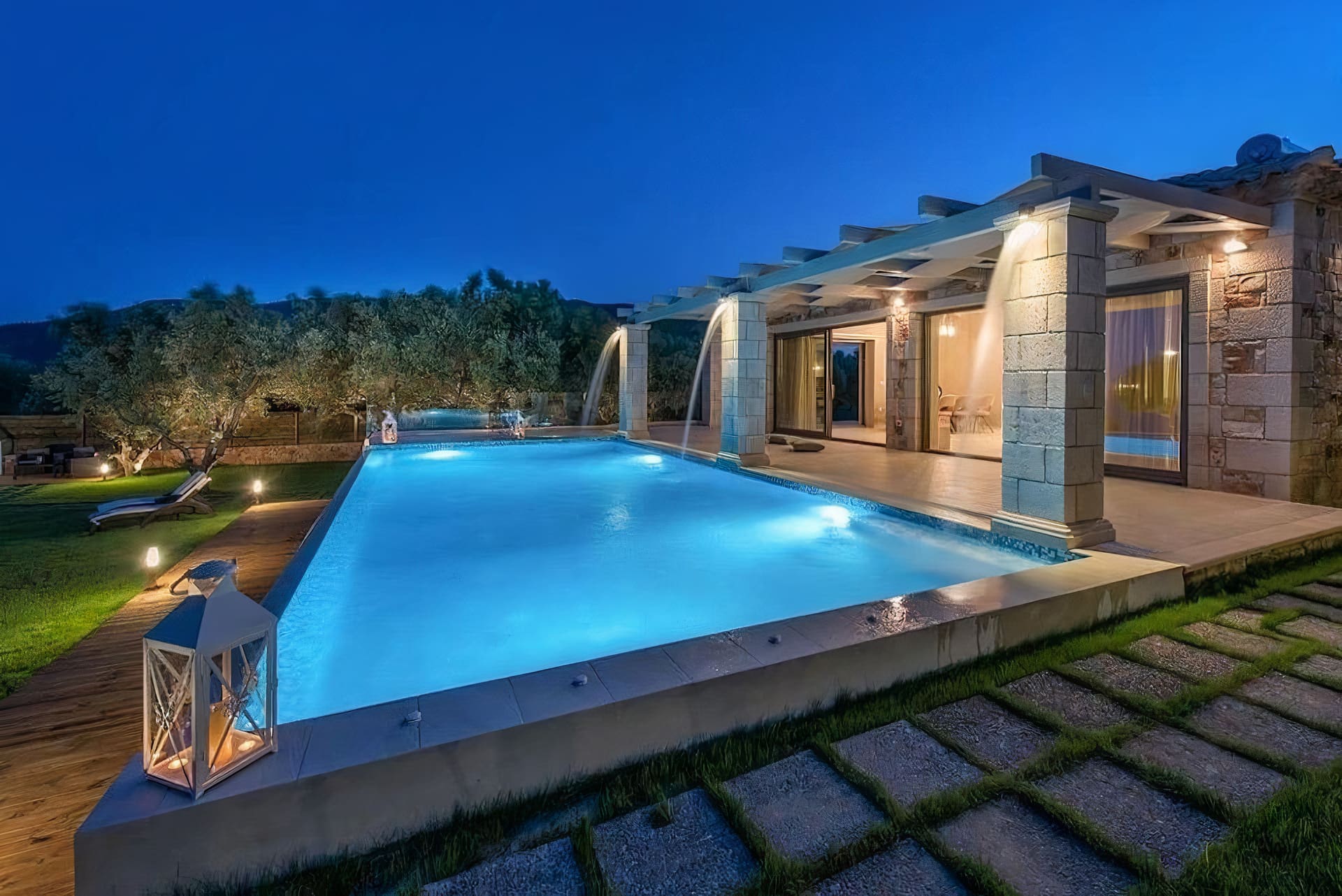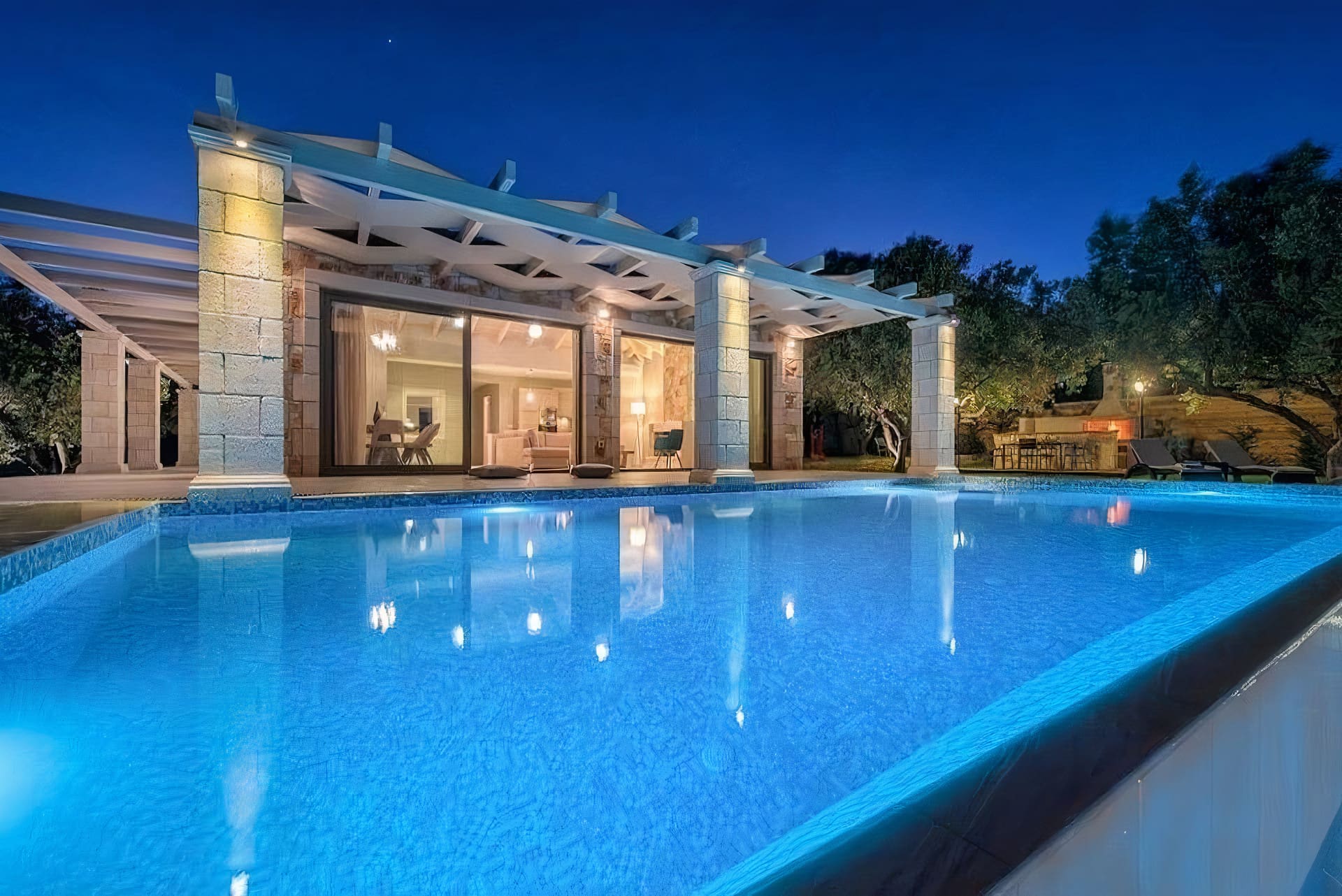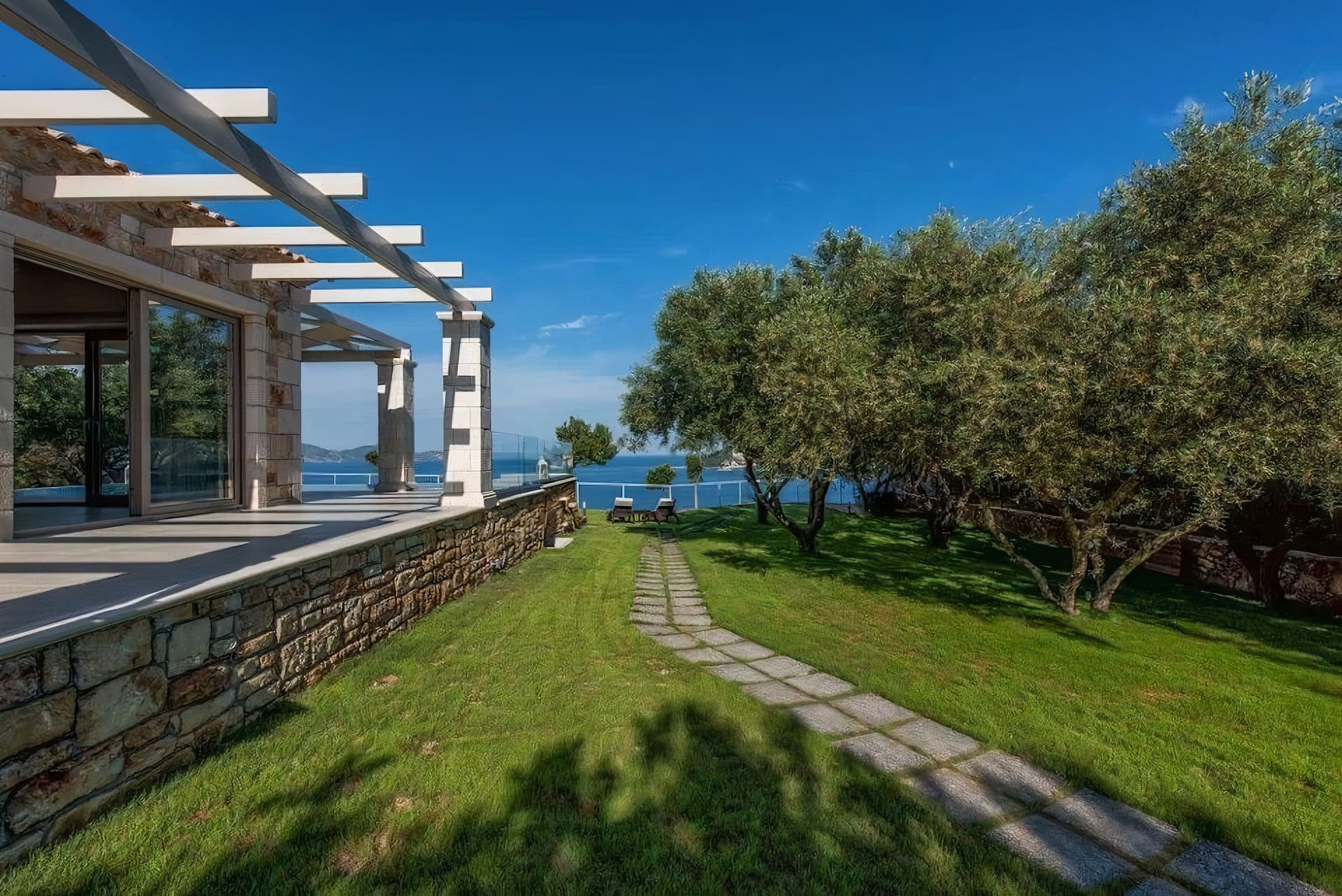 The outdoor spaces of the apartment are truly exceptional. The infinity pool appears to merge seamlessly with the horizon, offering a mesmerizing view of the sea. Spacious terraces and a hot tub provide ideal spots for unwinding, while the surrounding olive groves enhance the sense of tranquility. Whether you’re dining al fresco or simply soaking up the sun, the magnificent landscape creates an unforgettable backdrop.
