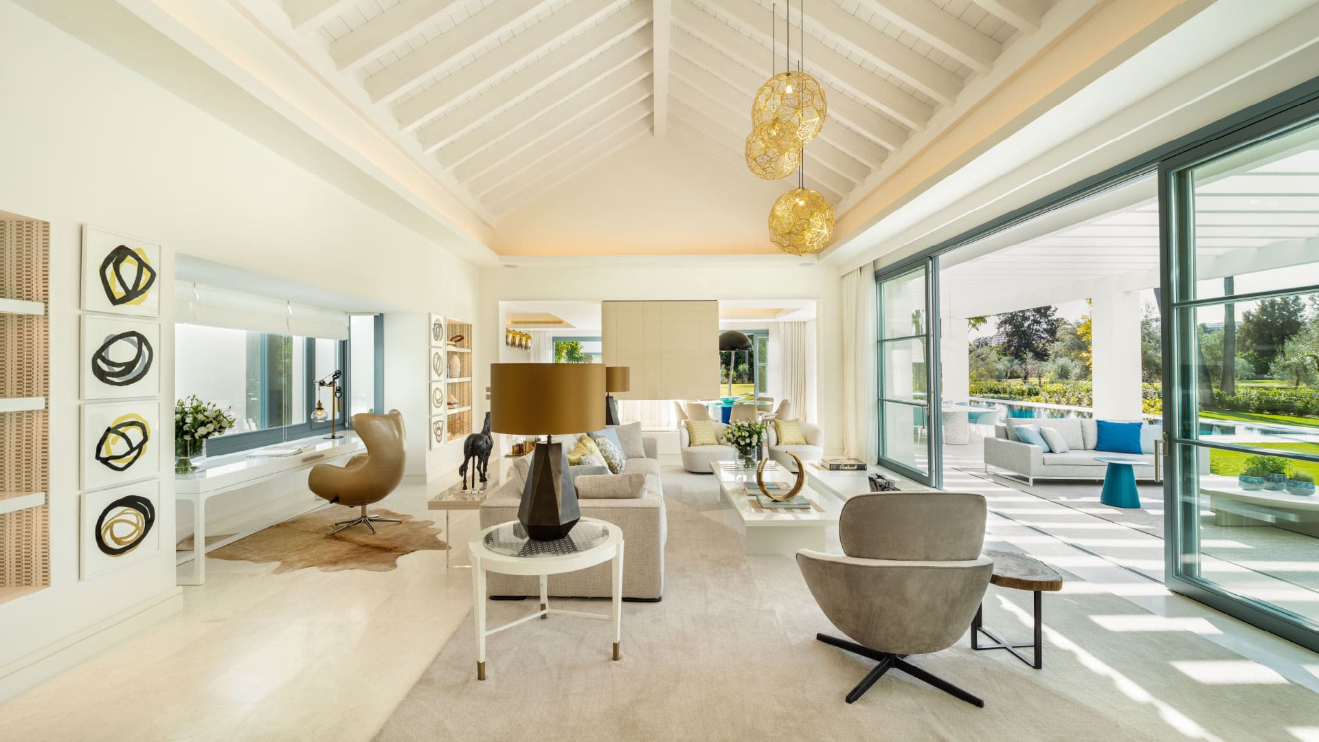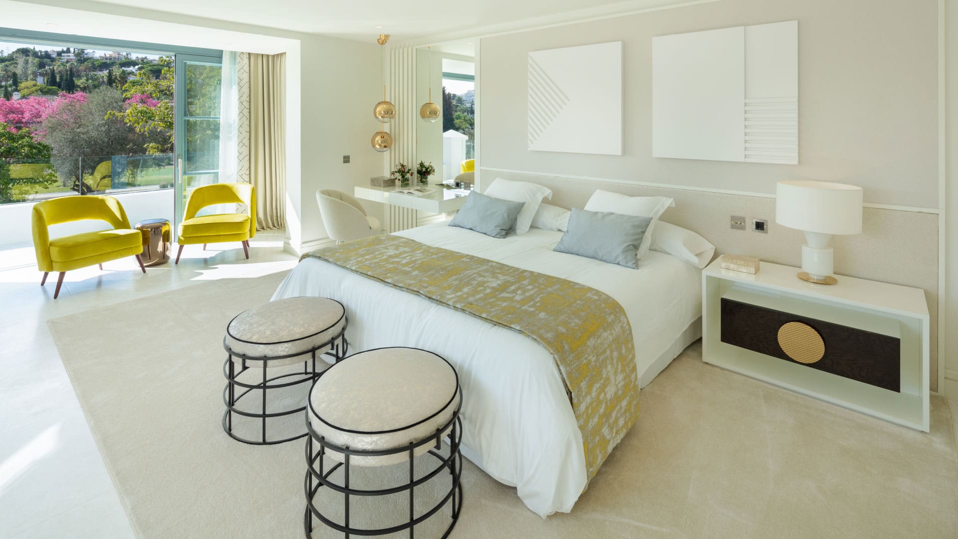 This luxurious villa accommodates up to 12 guests with its five bedrooms and five bathrooms. The property includes a two-car indoor garage for your convenience. As the villa is located within a gated community, we recommend hiring a car to explore the local area fully. For more options, browse our luxury villa rentals in Spain.