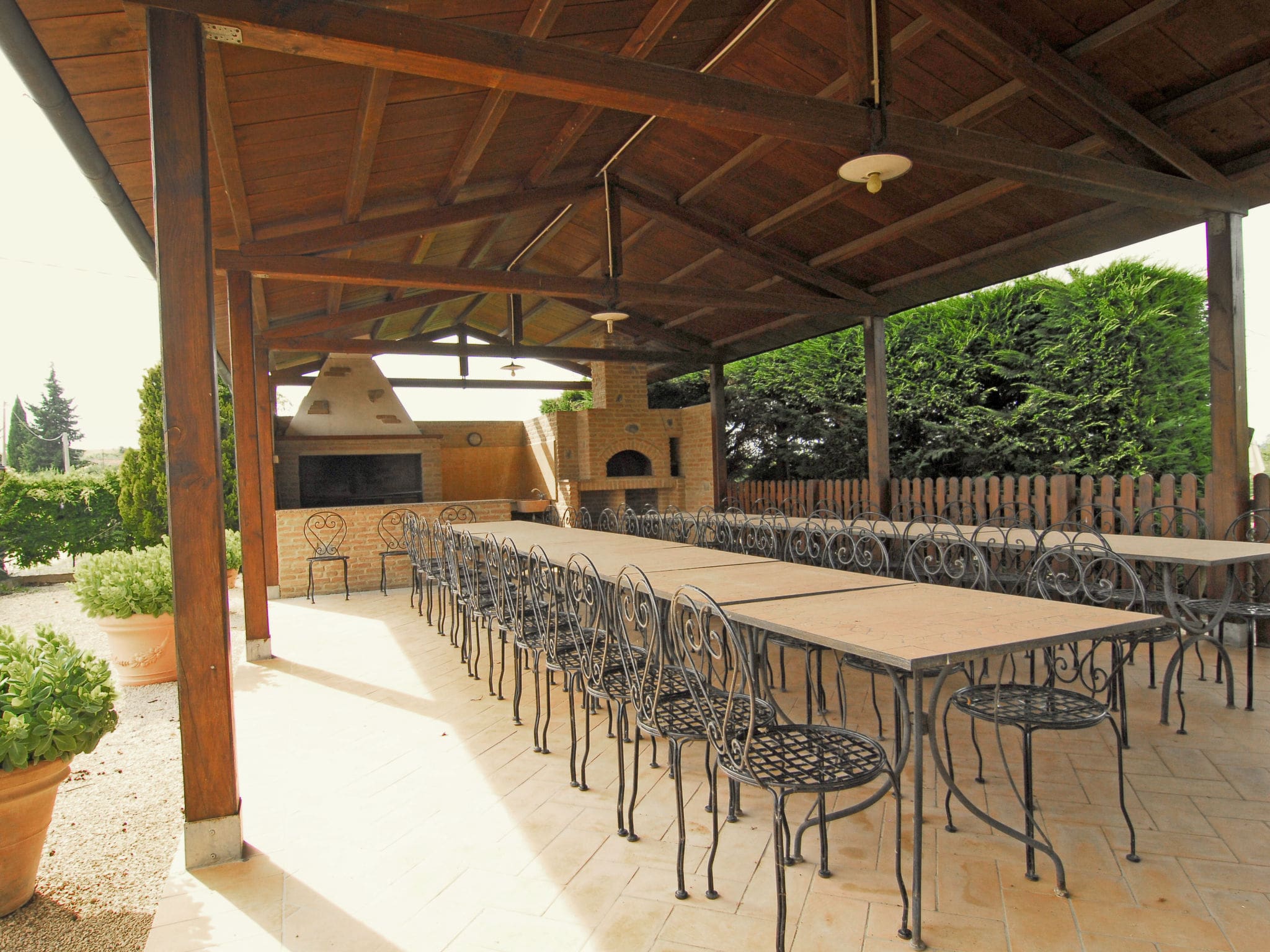 Multiple terraces and loggias offer various settings for outdoor dining and relaxation, while the pergola provides shaded comfort during the warmest parts of the day. The barbecue area invites memorable evening gatherings under the stars, and the children’s playground ensures younger guests have their own dedicated space for entertainment. The property’s elevated hilltop position delivers panoramic views across the surrounding countryside to Lake Trasimeno in the distance.