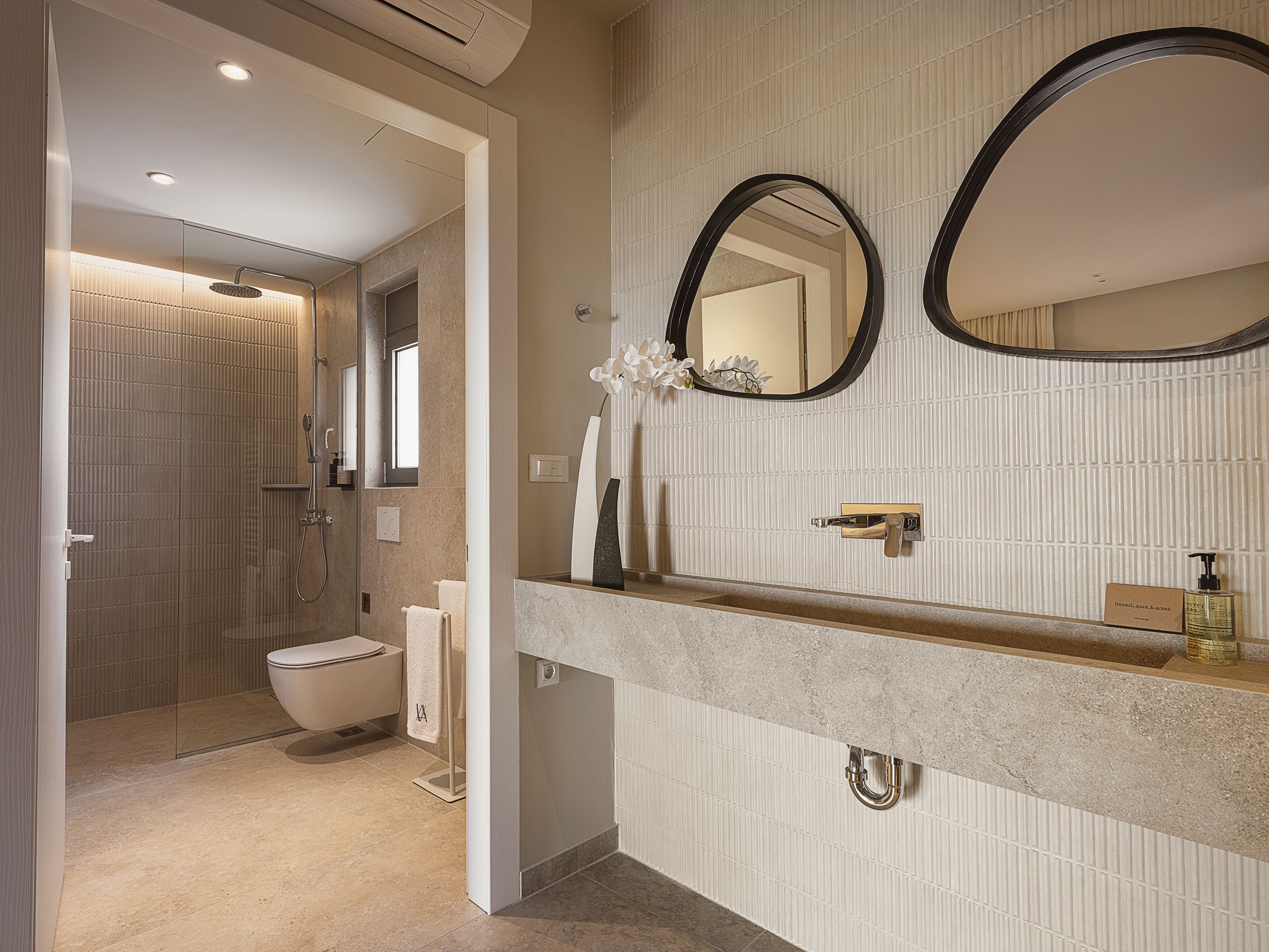 Step inside this spacious six-bedroom apartment, where modern design meets classic Grecian elegance. The open-flow living space is perfect for entertaining, featuring a state-of-the-art kitchen, expansive dining area, and comfortable lounge. Each bedroom offers a private retreat with en-suite bathrooms, ensuring privacy and relaxation for all guests. One of the ground-floor bedrooms can be conveniently converted into twin beds upon request, adding flexibility to your stay.