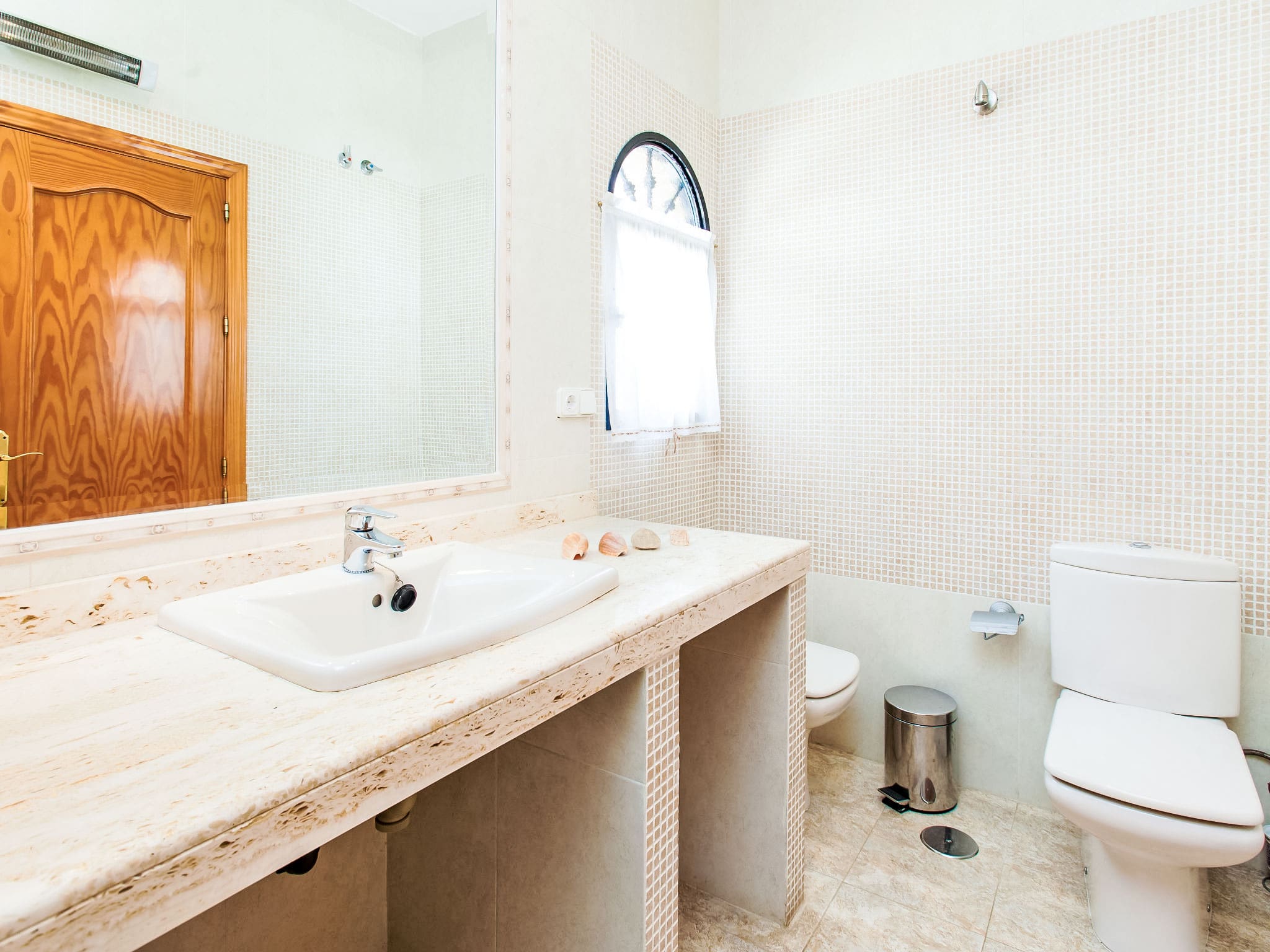 This exceptional property exemplifies the quality accommodation available throughout Spain, featuring modern conveniences within a traditional Mediterranean setting. The villa includes comprehensive amenities such as air conditioning in key areas, heating systems for cooler months, and a 100-litre boiler ensuring consistent hot water supply. Five bathrooms feature various configurations including shower/WC, bath/shower combinations, and bidet facilities. The property maintains high environmental standards with water-efficient fixtures and recycling facilities, while the garden space supports local biodiversity.