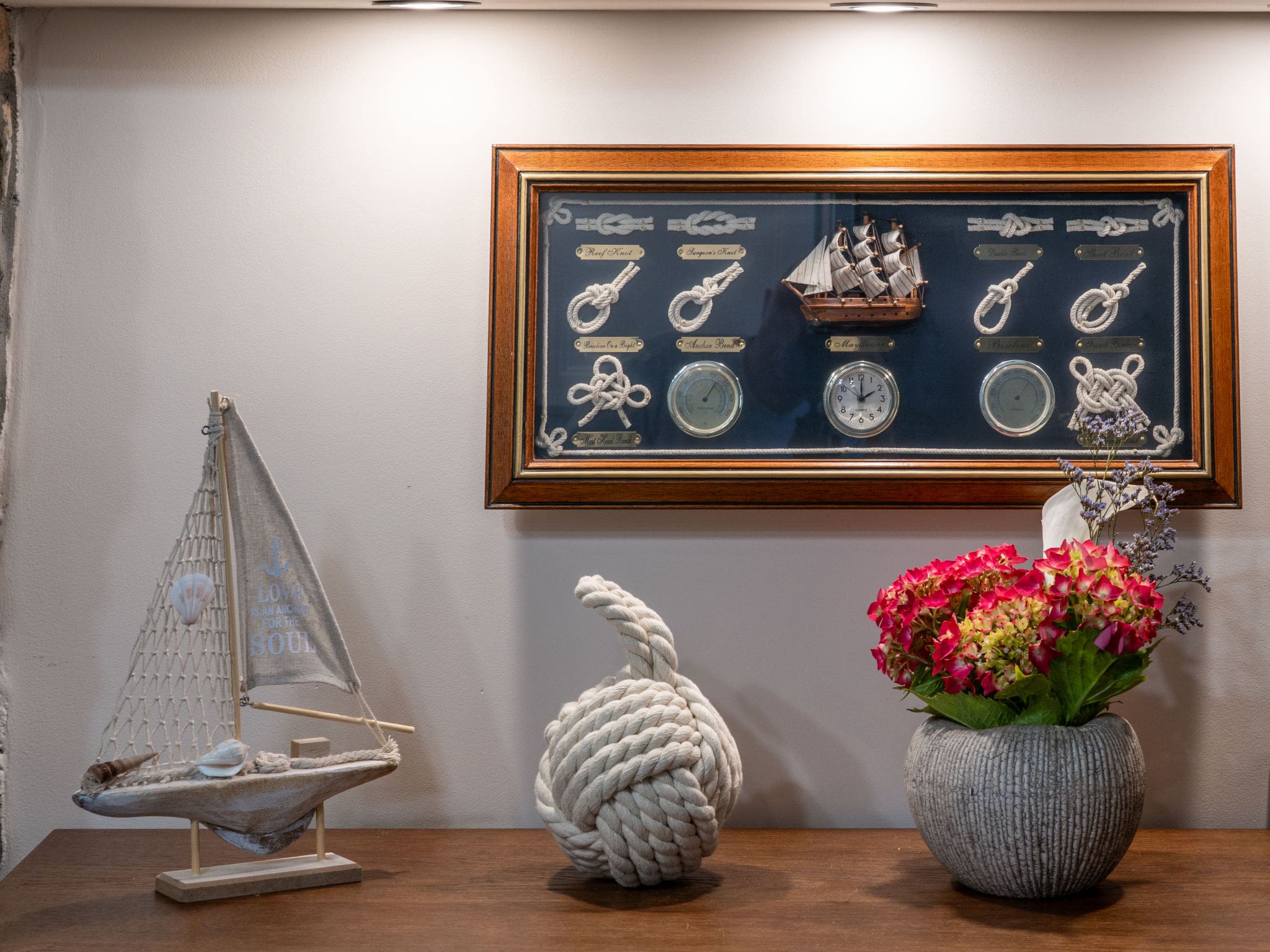 Spanning 150 square meters across three thoughtfully designed levels, this exceptional property features four beautifully appointed bedrooms, each with its own private en-suite bathroom. The master bedrooms on the upper floor showcase elegant French beds and stunning sea views, while the top-floor rooms feature charming sloped ceilings and intimate skylights. Two fully equipped kitchens provide ultimate convenience for larger groups, featuring modern appliances including ovens, dishwashers, ceramic hobs, and coffee machines. The dual living areas, each with satellite television, offer flexible spaces for relaxation and entertainment. Air conditioning throughout ensures year-round comfort, while complimentary Wi-Fi keeps you connected to the world beyond.