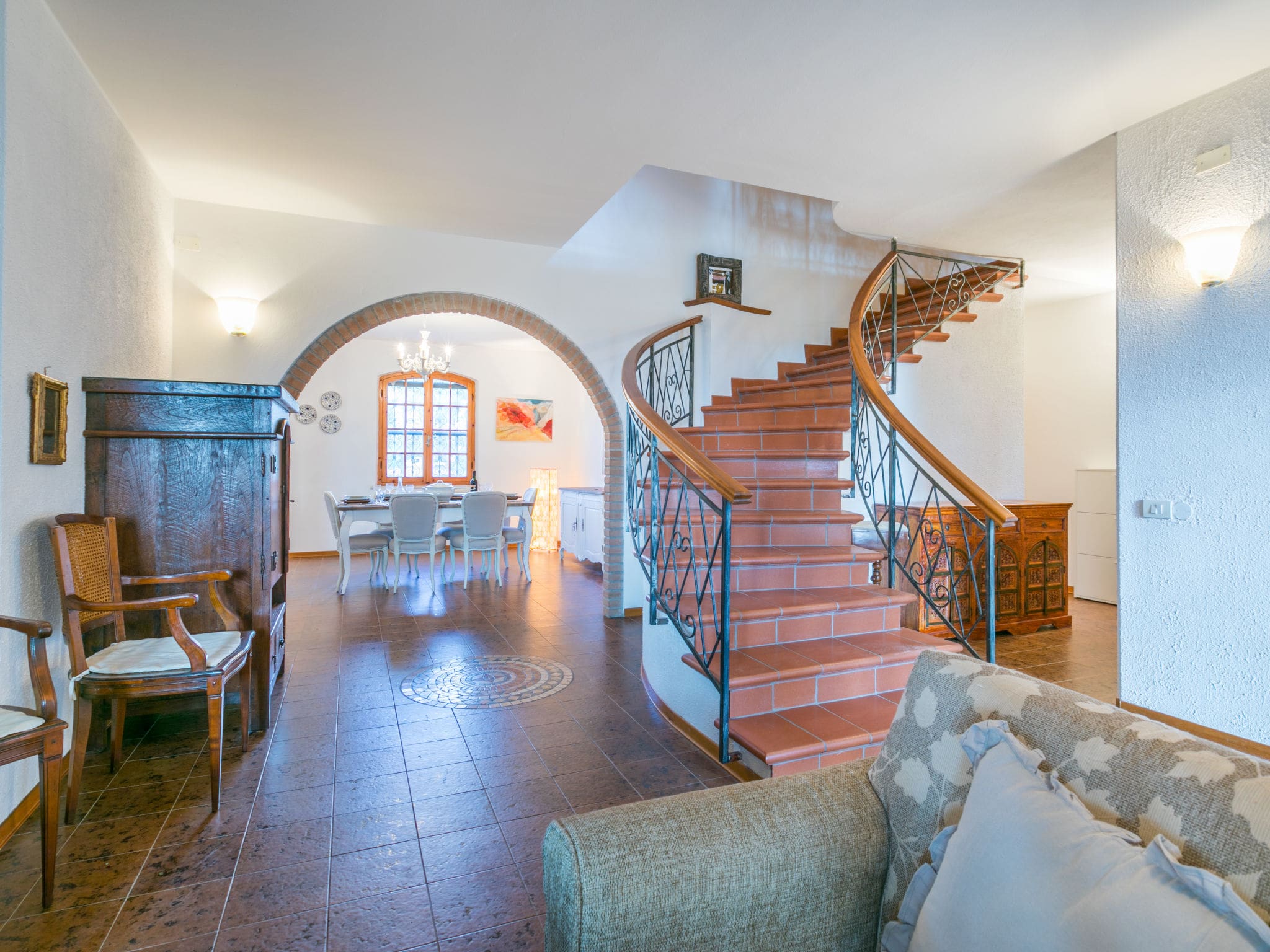 The villa offers flexible sleeping arrangements across its well-appointed bedrooms, including double bedrooms and additional sleeping spaces with sofa beds. Three modern bathrooms with showers, bidets, and WCs serve the property. Air conditioning throughout ensures comfort during warm Tuscan summers, while heating provides year-round comfort. The upper level features additional living space with a double sofa bed and private balcony access.
