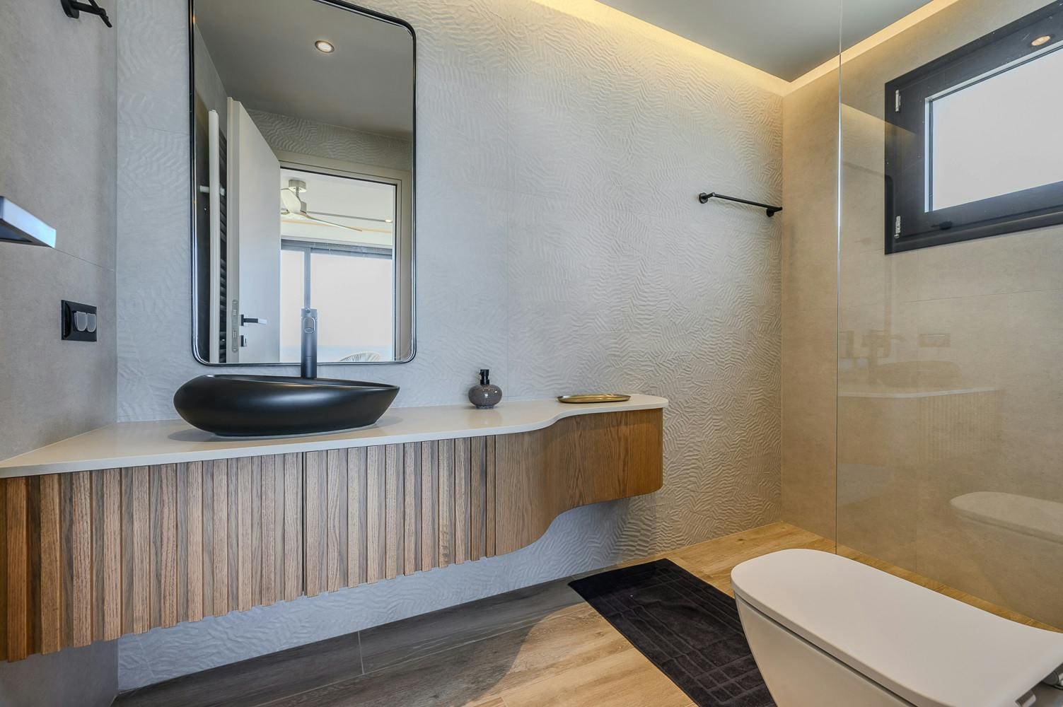 Step inside to discover a seamless blend of modern elegance and comfort. The villa features five spacious bedrooms, each designed with relaxation in mind. The main bedroom boasts a private balcony, perfect for enjoying the breathtaking seascape. The open-plan living area is flooded with natural light, thanks to floor-to-ceiling windows that invite the outdoors in. A fully equipped kitchen awaits those who love to cook, while the stylish dining area is ideal for gatherings with family and friends.