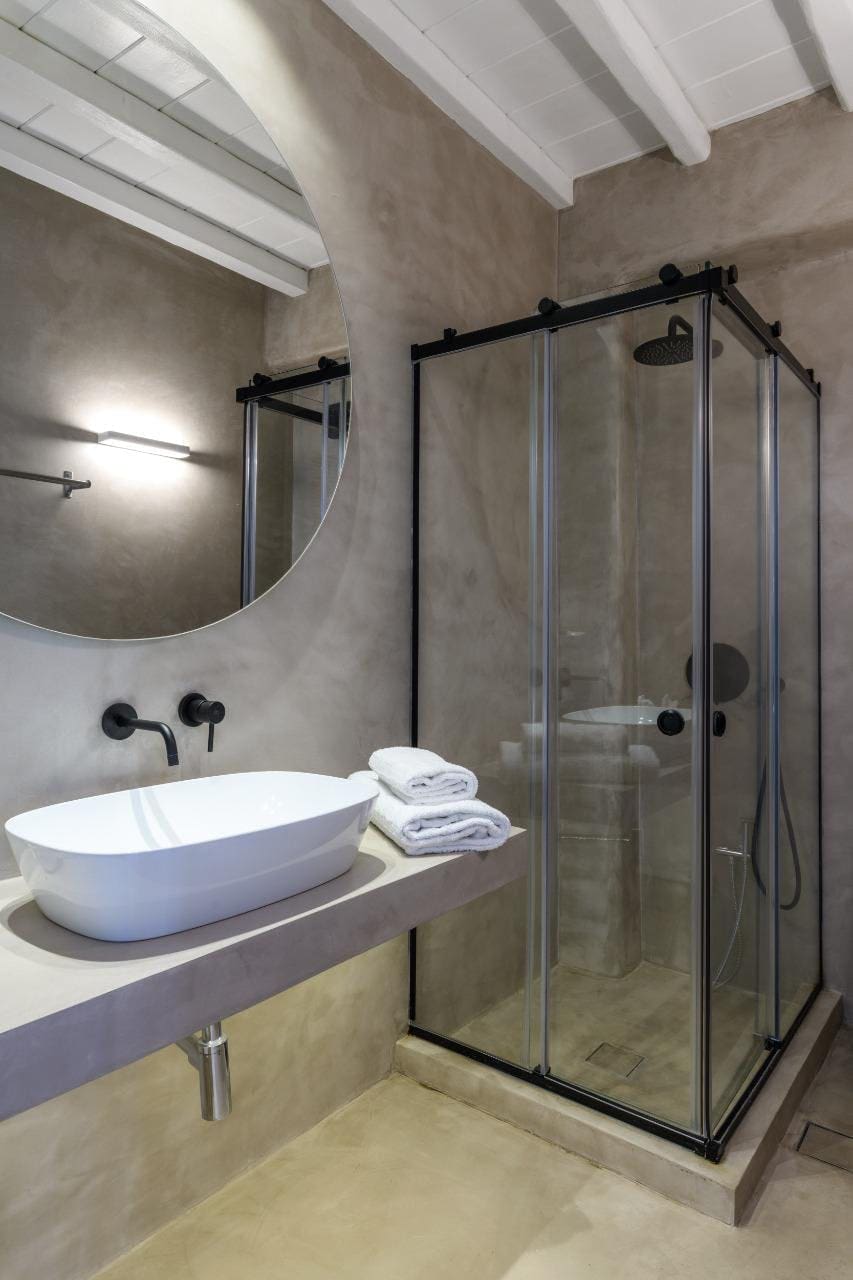 Step inside this exquisite Mykonos villa, where elegance and comfort meet. The villa features eight spacious bedrooms, each with an en-suite bathroom, offering privacy and luxury for up to 16 guests. The open-plan living area on the ground floor is designed for social gatherings, while boho-chic décor elements like cacti and raw wood accents create a laid-back yet sophisticated atmosphere. The fully equipped kitchen makes it easy to prepare meals, whether you’re dining indoors or al fresco.